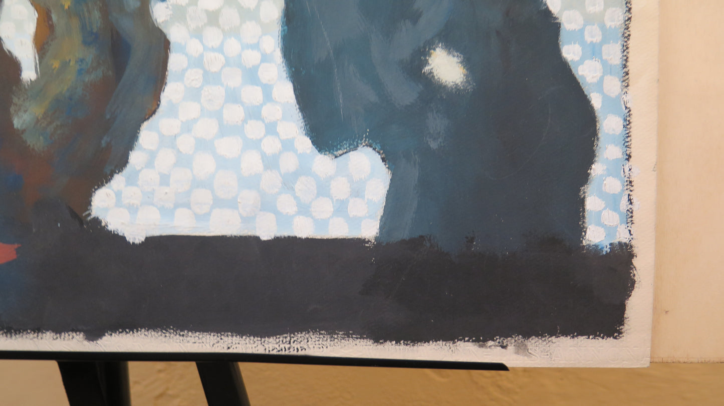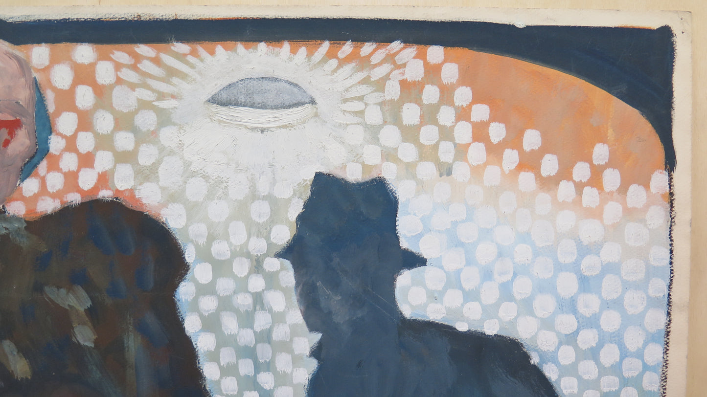 QUADRO MODERNO ANNI '60 VINTAGE MISTERIOSE FIGURE DIPINTO ACQUERELLO SU CARTA BM53.4