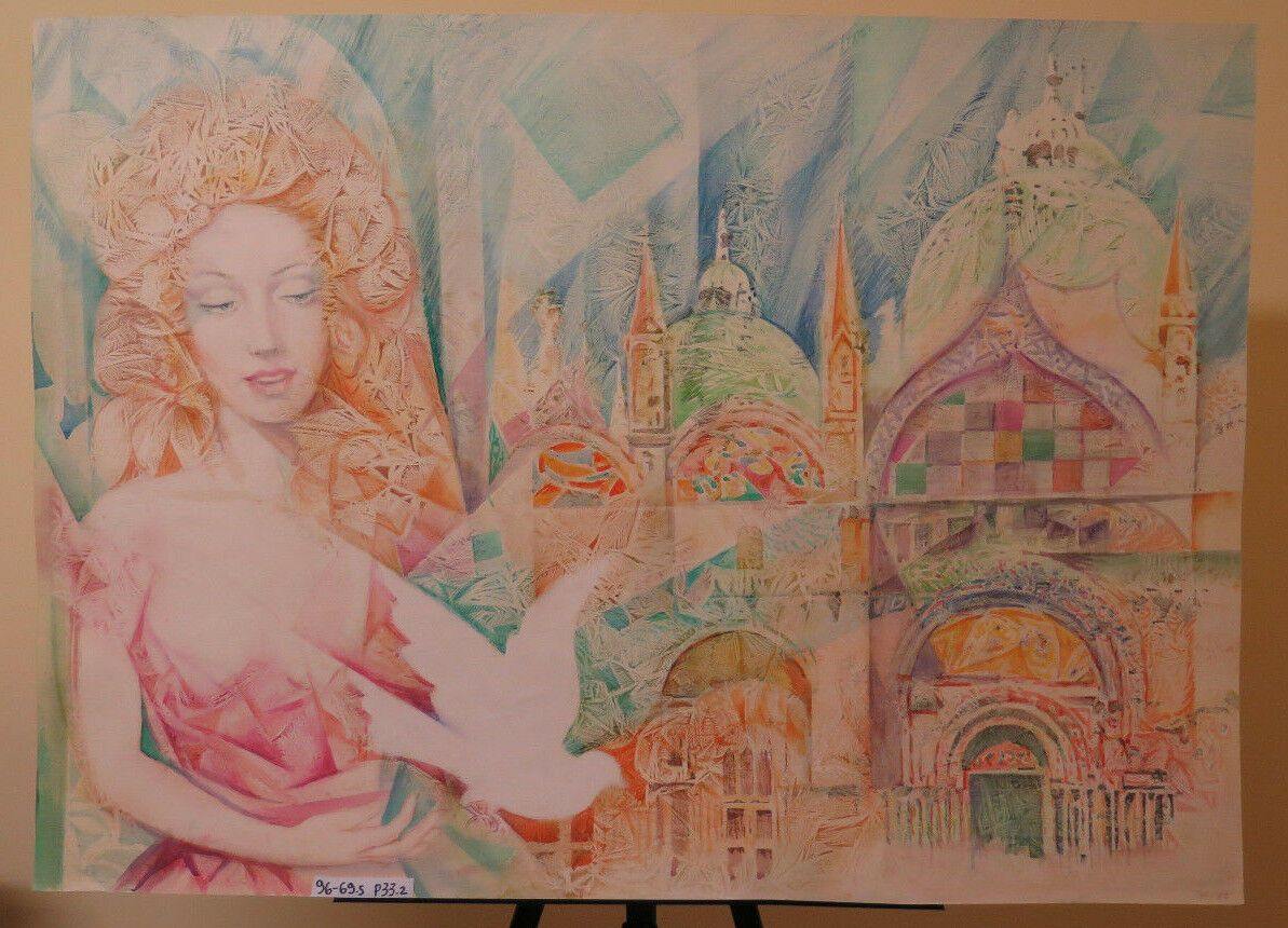 Soggetto: ritratto femminile pop con la Basilica di San Marco di Venezia come sfondo, luogo molto amato e ricorrente nei dipinti dell'autore.
