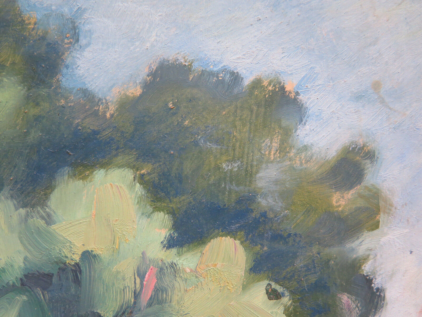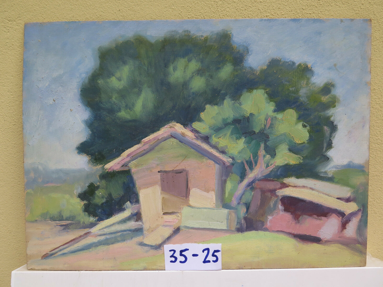 QUADRO MODERNO OLIO SU TAVOLA PAESAGGIO CAMPAGNA CAMPESTRE DIPINTO ANTICO BORGO