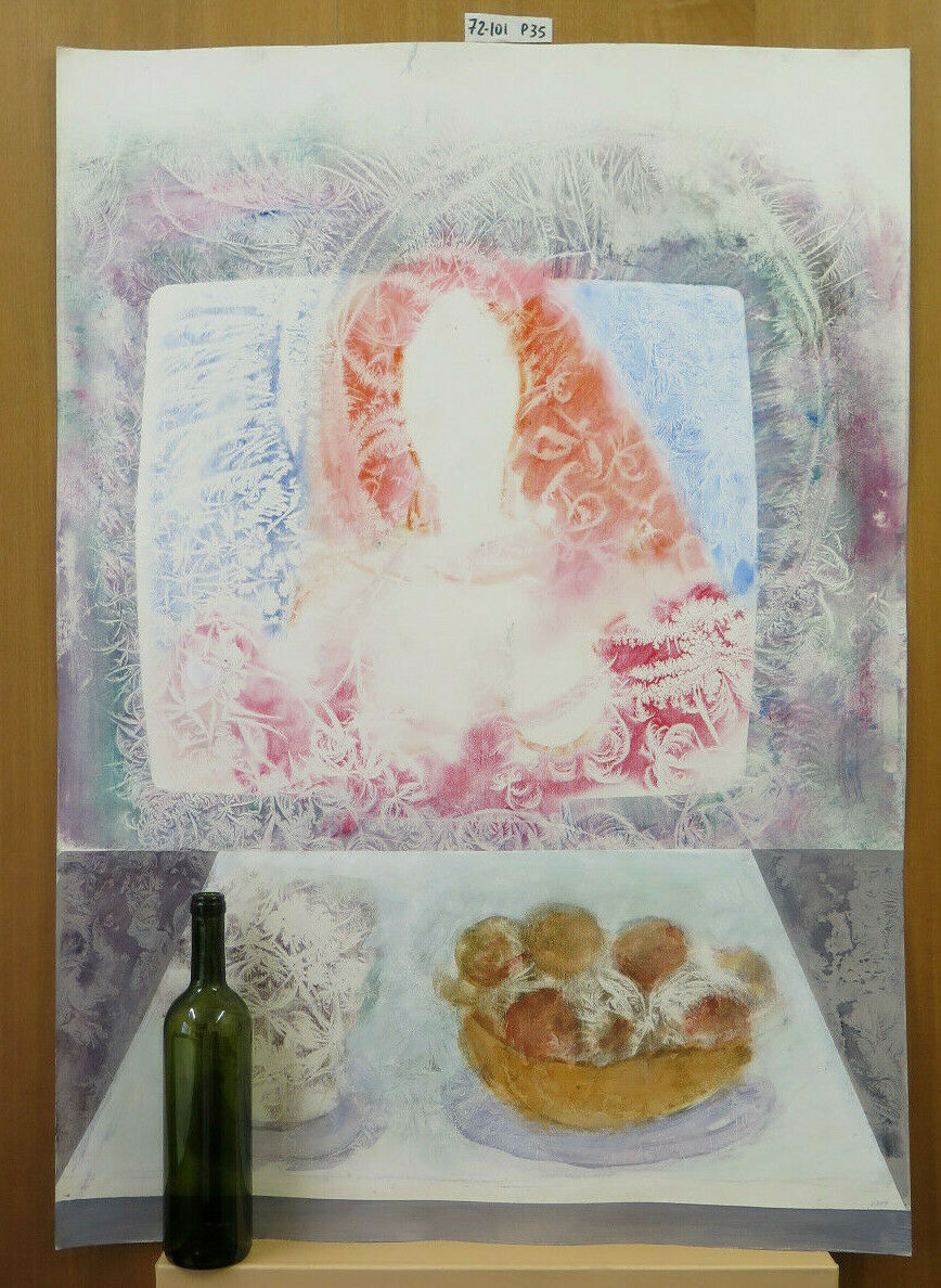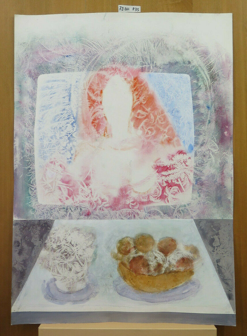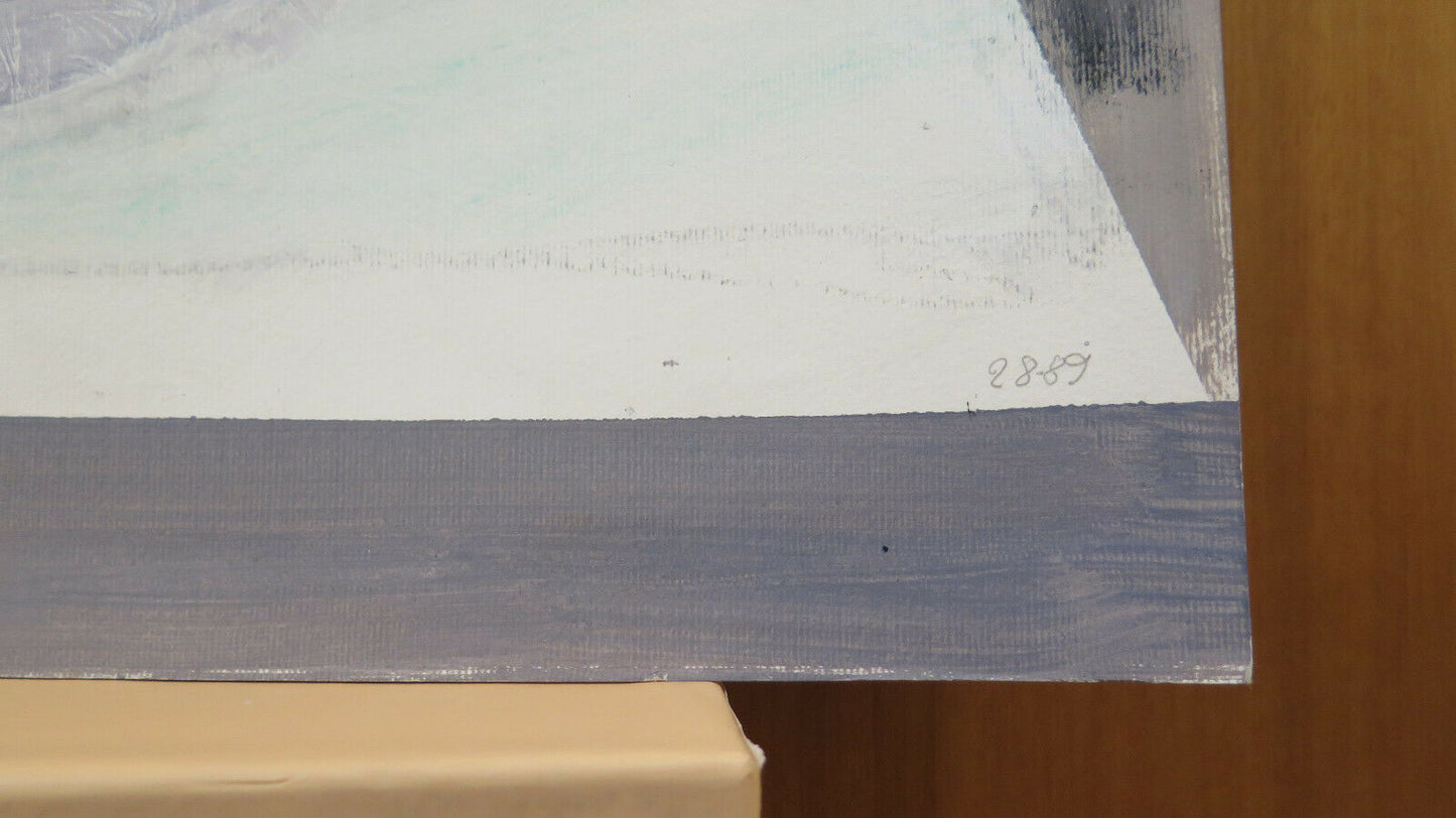 Medium and painting surface: watercolor on paper painted with "Ice technique" that was invented by Pancaldi to obtain the ice effect in some part of the painting surface, this technique consist to literally freeze the fresh wet painting and subsequently work on it again. He used this tecnique starting from the early '60's and kept working on it for all his life until the extraordinary results of the 80's and 90's ice paintings.