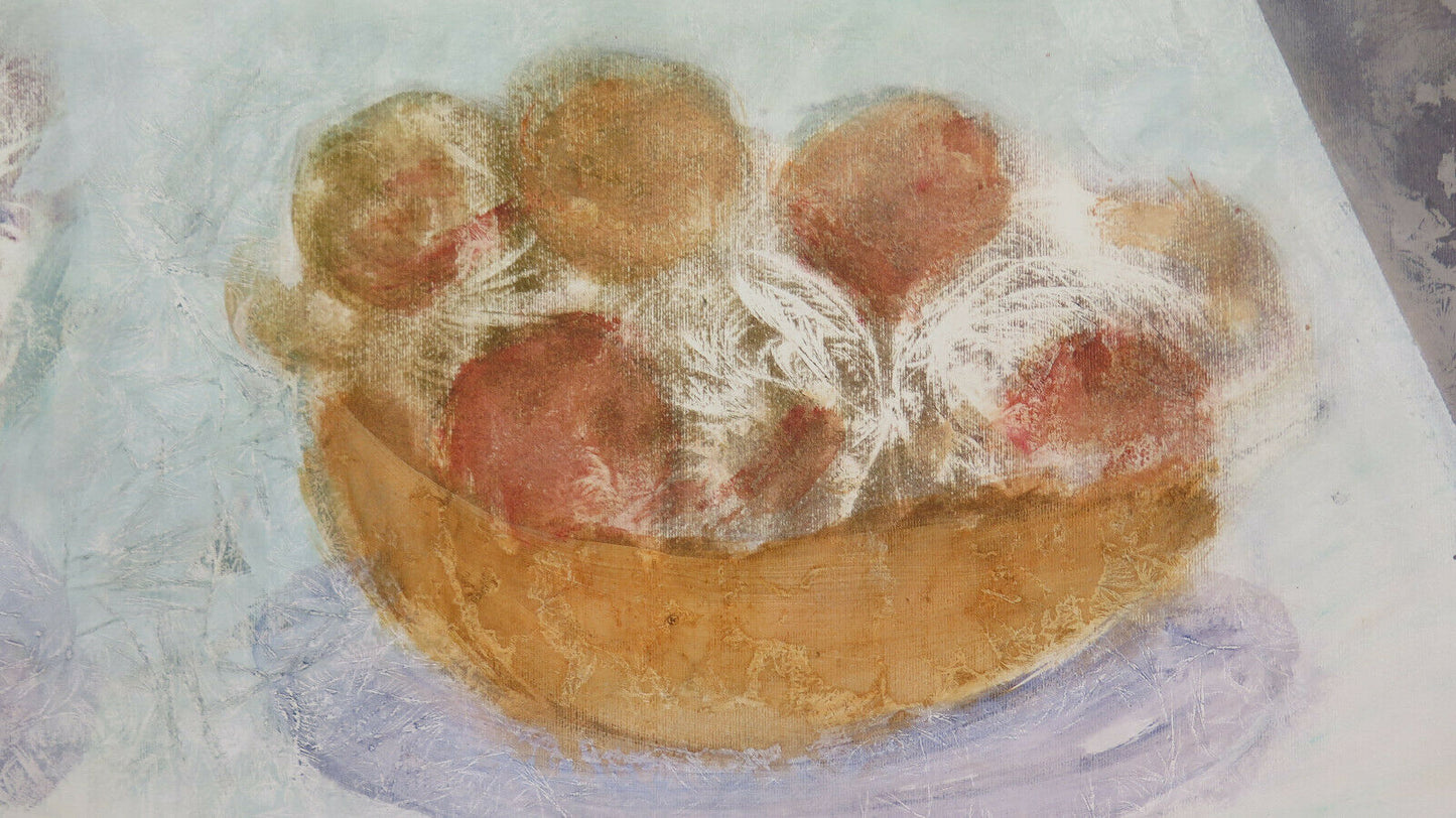 Supporto e tecnica: acquerello su cartoncino. Realizzato con la "tecnica del gelo" per ottenere l'effetto cristallizzato in alcuni aree della superficie pittorica, tale tecnica consisteva nel porre al freddo vero e proprio il dipinto ancora fresco per poi lavorarlo successivamente. Questa tecnica è stata creata dal pittore Pancaldi verso i primi anni Sessanta ed affinata per tutta la sua carriera fino a giungere ai risultati straordinari dei dipinti degli anni 80/90.