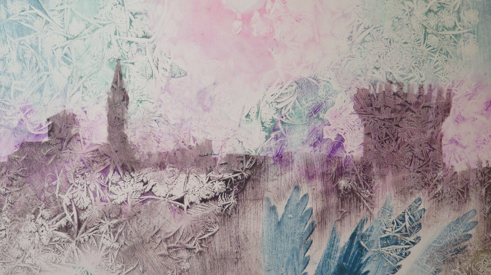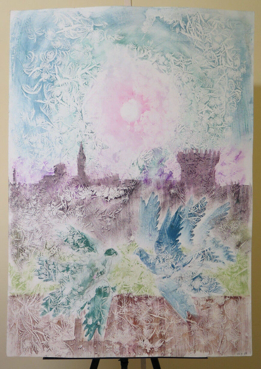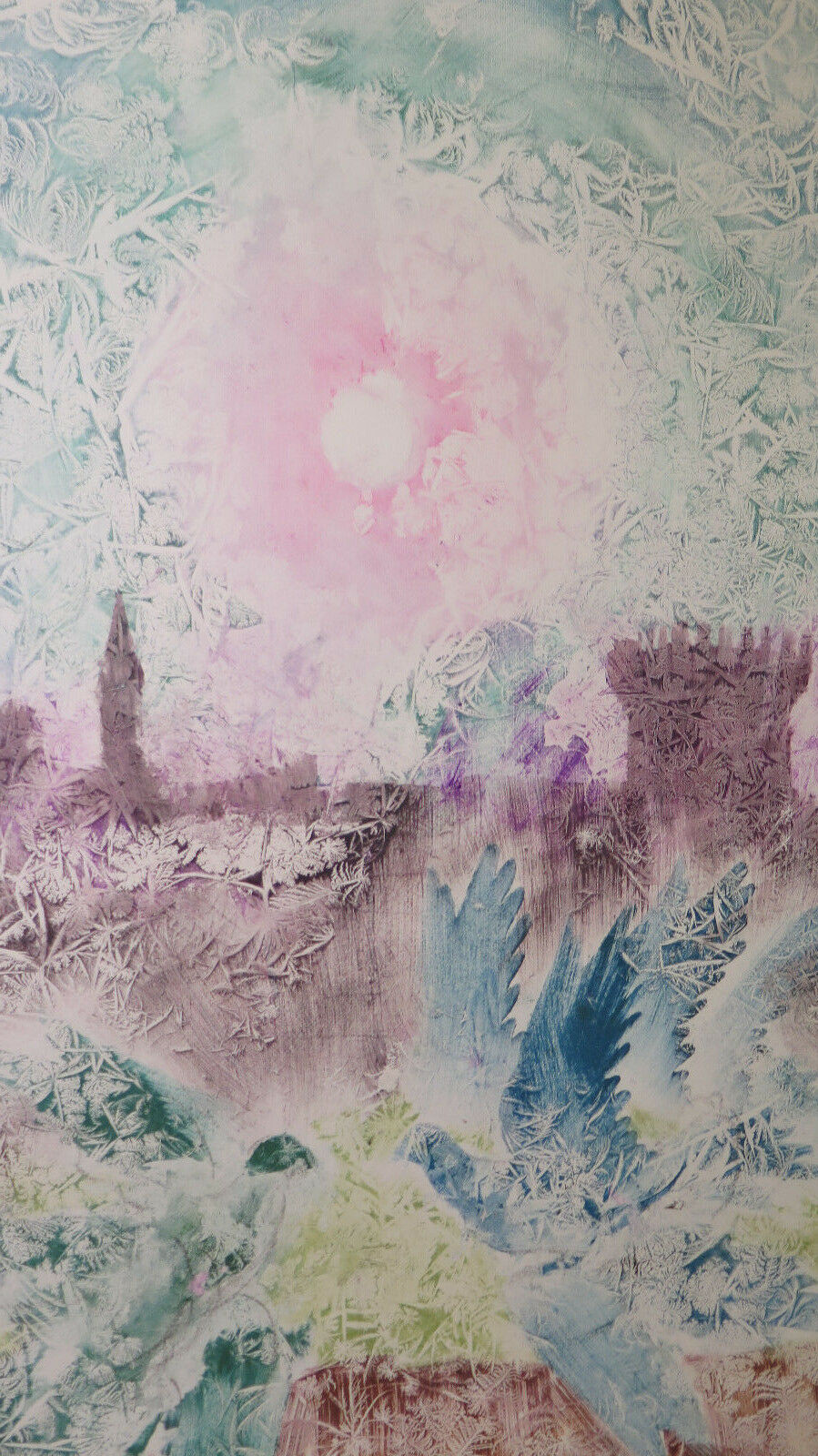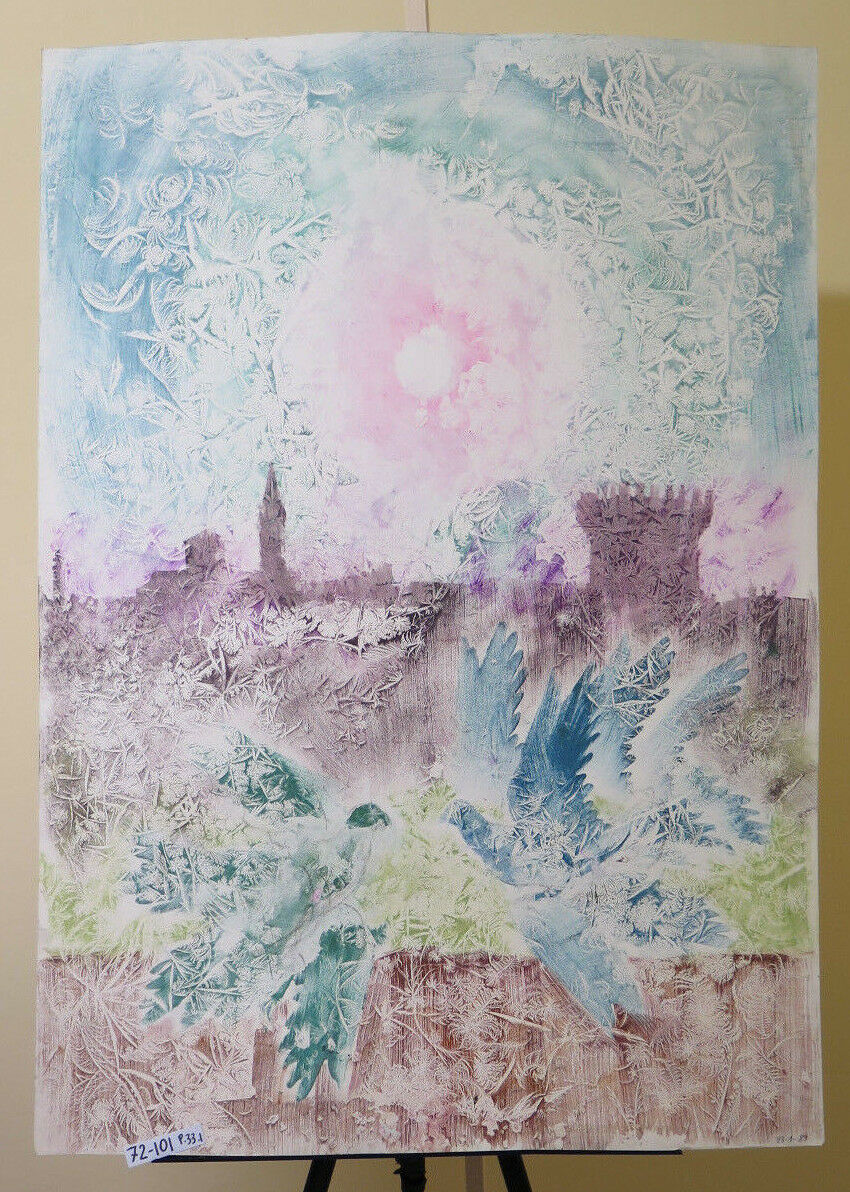 Supporto e tecnica: acquerello ed olio su carta. Realizzato con la "tecnica del gelo" per ottenere l'effetto ghiaccio in alcuni aree della superficie pittorica, tale tecnica consisteva nel porre al freddo vero e proprio il dipinto ancora fresco per poi lavorarlo successivamente. Questo effetto è stato inventato dal pittore Pancaldi e ricorre in molti suoi lavori soprattutto nella fase della maturità.