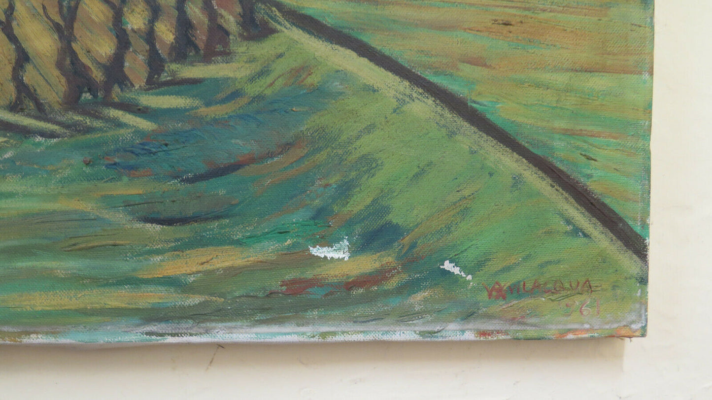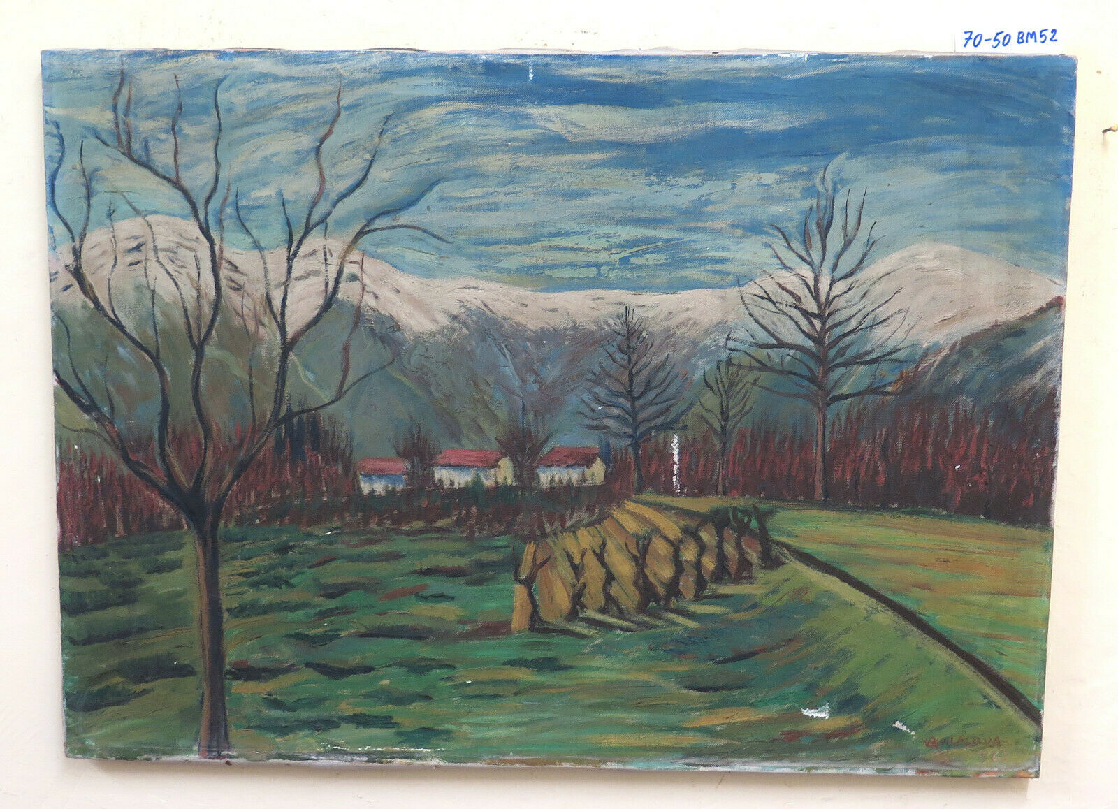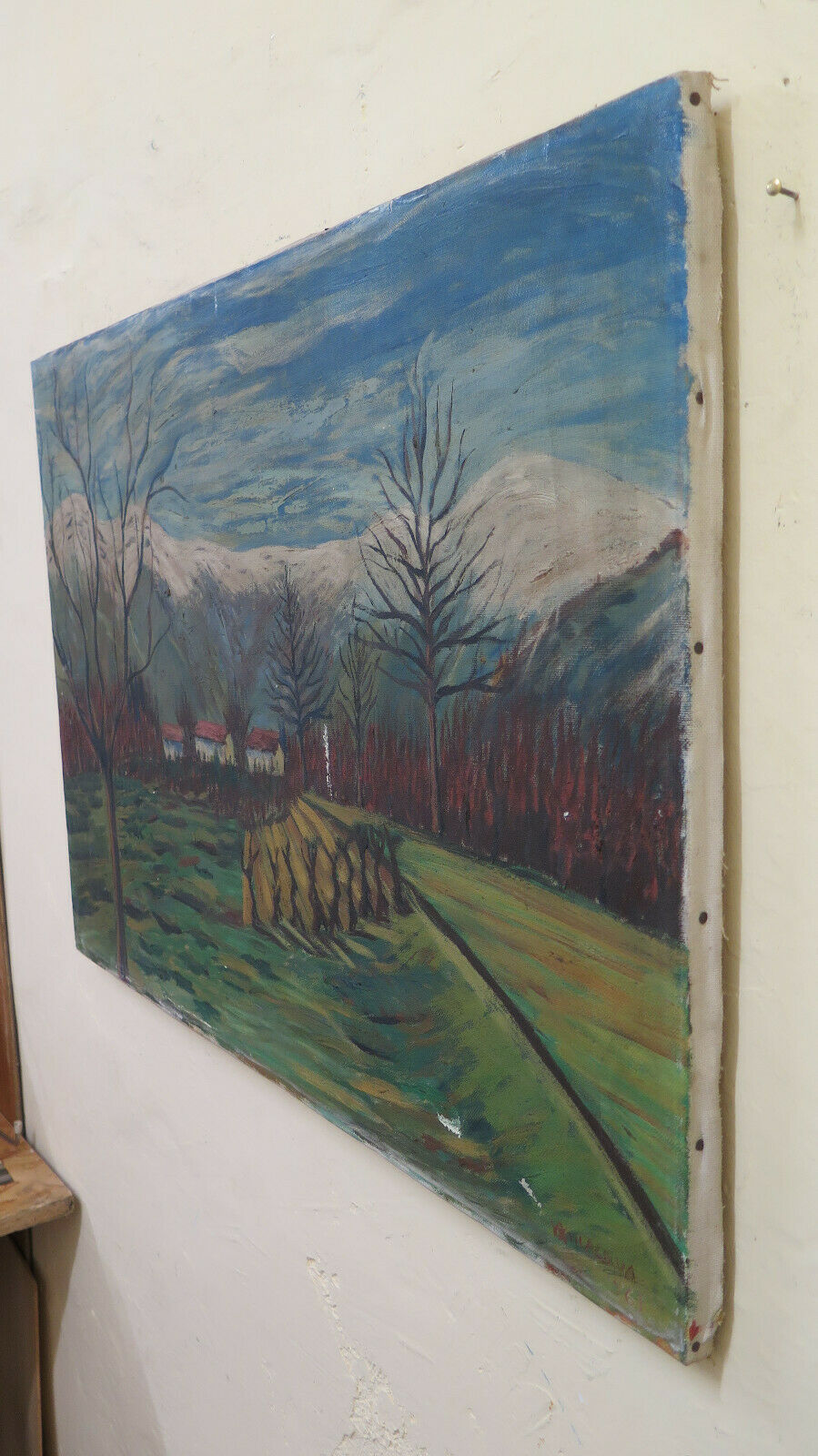 QUADRO OLIO SU TELA VECCHIO DIPINTO VINTAGE PAESAGGIO ALPI ALPINO FIRMATO BM52