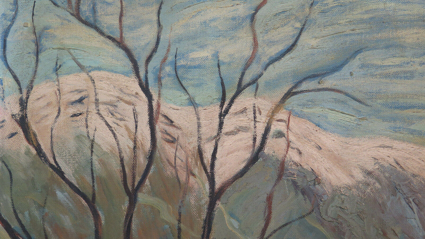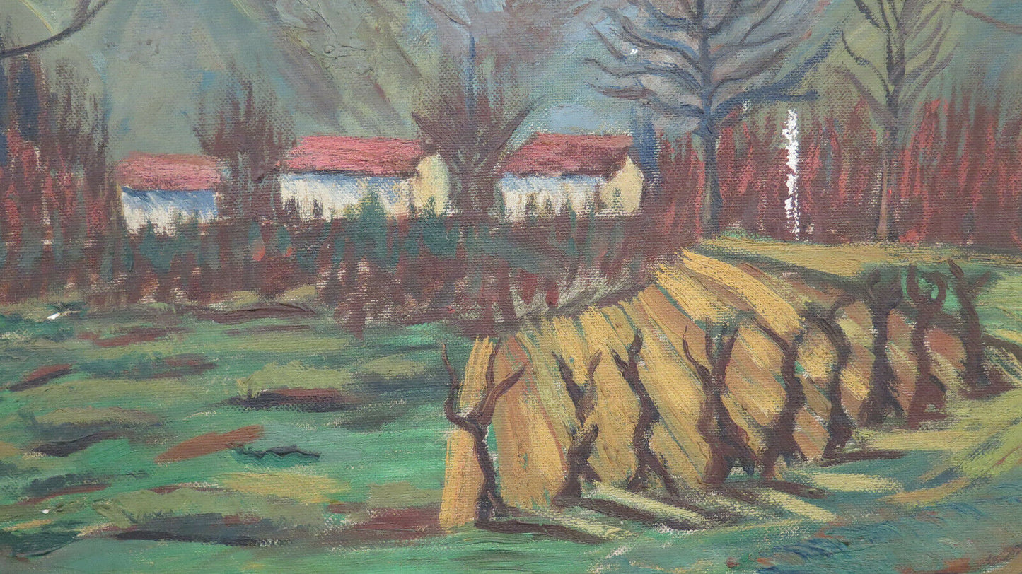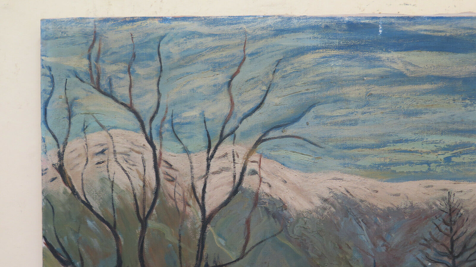 QUADRO OLIO SU TELA VECCHIO DIPINTO VINTAGE PAESAGGIO ALPI ALPINO FIRMATO BM52