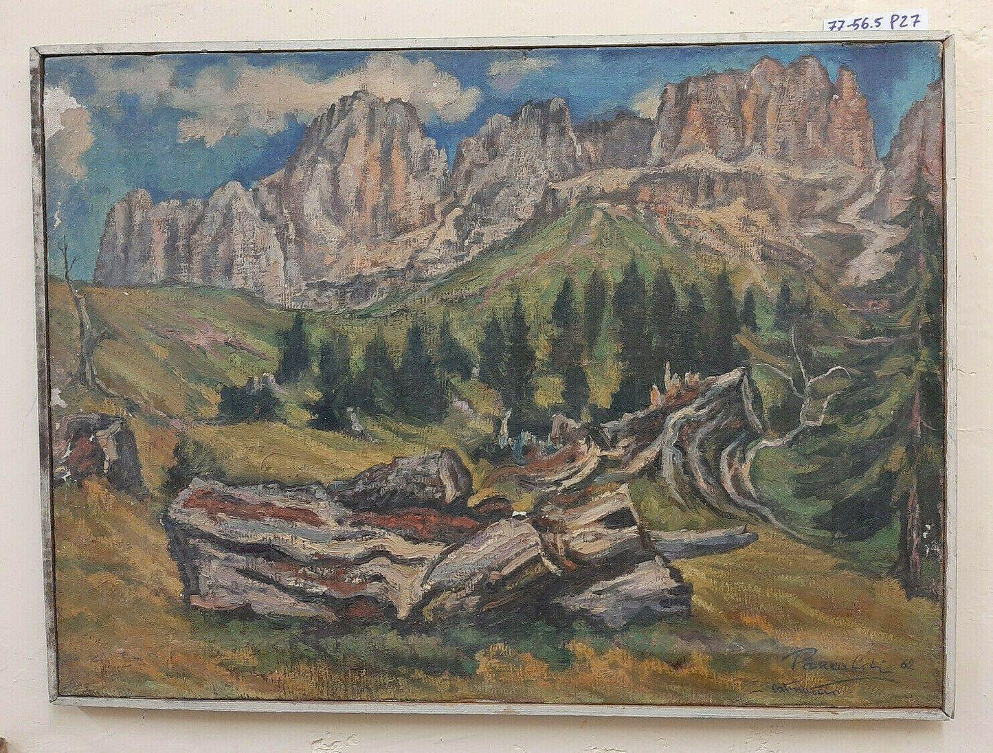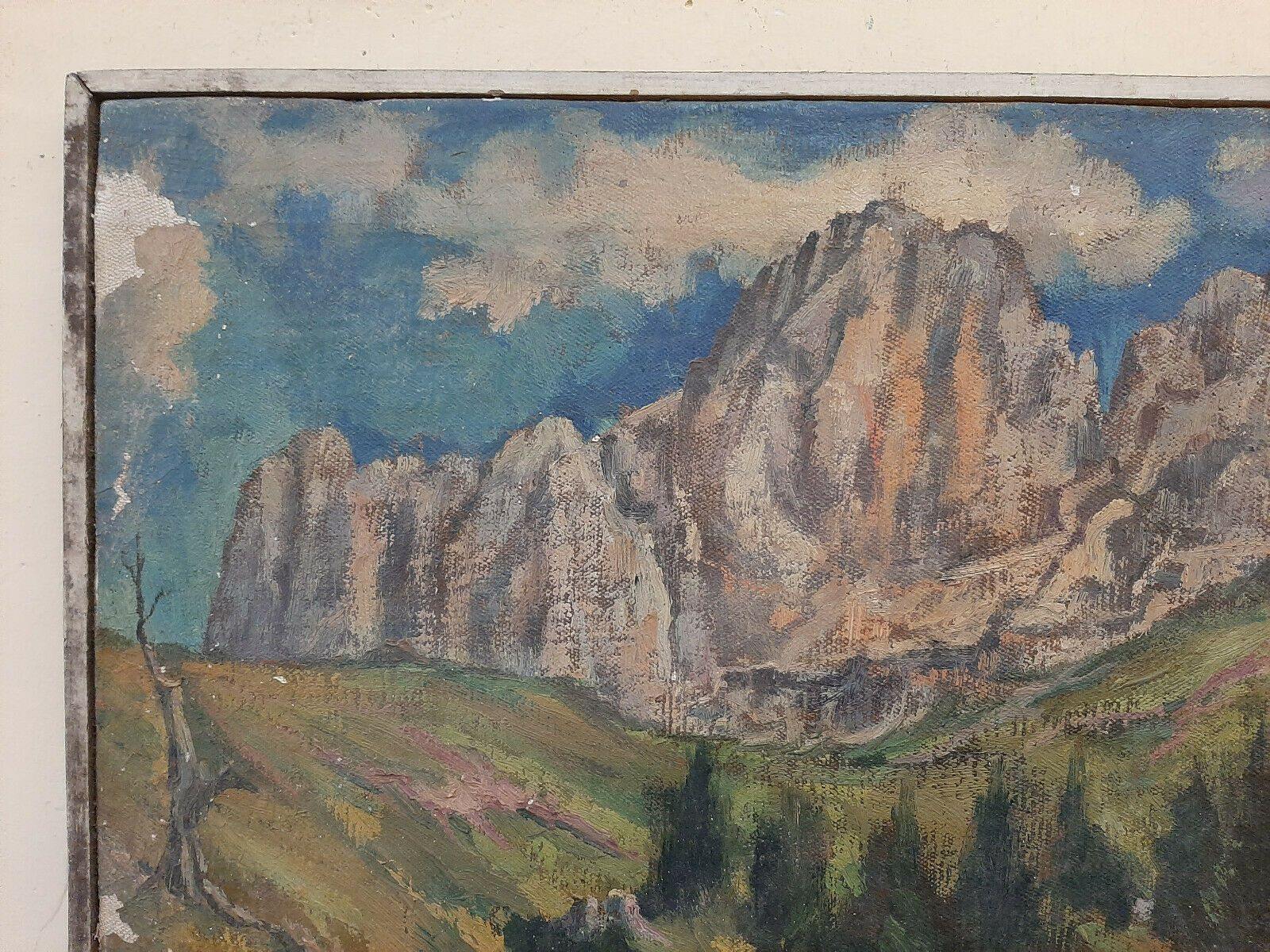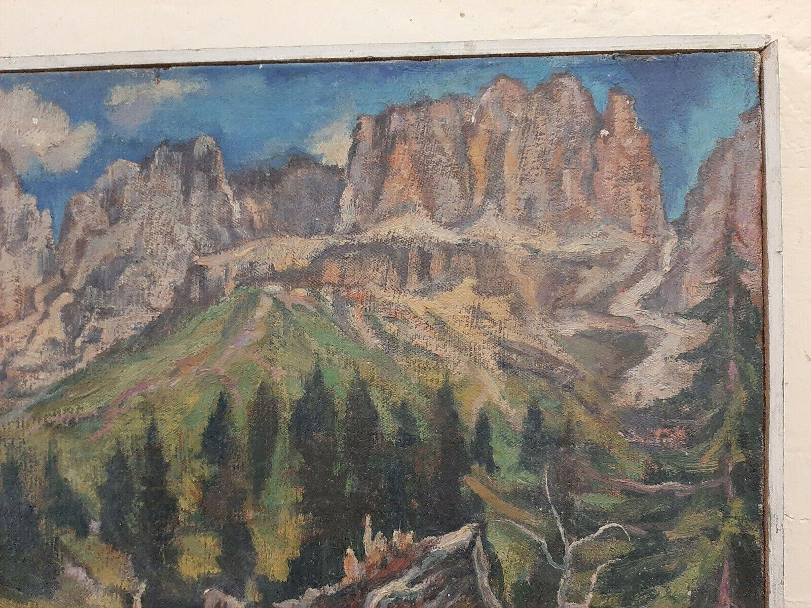 QUADRO OLIO TELA PAESAGGIO MONTAGNE DOLOMITI CATINACCIO Rosengarten DIPINTO P27