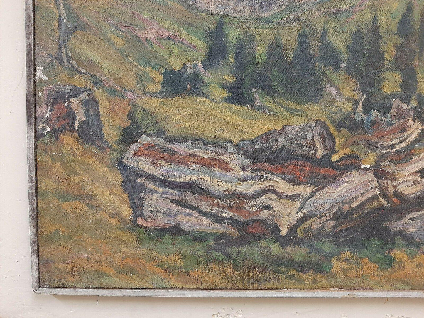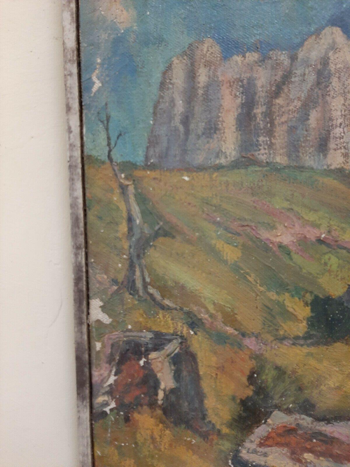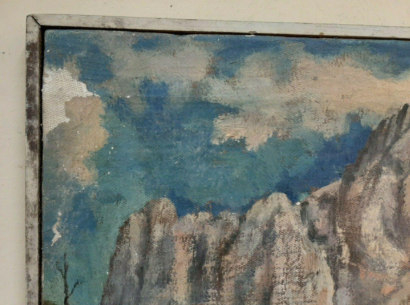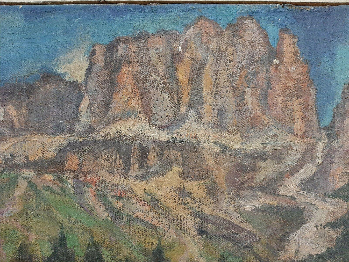 QUADRO OLIO TELA PAESAGGIO MONTAGNE DOLOMITI CATINACCIO Rosengarten DIPINTO P27