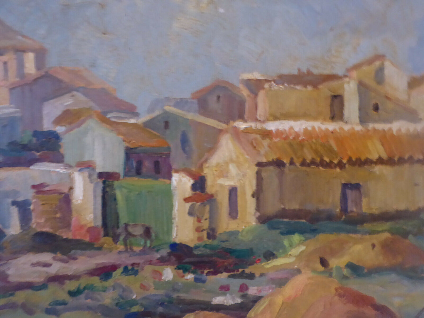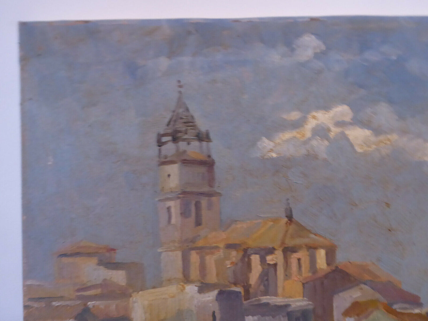 QUADRO STILE IMPRESSIONISTA FIRMATO SEGURA PAESAGGIO Cabañas de Yepes SPAGNA MD9