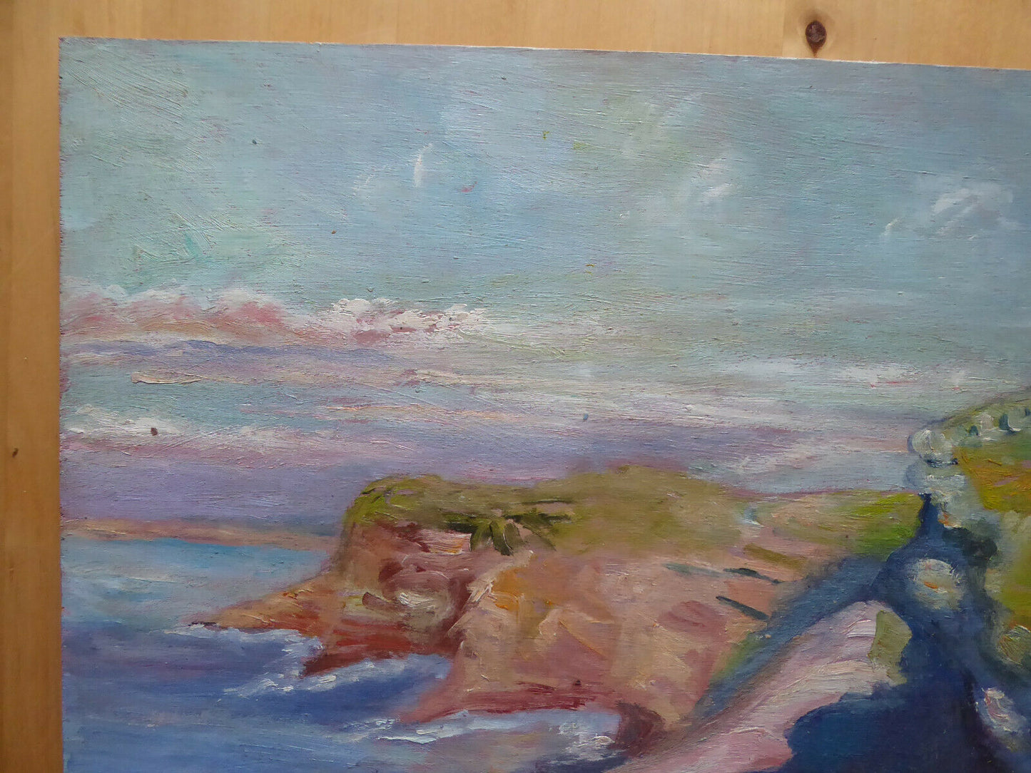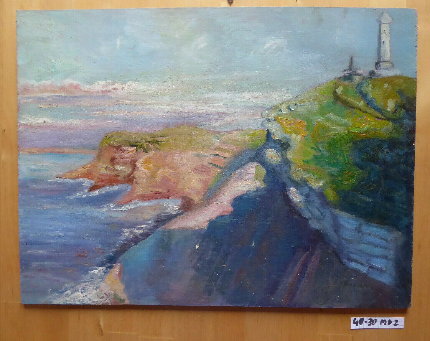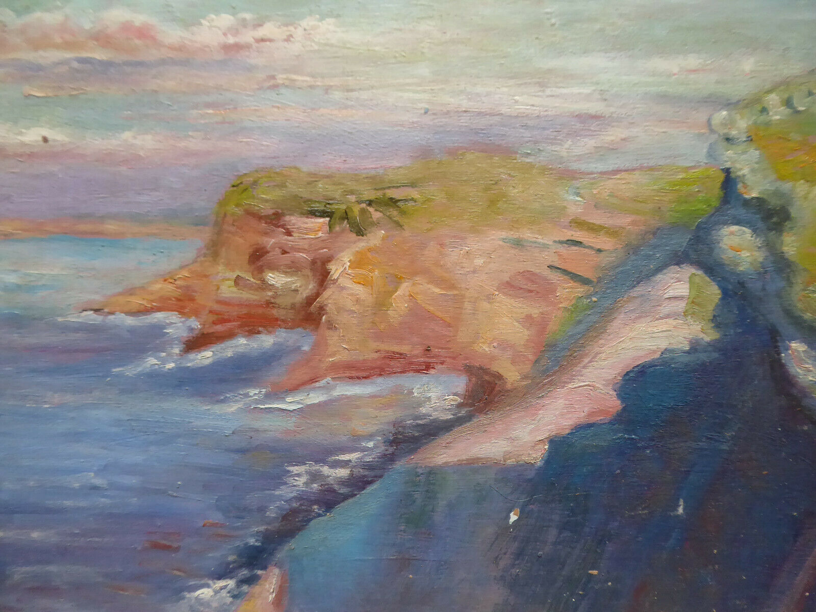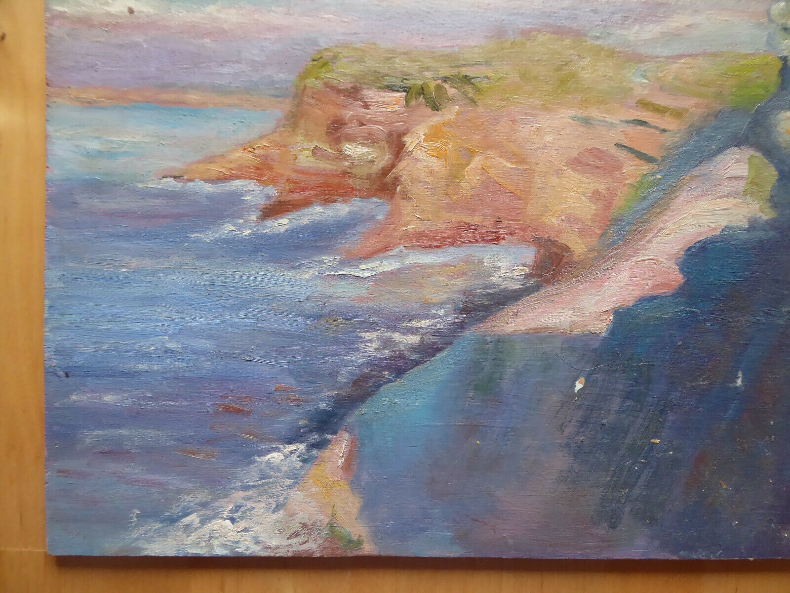QUADRO VINTAGE AD OLIO SU TAVOLA PAESAGGIO MARINA MARE SPAGNA FIRMATO MD2