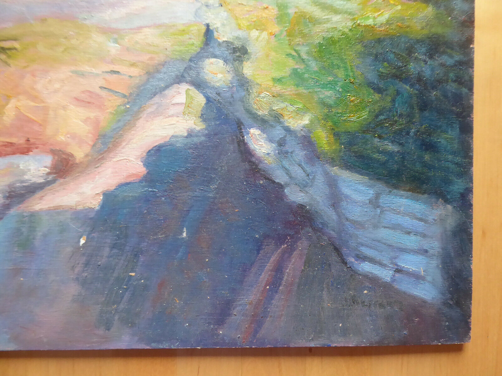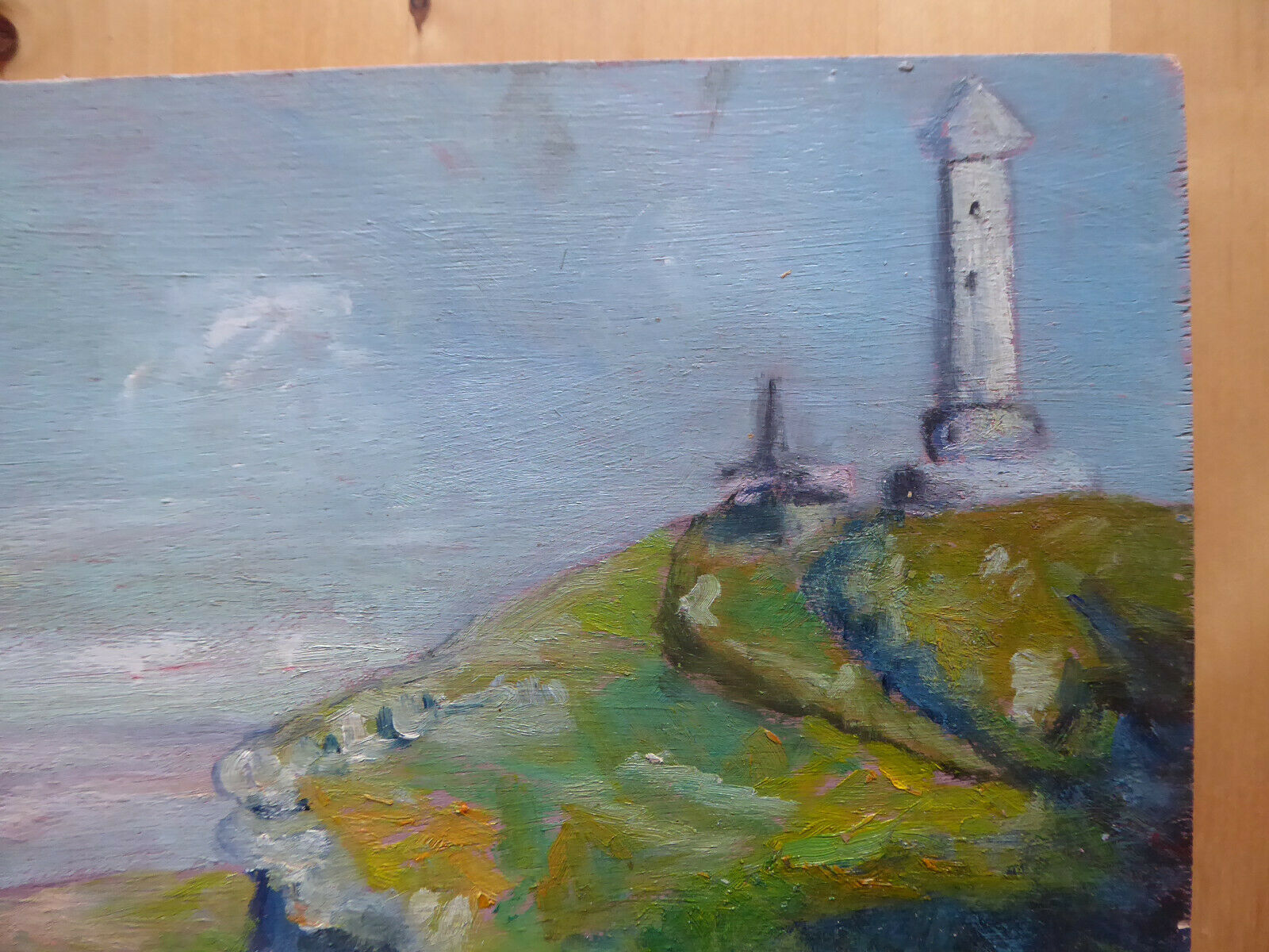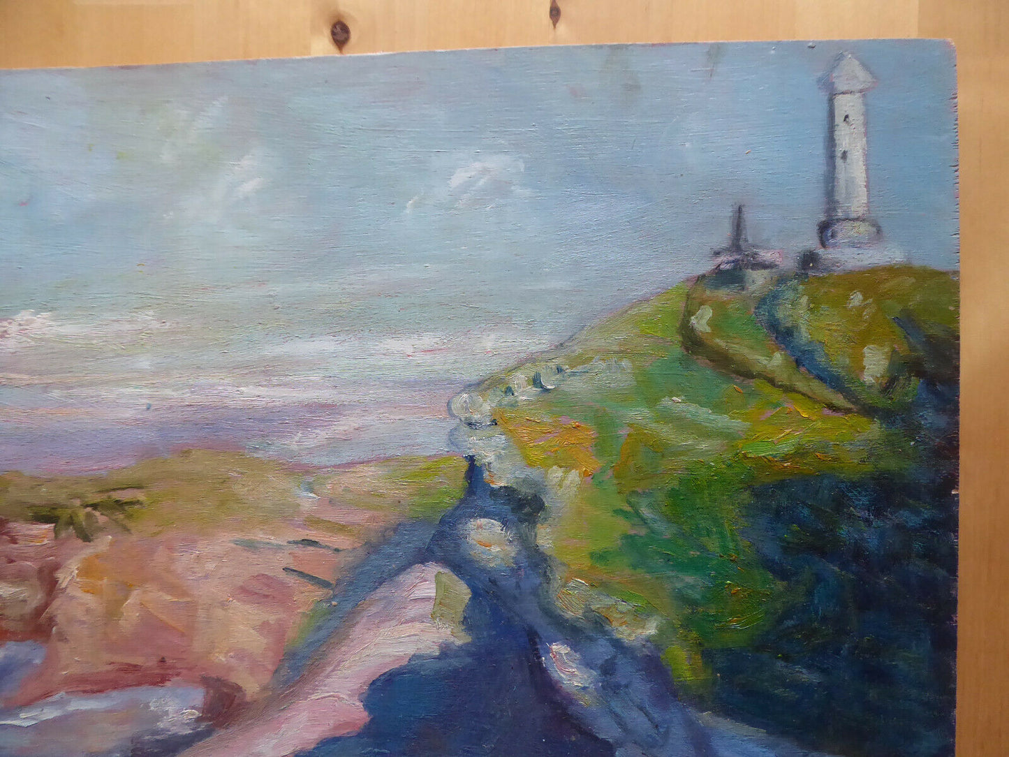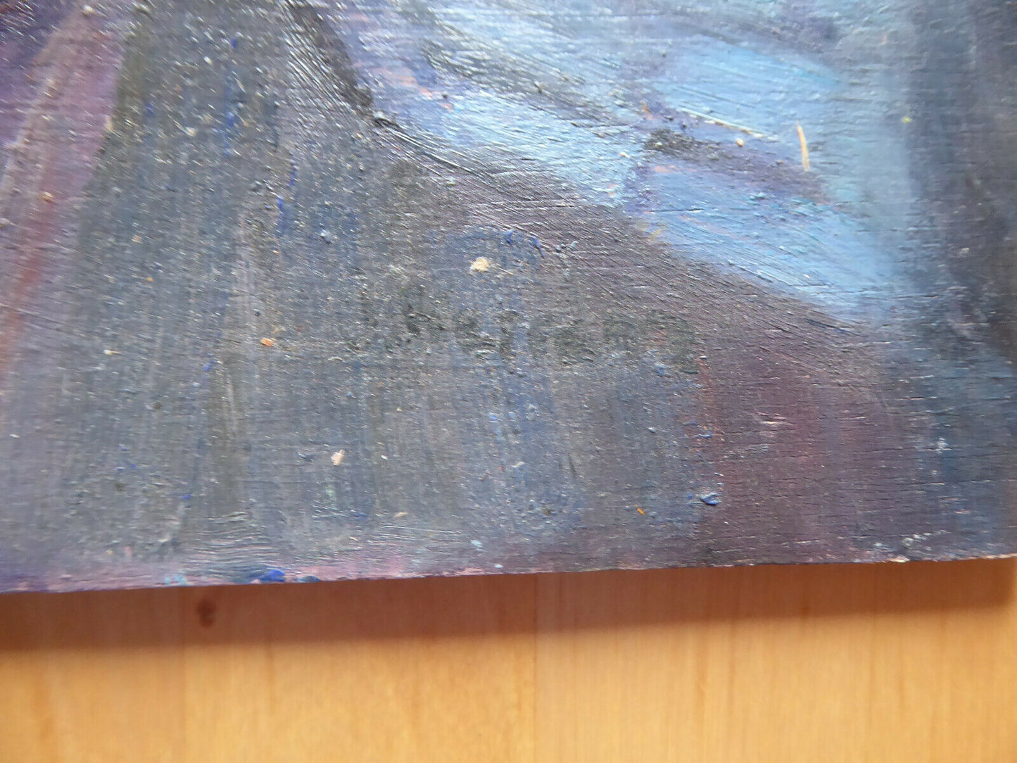 QUADRO VINTAGE AD OLIO SU TAVOLA PAESAGGIO MARINA MARE SPAGNA FIRMATO MD2