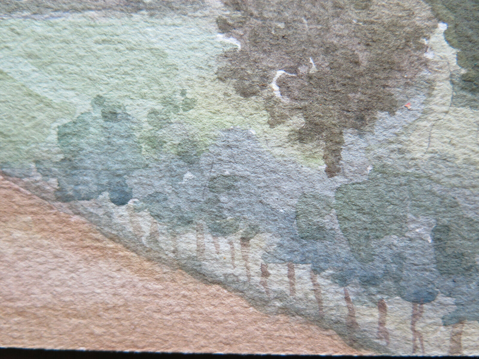 QUADRO VINTAGE DIPINTO ACQUERELLO PAESAGGIO CAMPAGNA EMILIANA FIRMATO P14