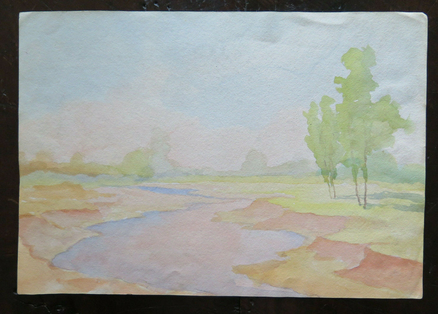 QUADRO VINTAGE DIPINTO ACQUERELLO PAESAGGIO FIRMATO EMILIA ROMAGNA 33x23 cm P14