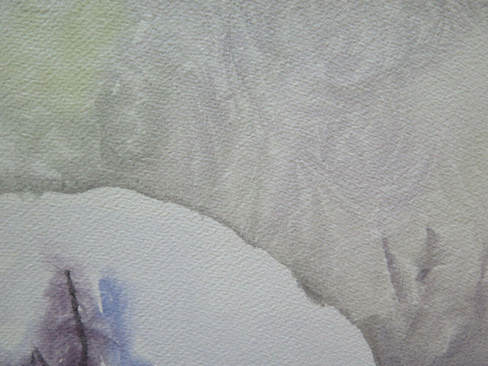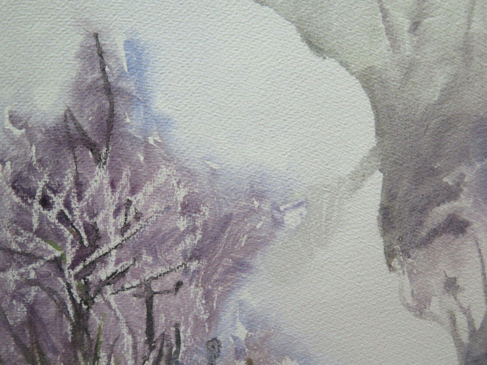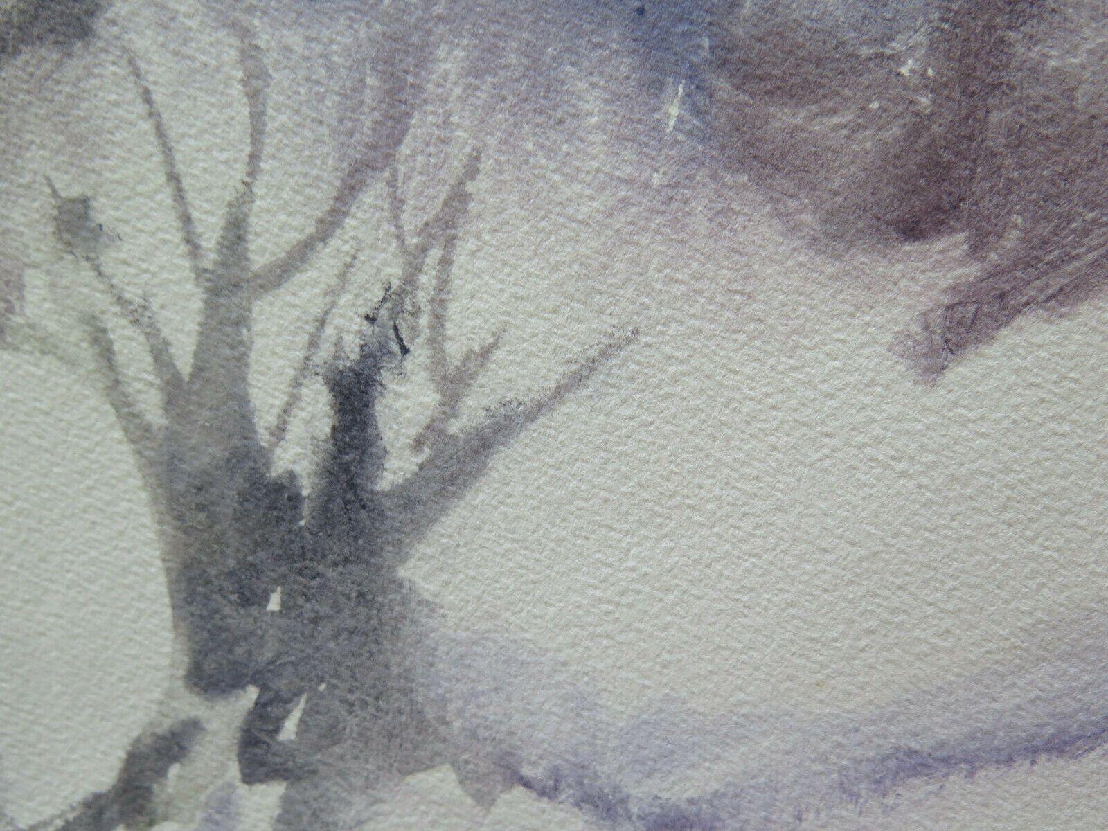Supporto e tecnica: acquerello su cartoncino. Realizzato con la "tecnica del gelo" per ottenere l'effetto ghiaccio in alcuni aree della superficie pittorica, tale tecnica consisteva nel porre al freddo vero e proprio il dipinto ancora fresco per poi lavorarlo successivamente. Questo effetto è stato creato dal pittore Pancaldi e ricorre in molti suoi lavori soprattutto nella fase della maturità . Autore: Gaetano Pancaldi (Piumazzo di Castelfranco Emilia, 1922-2014).