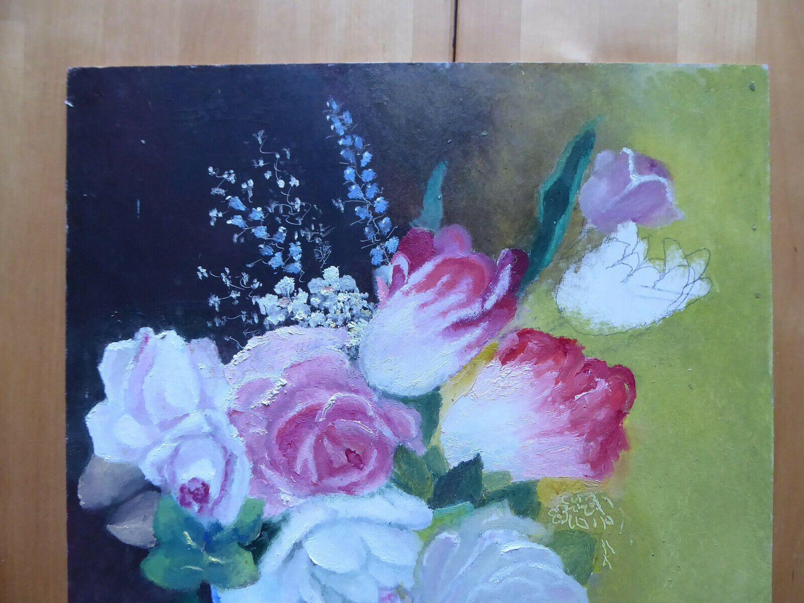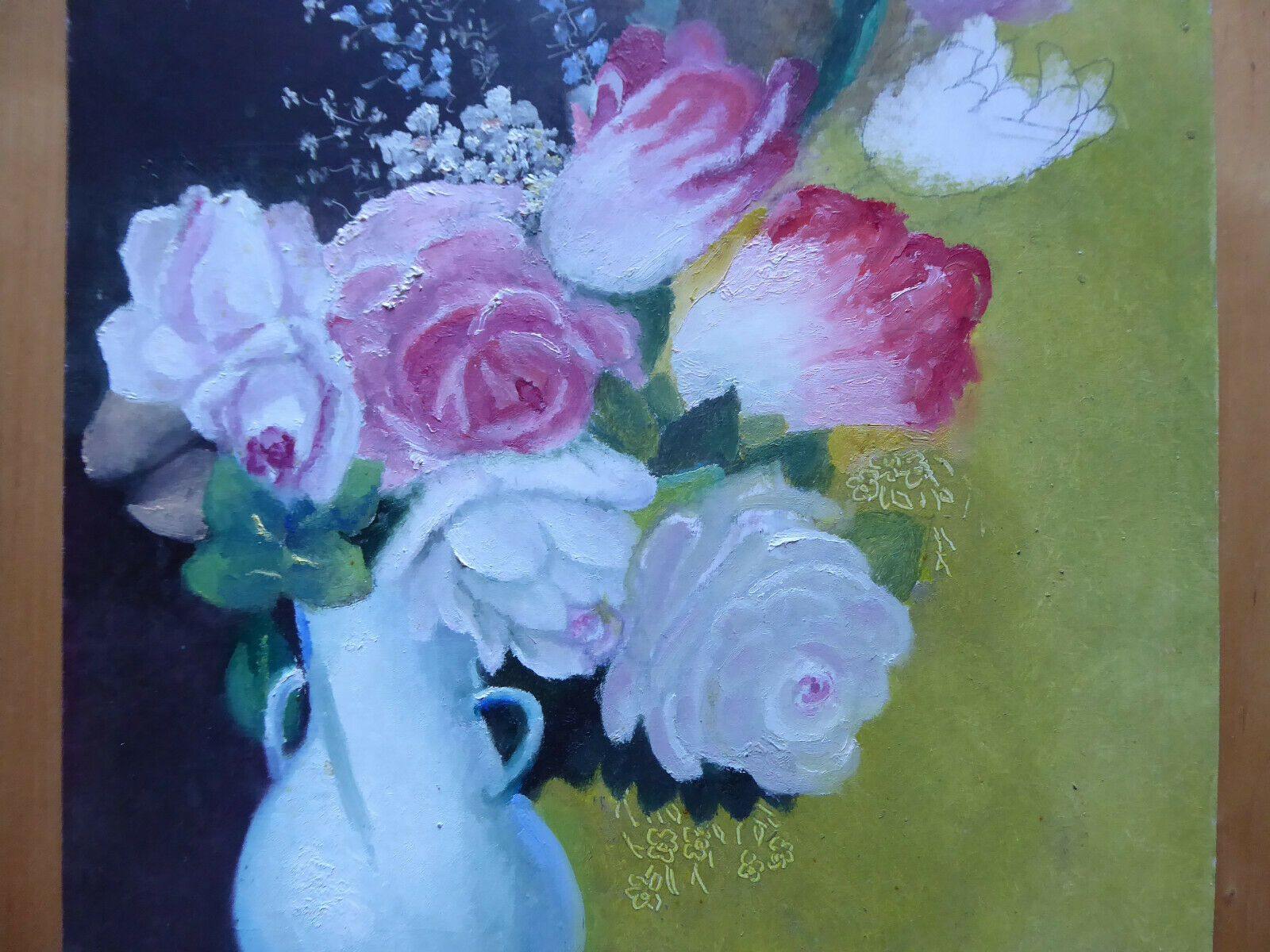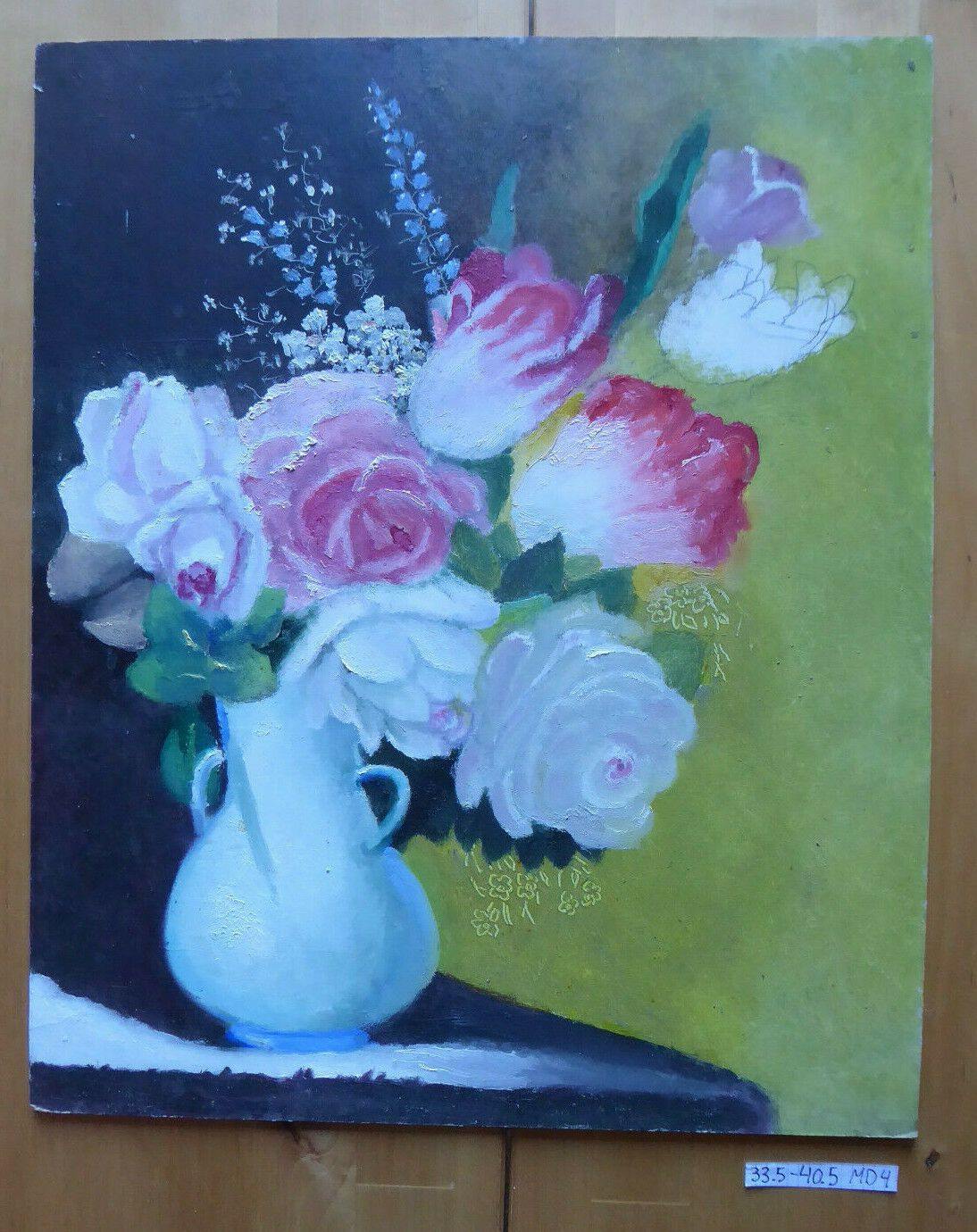 QUADRO VINTAGE FLOREALE DIPINTO OLIO SU TAVOLA SPAGNA EPOCA '900 MADRID MD4