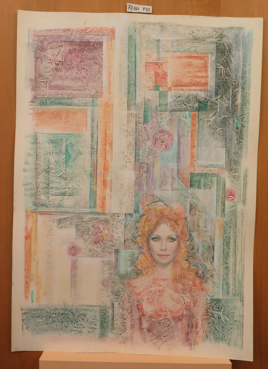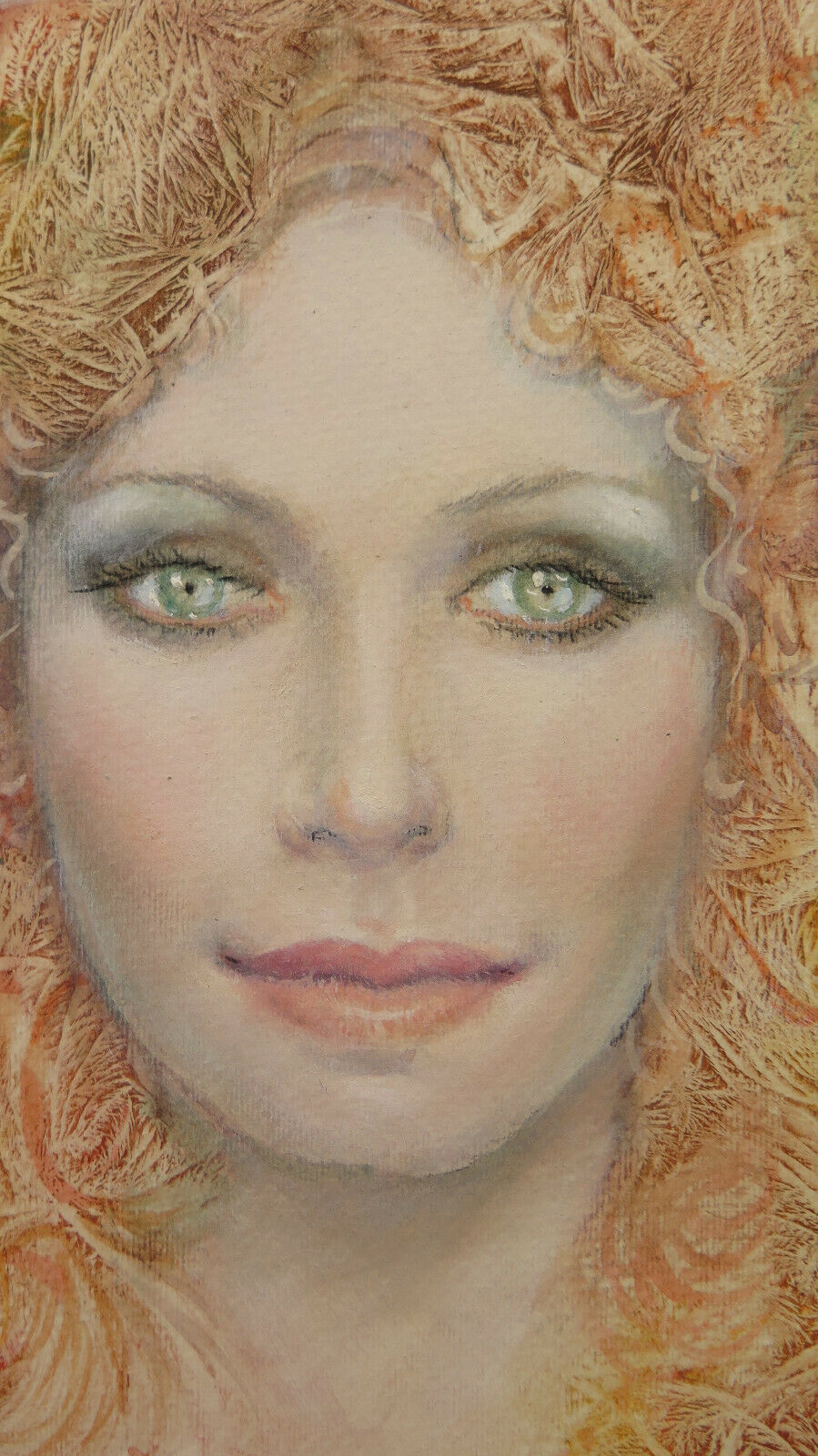 RITRATTO FEMMINILE ACQUERELLO GELATO QUADRO DIPINTO TENICA MISTA DEL GELO P35