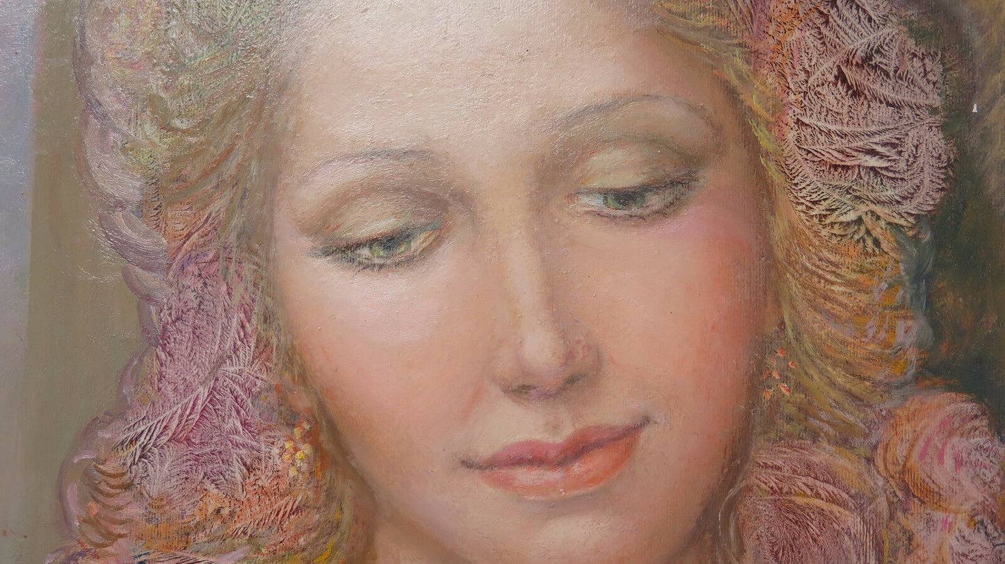 RITRATTO FEMMINILE VINTAGE DIPINTO AD ACQUERELLO CON EFFETTO GELO FIRMATO P29