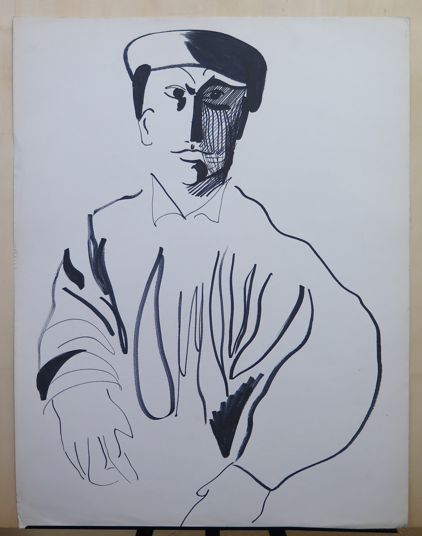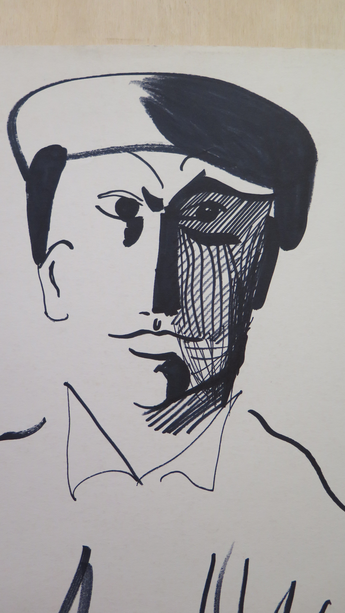 RITRATTO MASCHILE GRAFICA ANNI '70 ACRILICO CARTA FRANCIA VNITAGE BM53.4