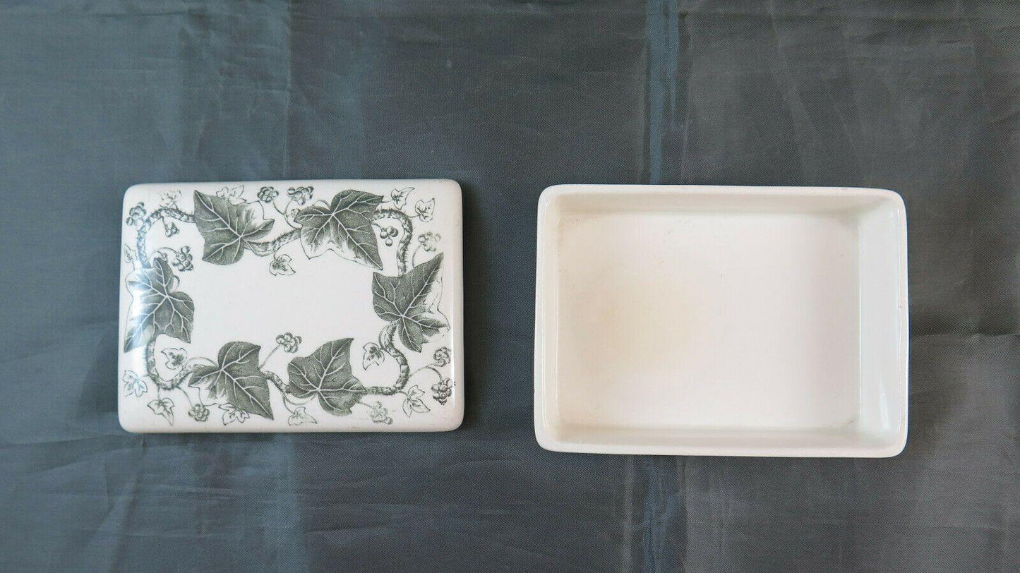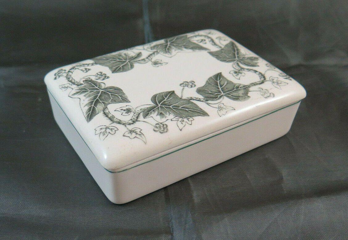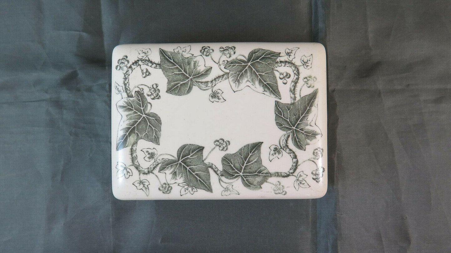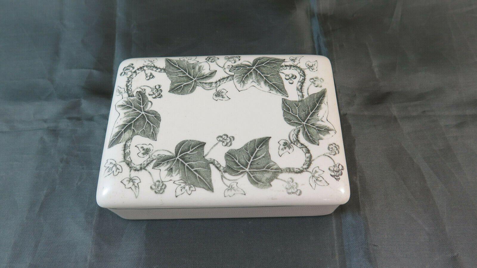 Vintage Wedgwood Barlaston Etruria porcelain box decorated with leaves.