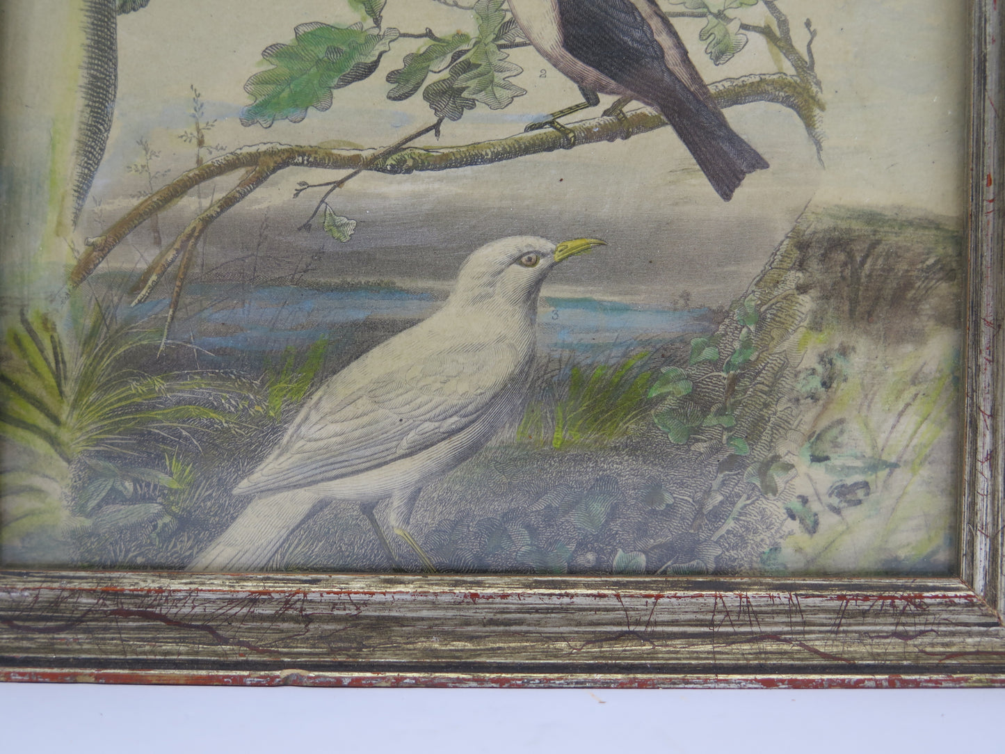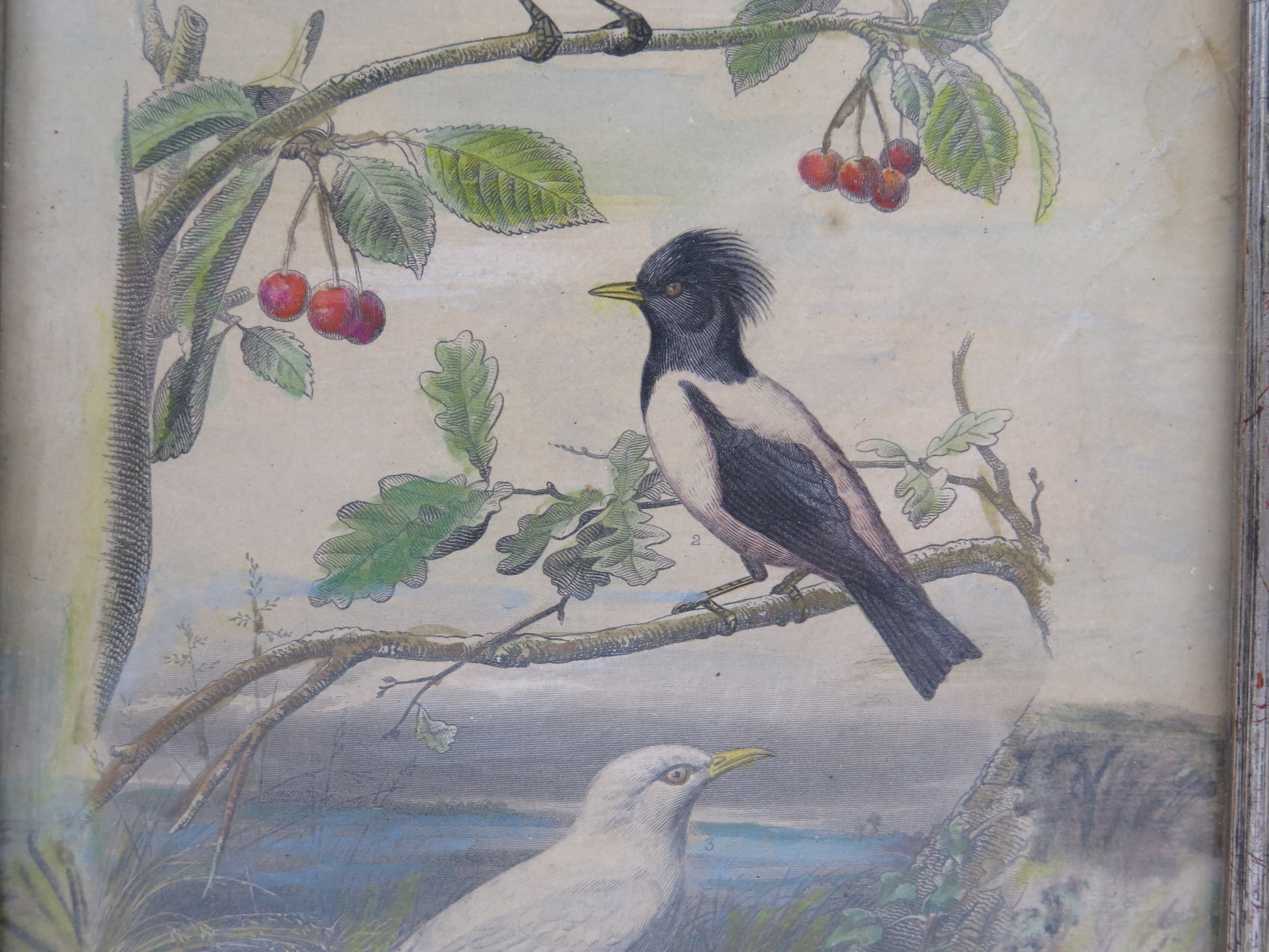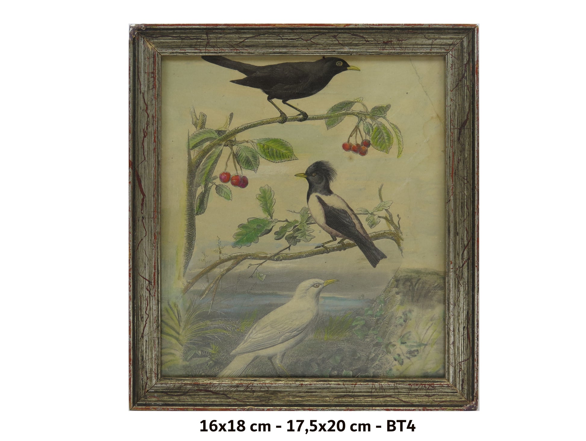Stampa antica tema naturalistico uccelli animali merlo ciliegie incisione bt4