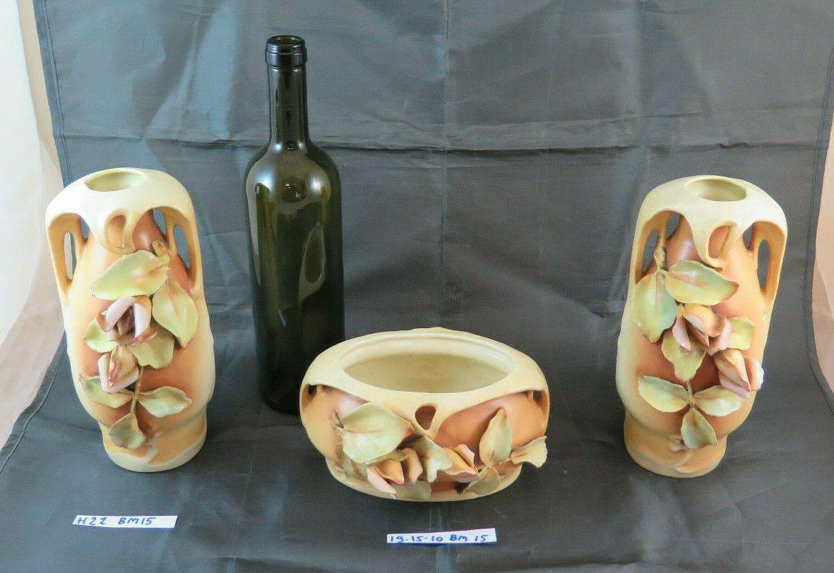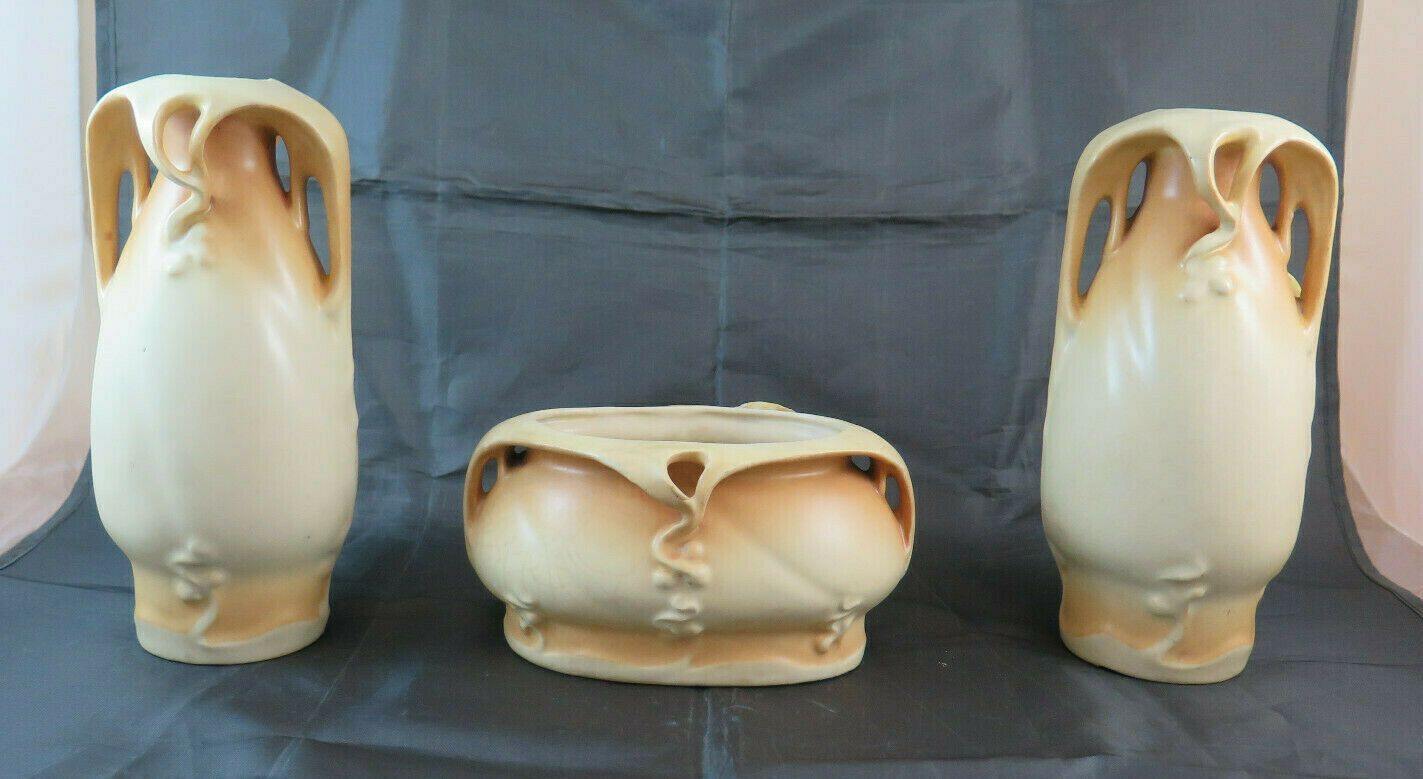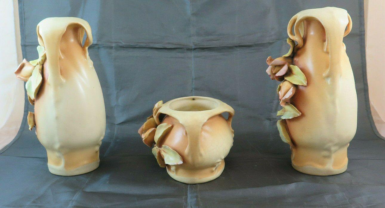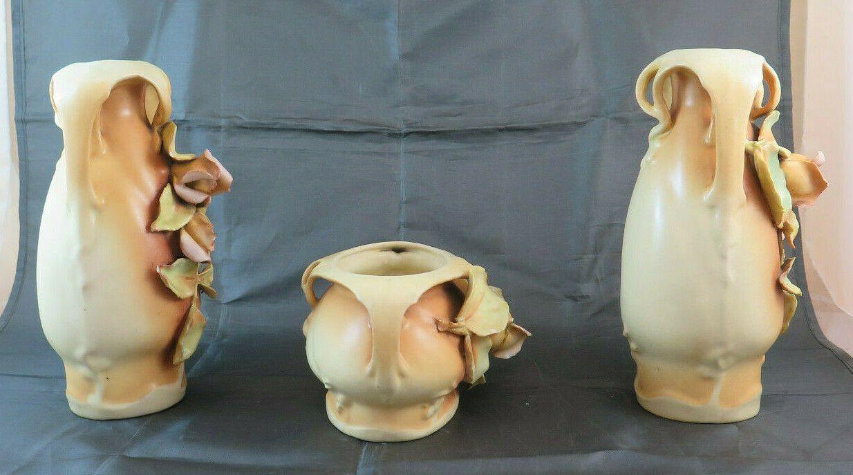 TRE VASI ANTICHI ART NOUVEAU IN CERAMICA STILE LIBERTY FLOREALE FRANCIA BM15