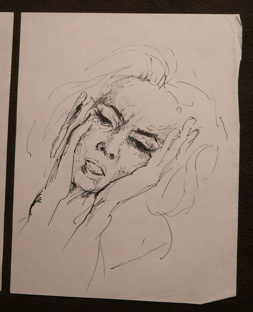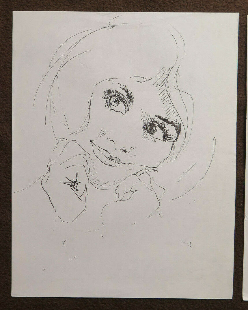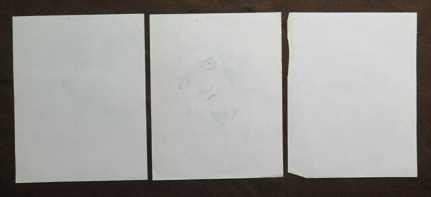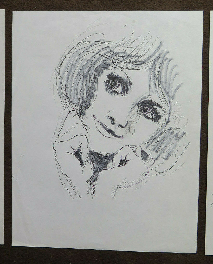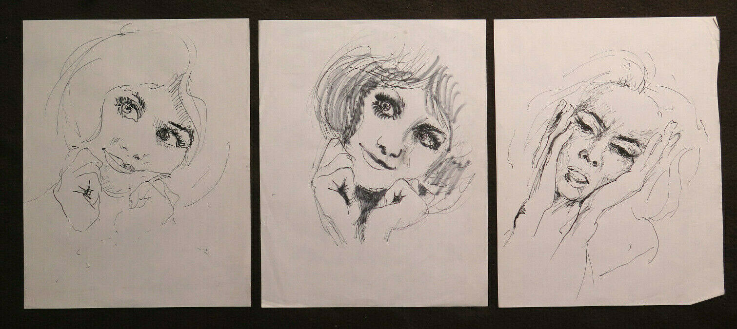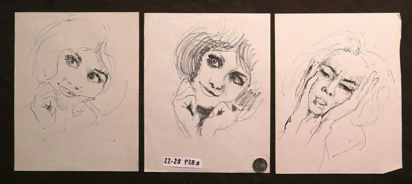 TRE VECCHI DISEGNI BOZZETTI RITRATTO ESPRESSIONE VOLTO FEMMINILE SCHIZZO P28.8