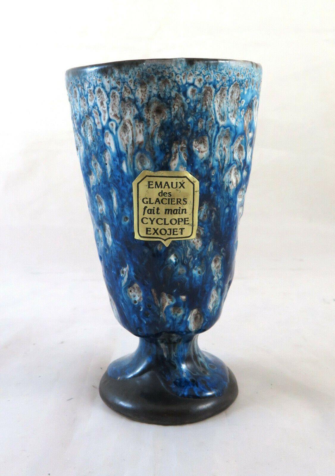 VASO IN CERAMICA VINTAGE EMAUX DE GLACIER CYCLOPE EXOJET ANNECY FRANCIA BM16