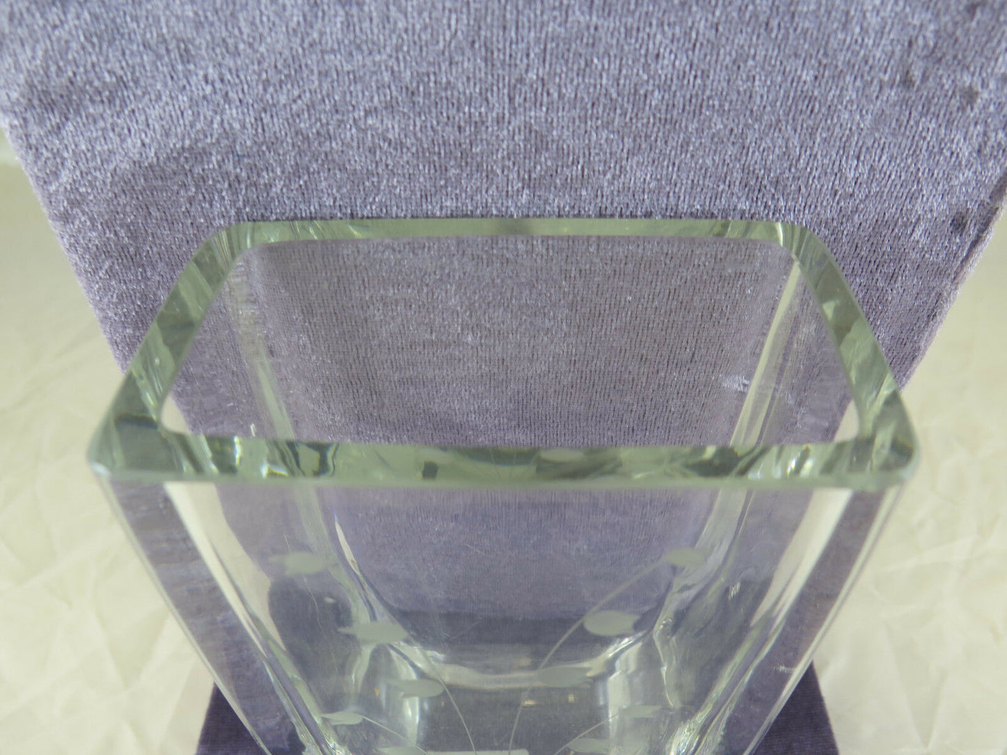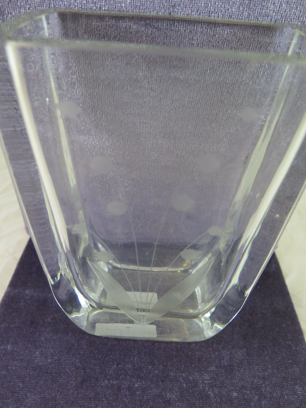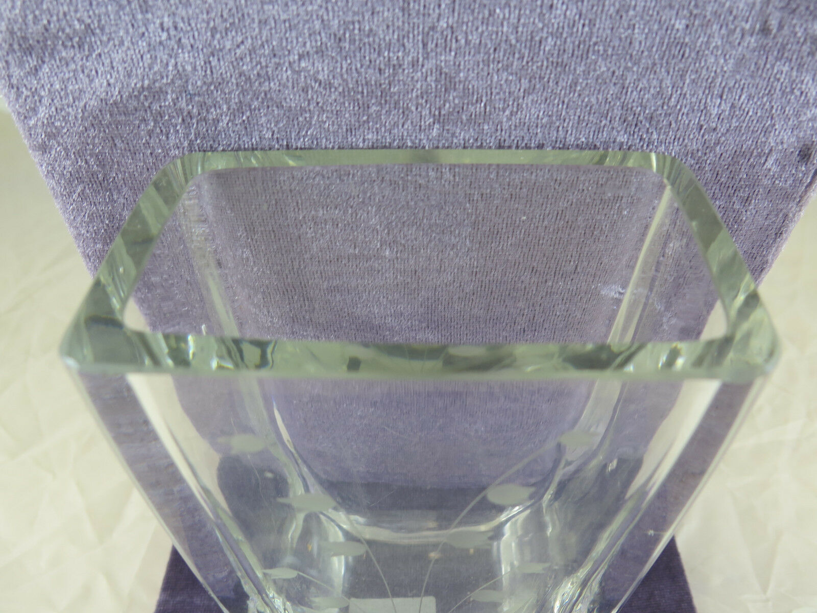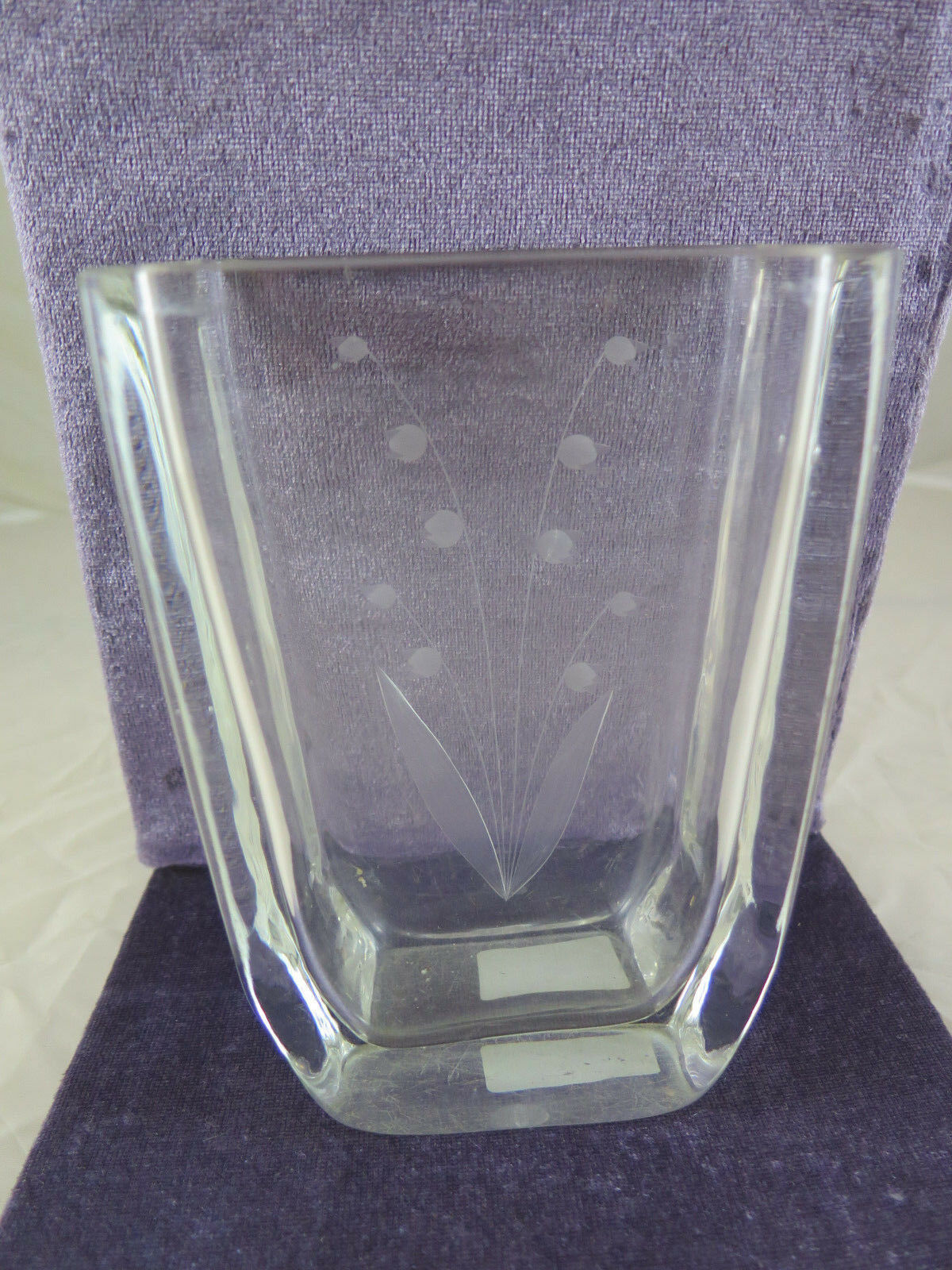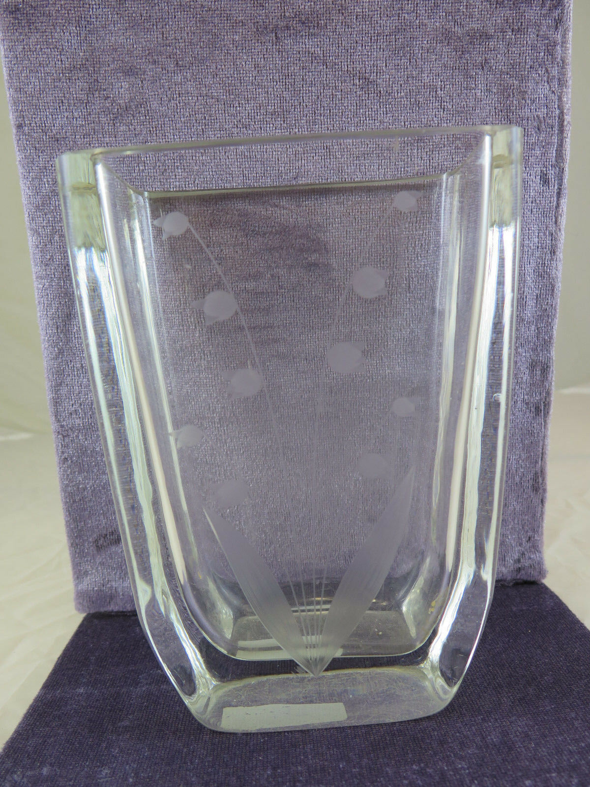 Elegante vaso in vetro decò decorato con leggeri motivi floreali.