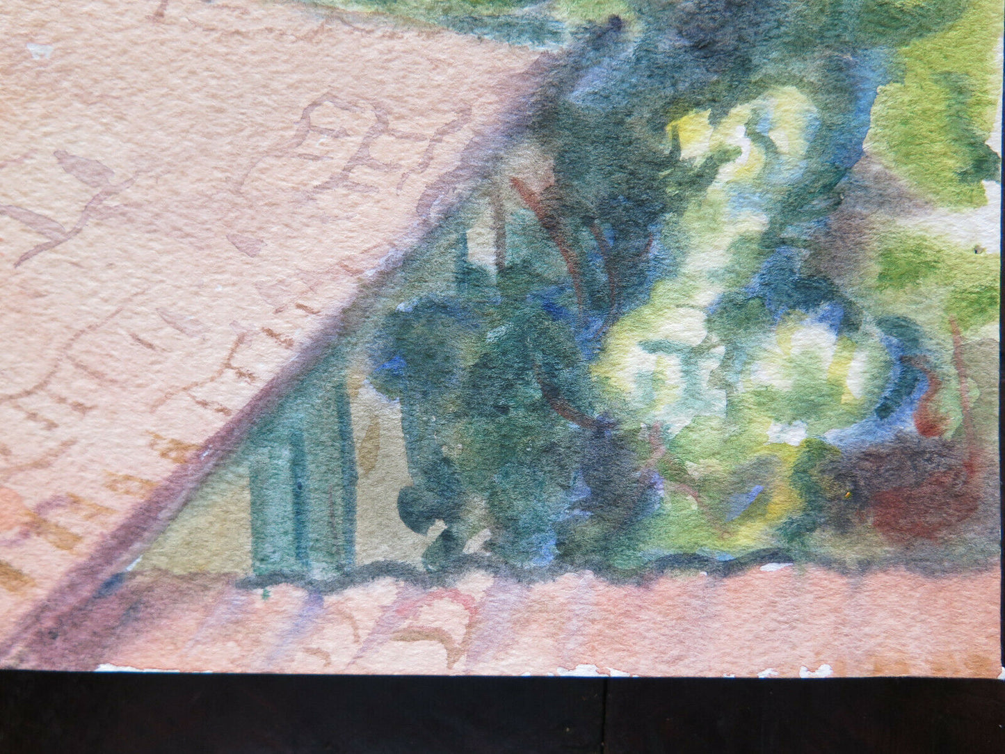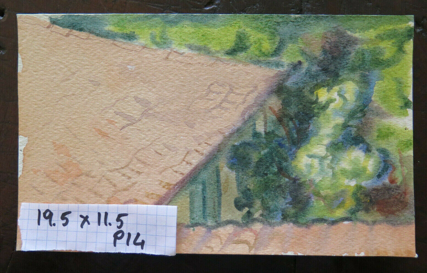 VECCHIO BOZZETTO DIPINTO AD ACQUERELLO SU CARTA VEDUTA DEI TETTI DI PIUMAZZO P14