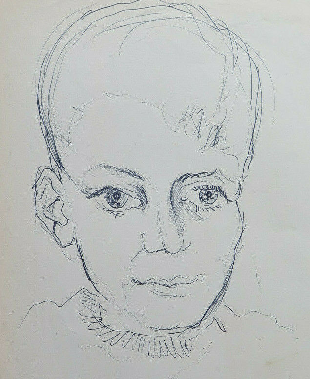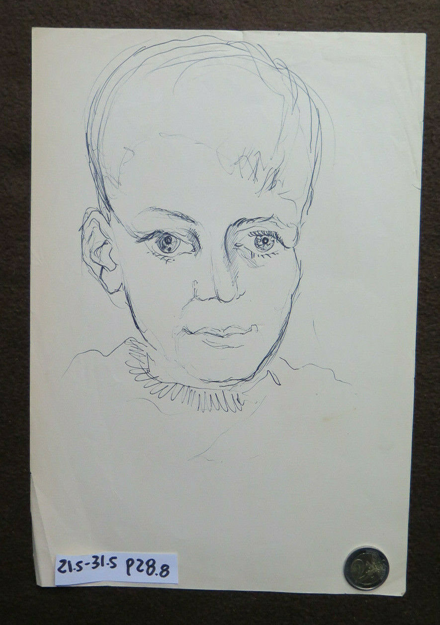 VECCHIO BOZZETTO DISEGNO SU CARTA CON RITRATTO RAGAZZA DONNA ANNI 50 60 P28.8
