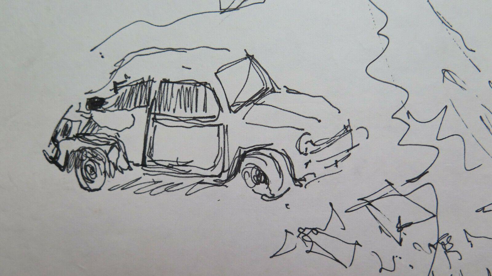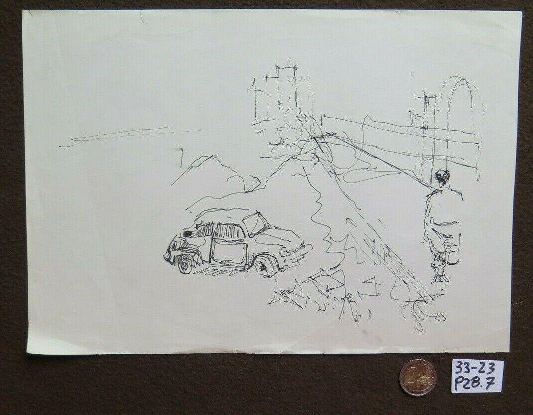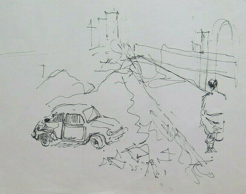 VECCHIO BOZZETTO PREPARATORIO INCIDENTE AUTO PITTORE G. PANCALDI 1922-2014 P28.7