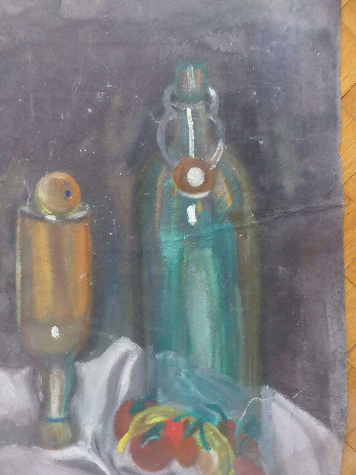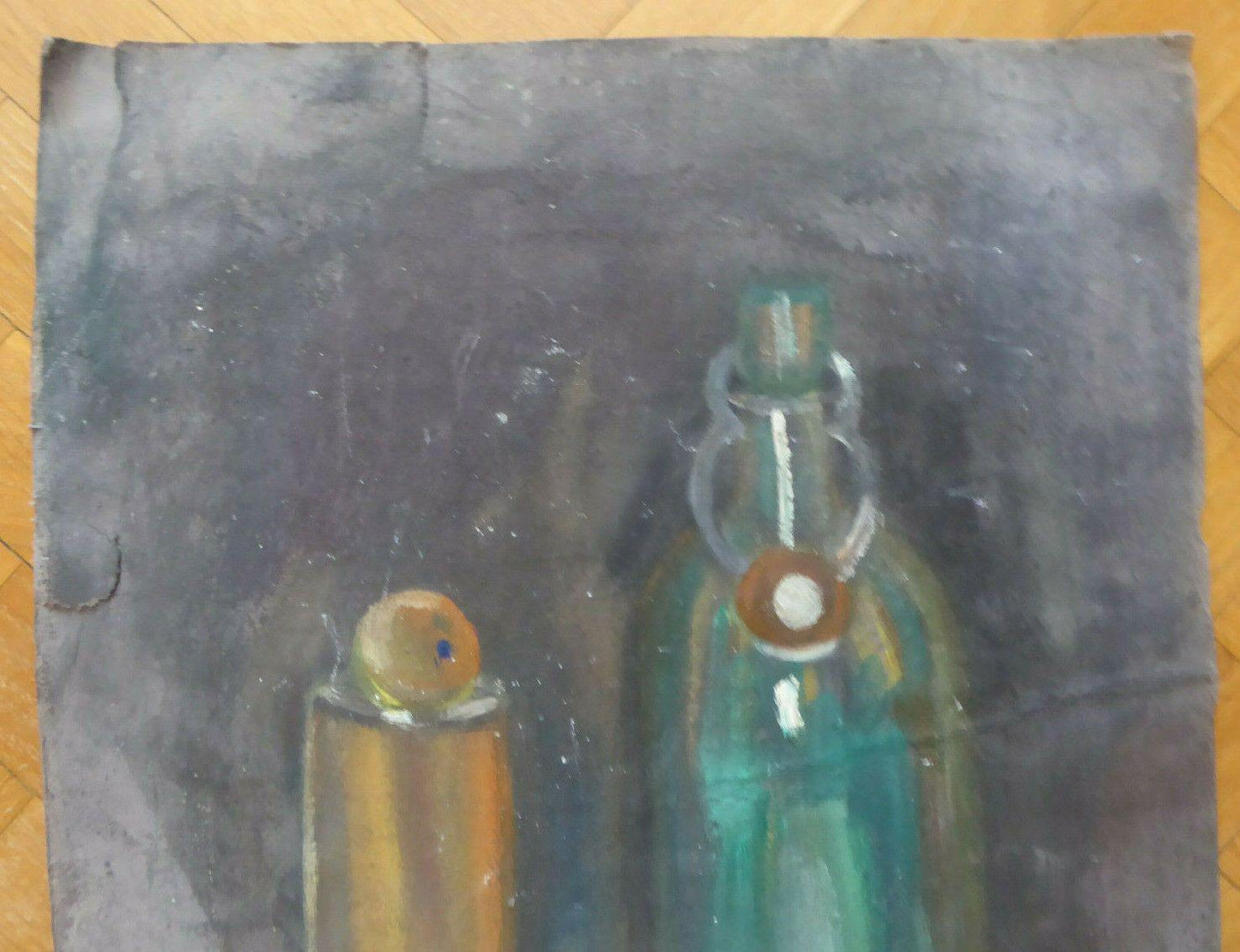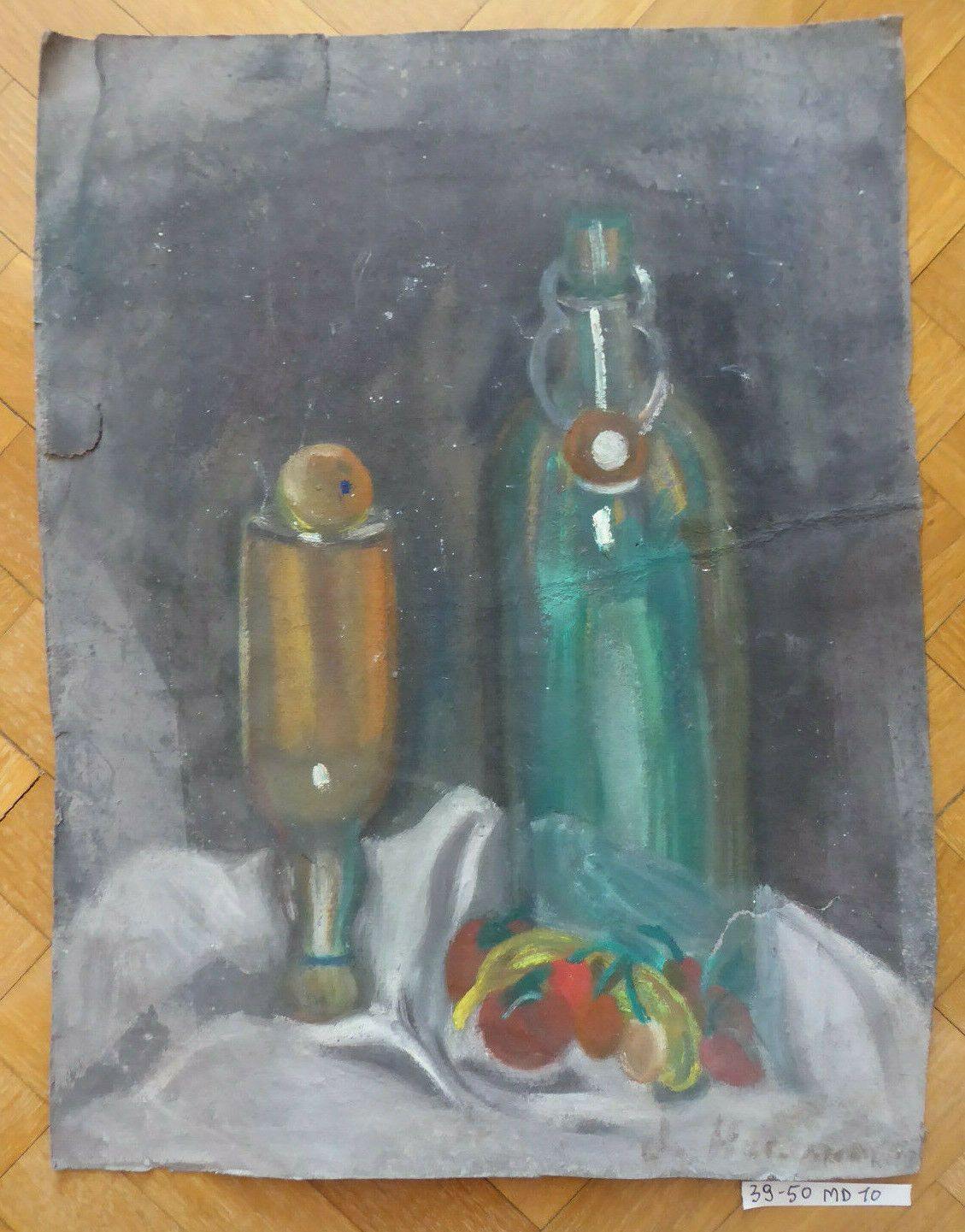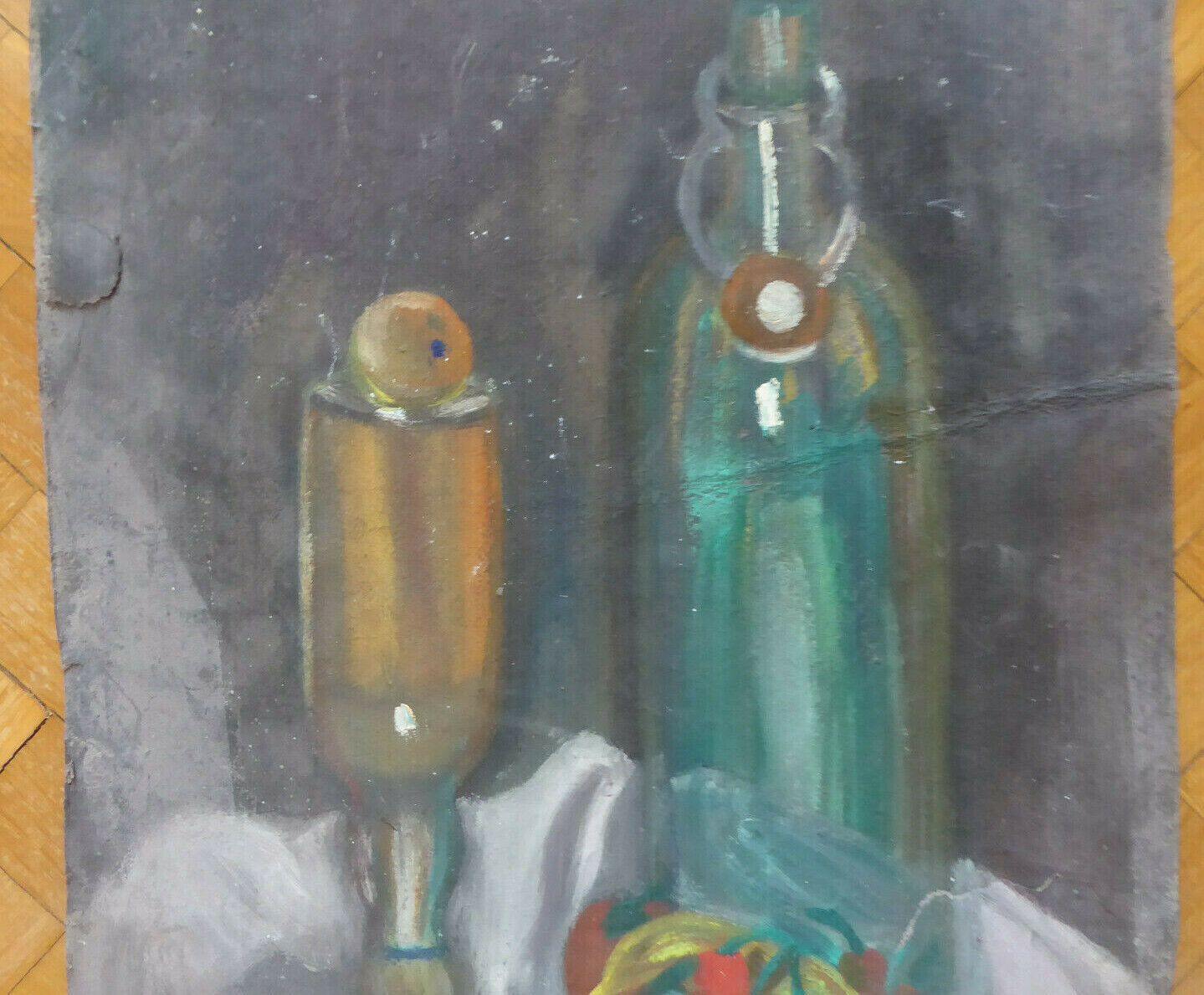 Suggestivo bozzetto che raffigura degli oggettu su uno sfondo scuro, probabilmente un esercizio realizzato in giovane età. Firmato.