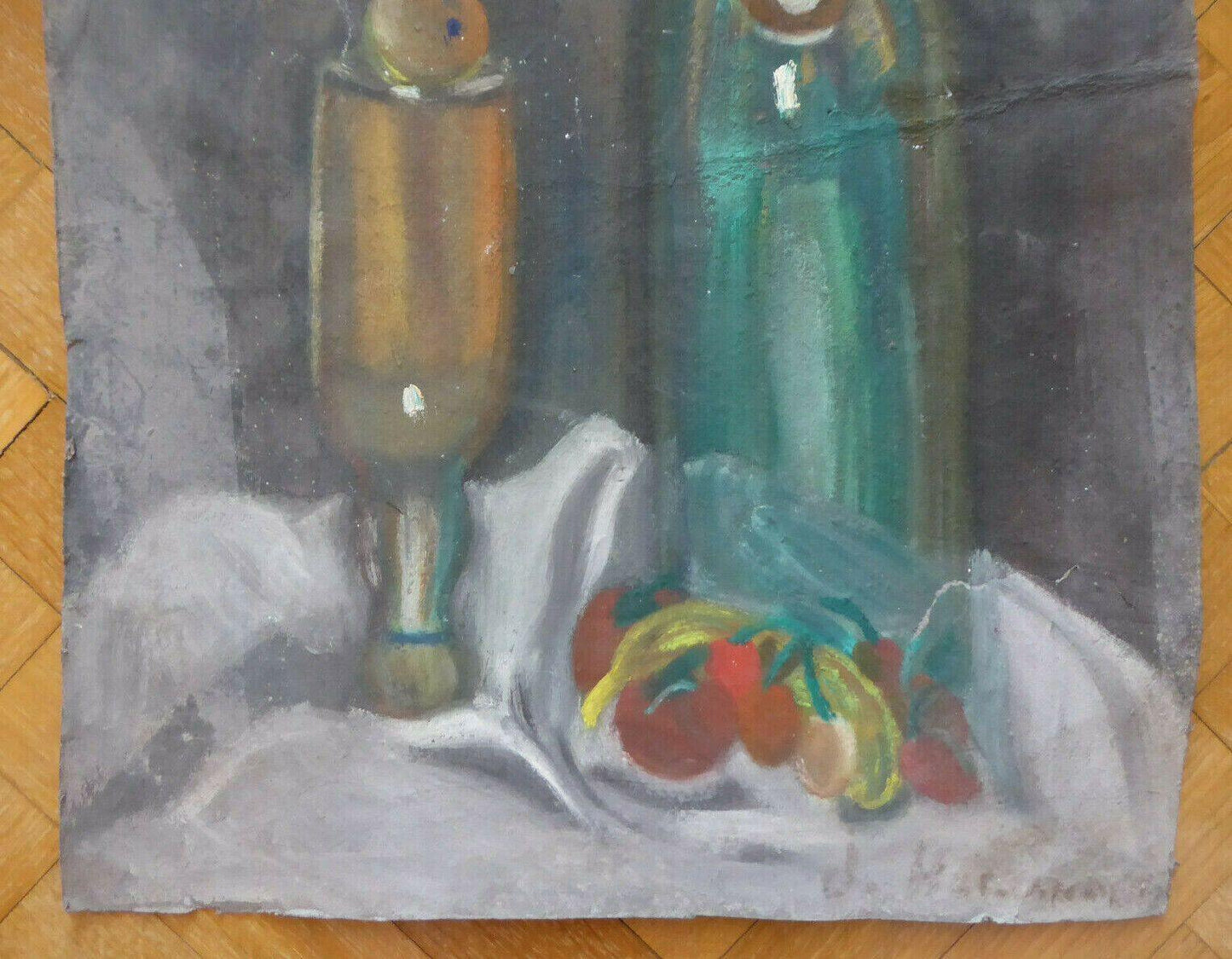 Objects on a table, probably a young age study. Signed.