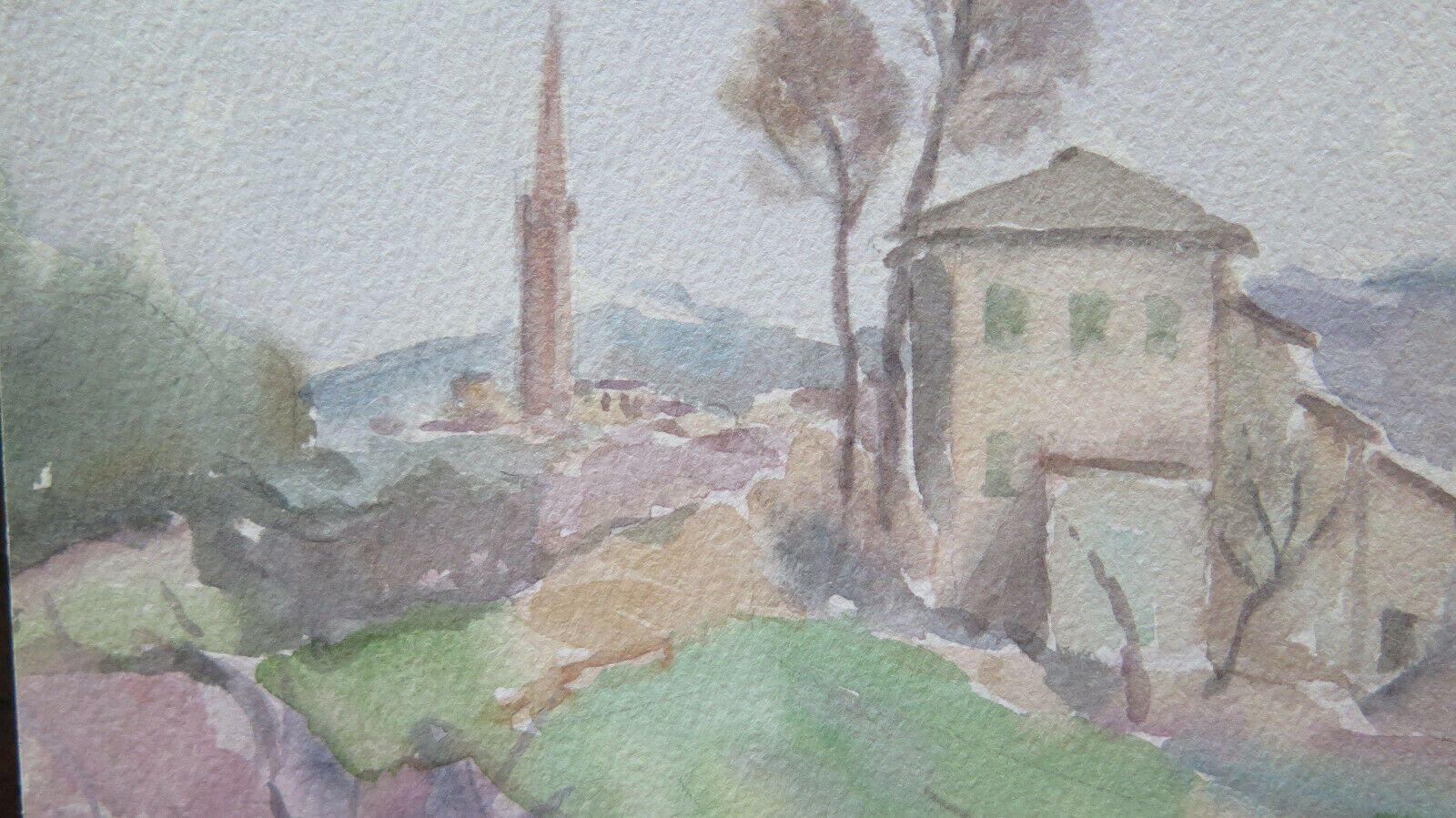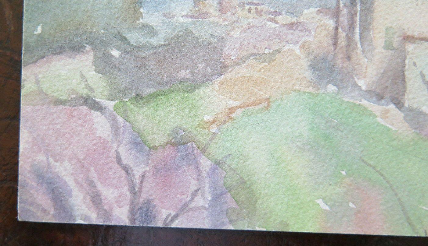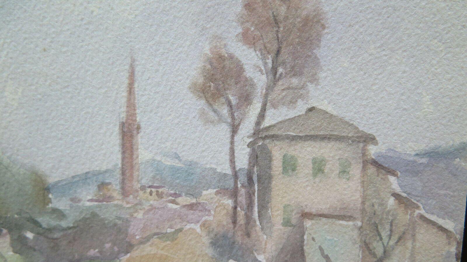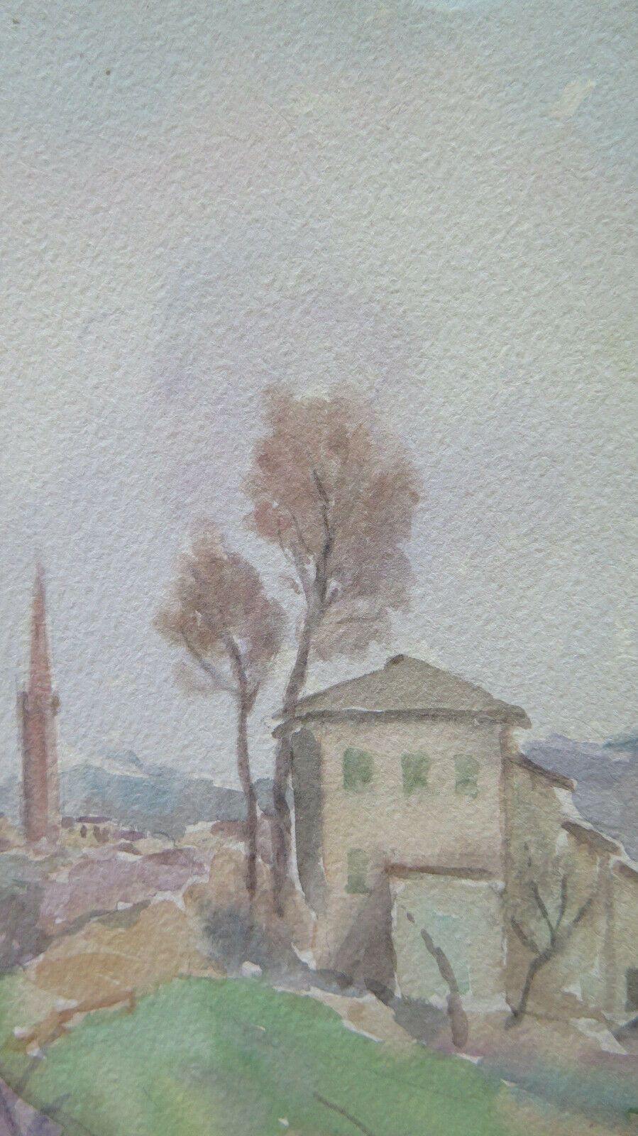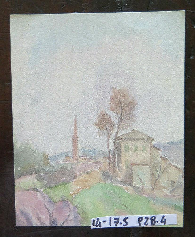 VECCHIO DIPINTO BOZZETTO AD ACQUERELLO VEDUTA PAESAGGIO BORGO CAMPAGNA P28.4
