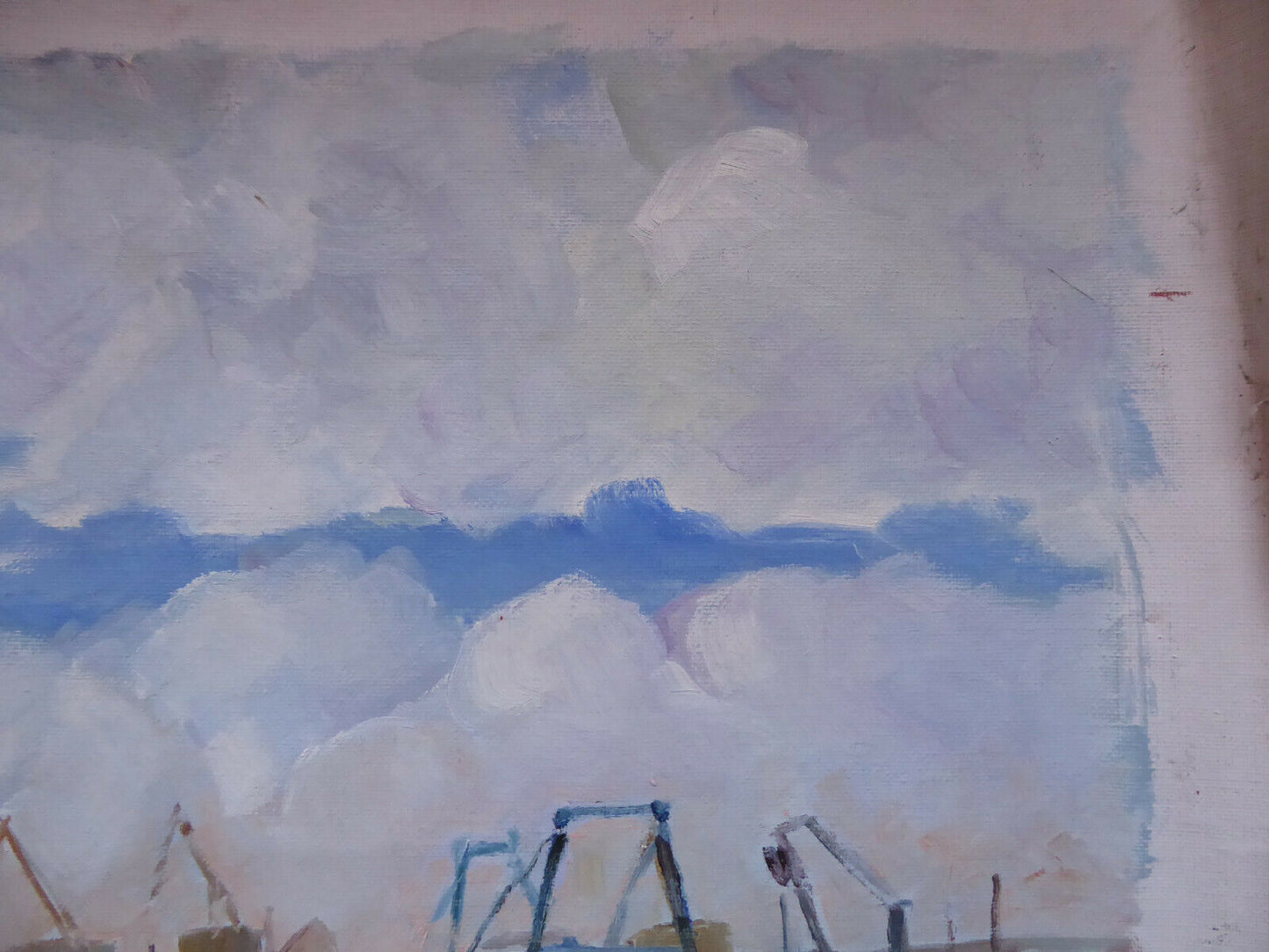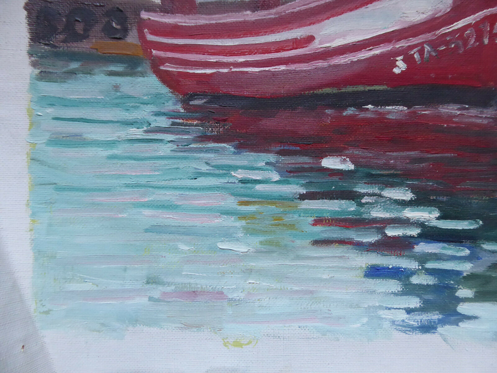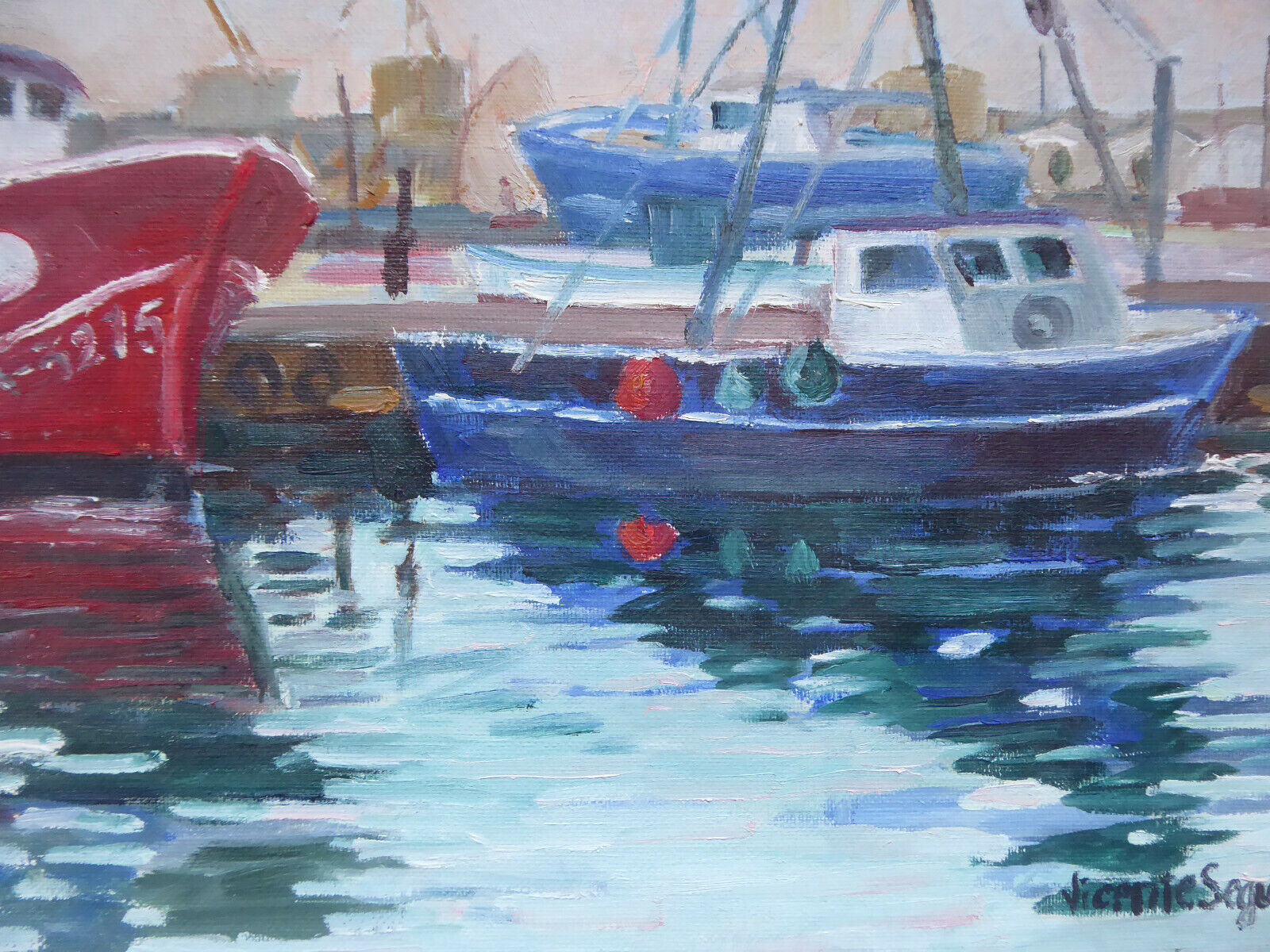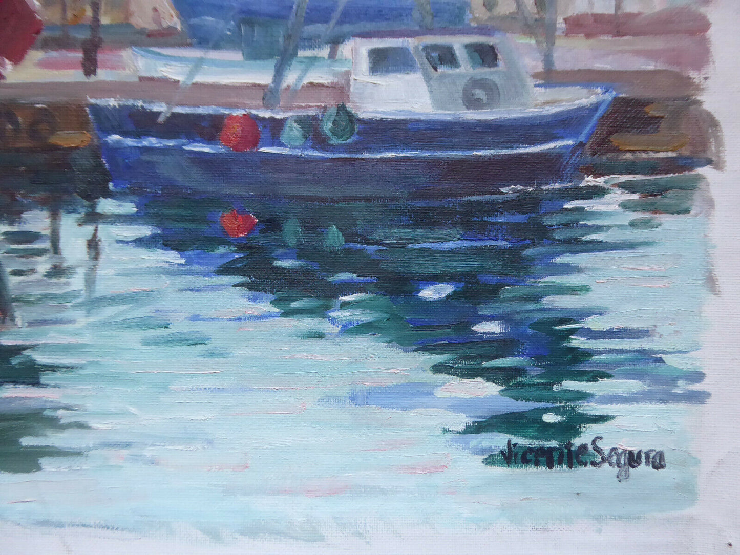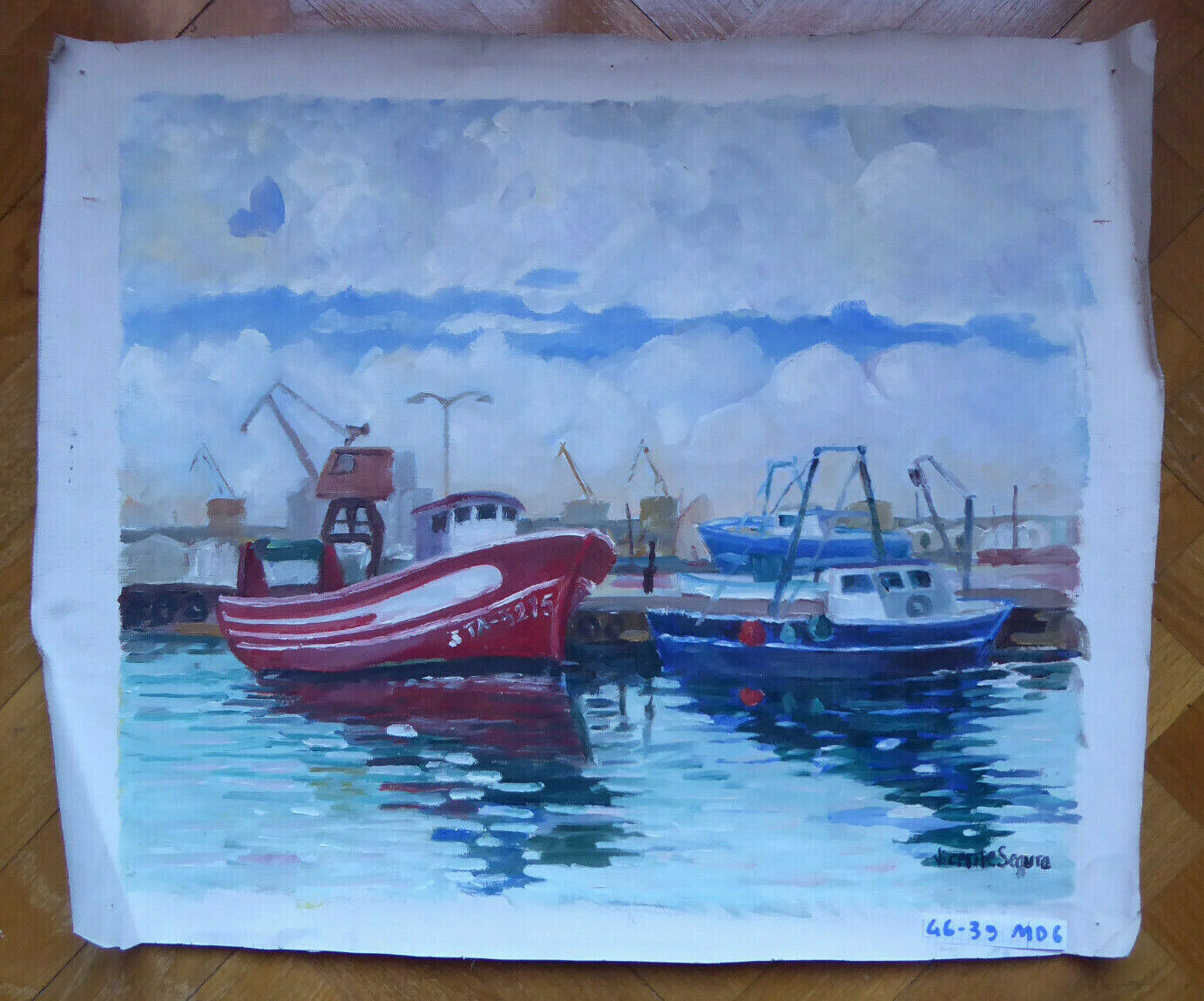 VECCHIO DIPINTO DEL PITTORE SPAGNOLO VICENTE SEGURA MARINA BARCHE MARE PORTO MD6