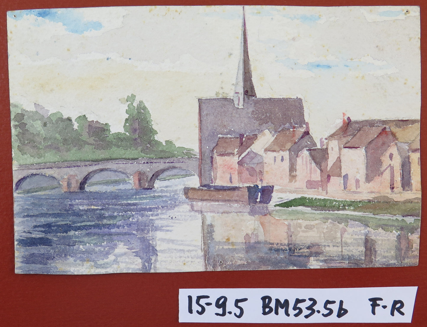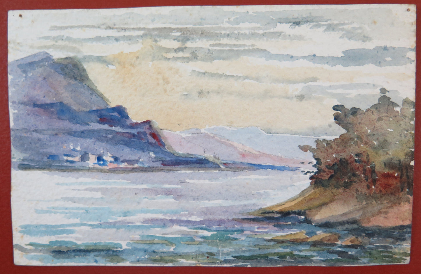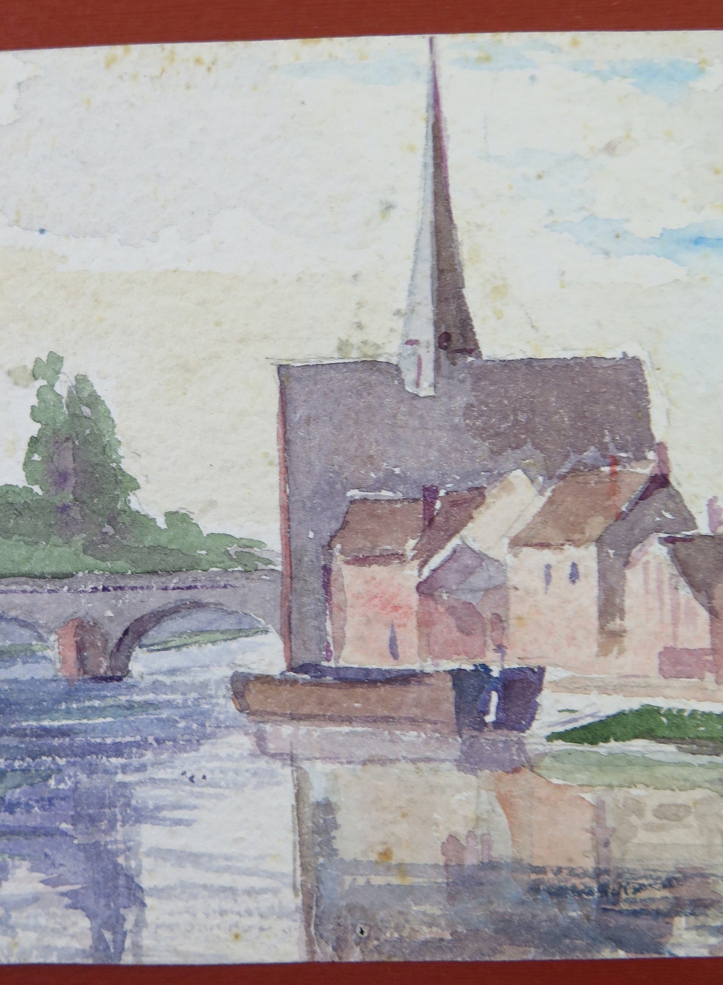 Delizioso dipinto di piccole dimensioni che raffigura un tipico paese della Francia. Dipinto anche al retro.