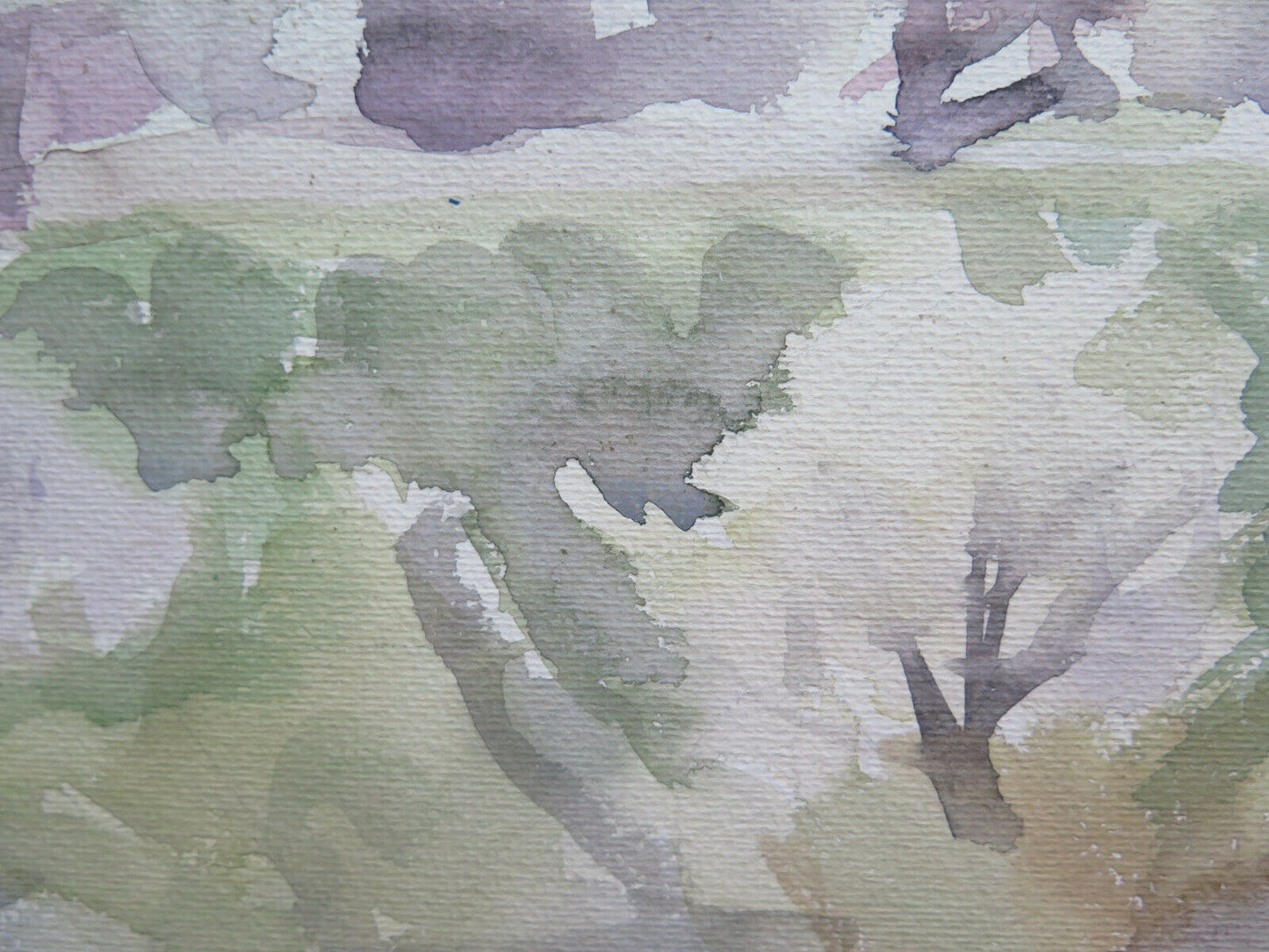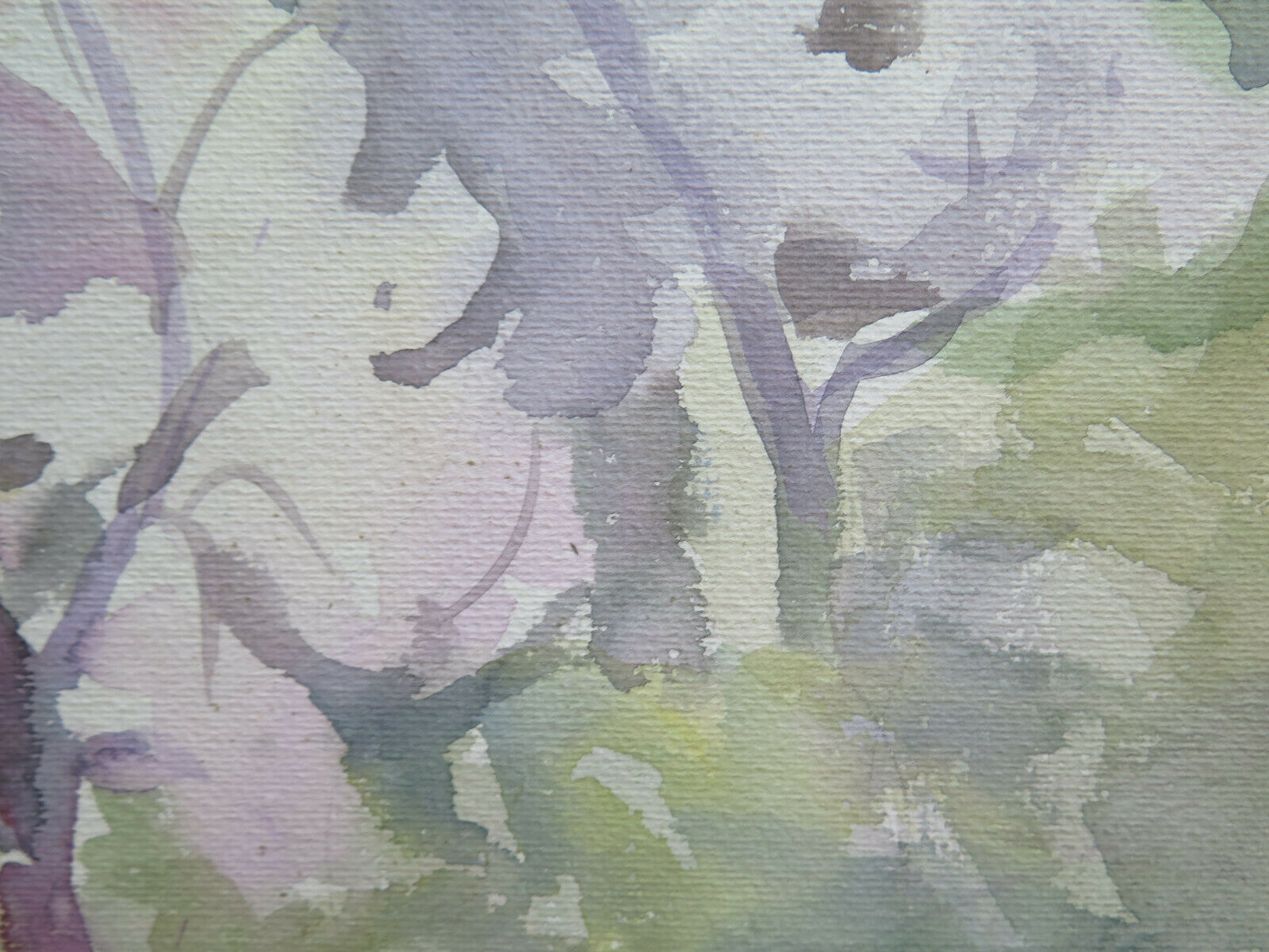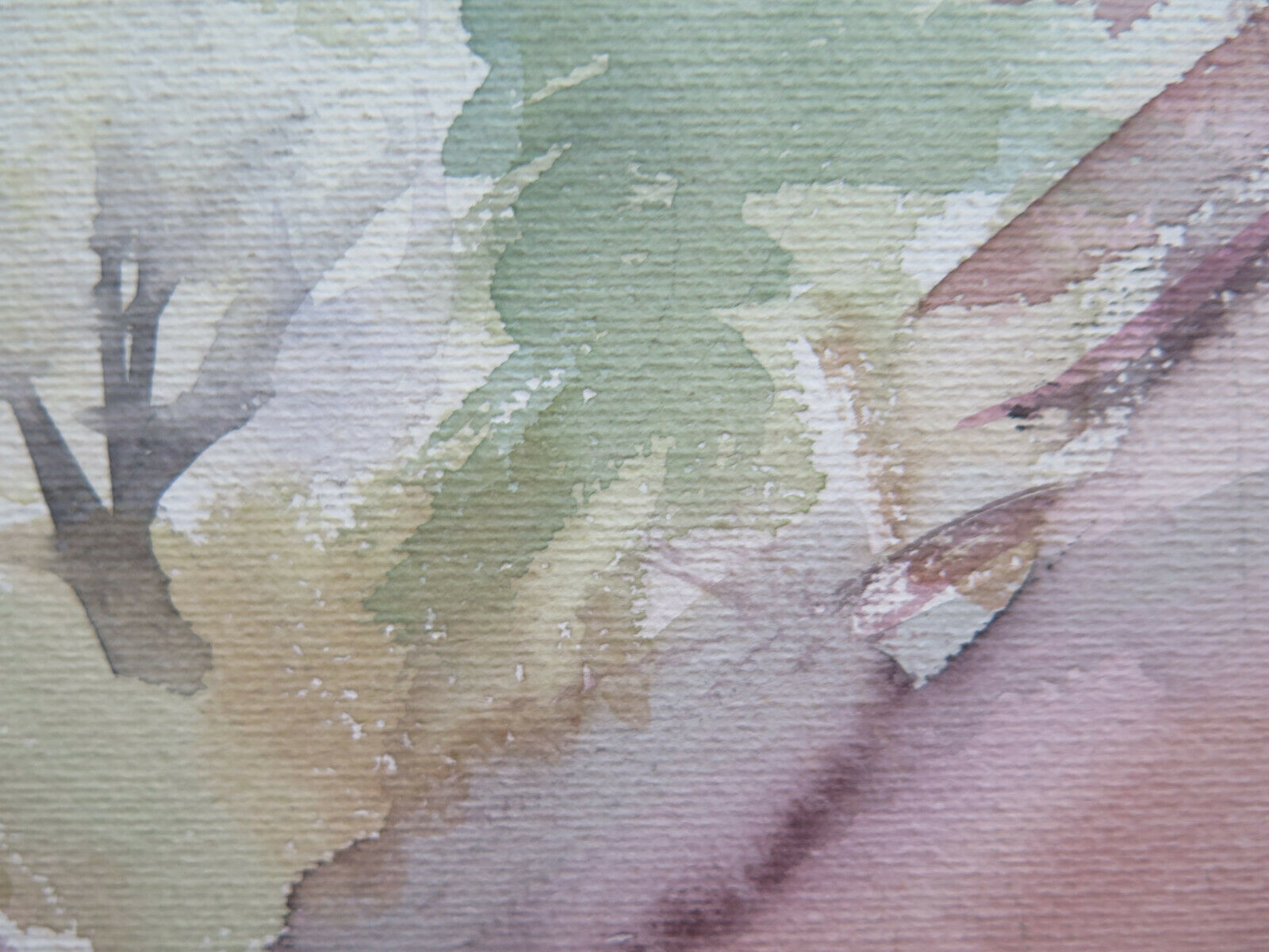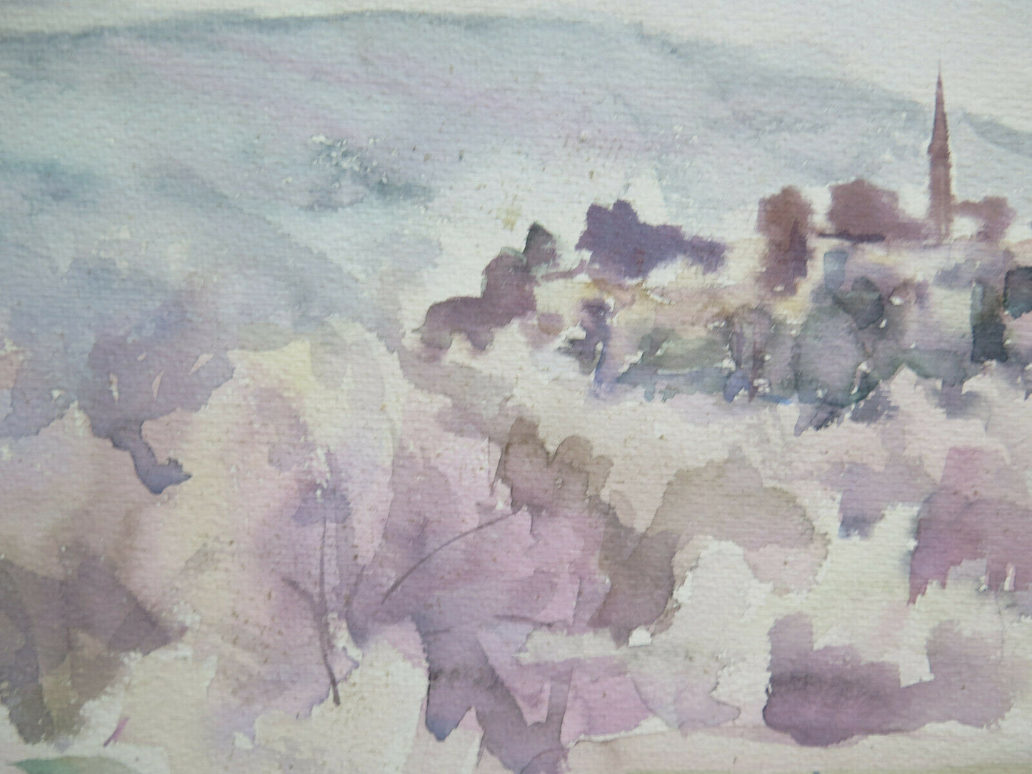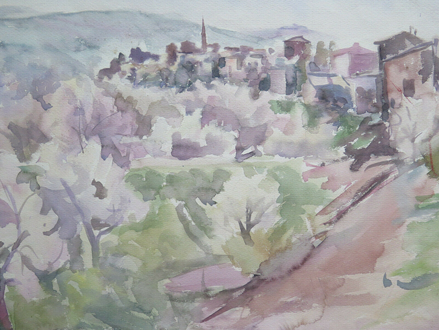 VECCHIO DIPINTO PITTORE LOCALE BOZZETTO SCORCIO DI PAESE SU CARTA 52x38 cm P14