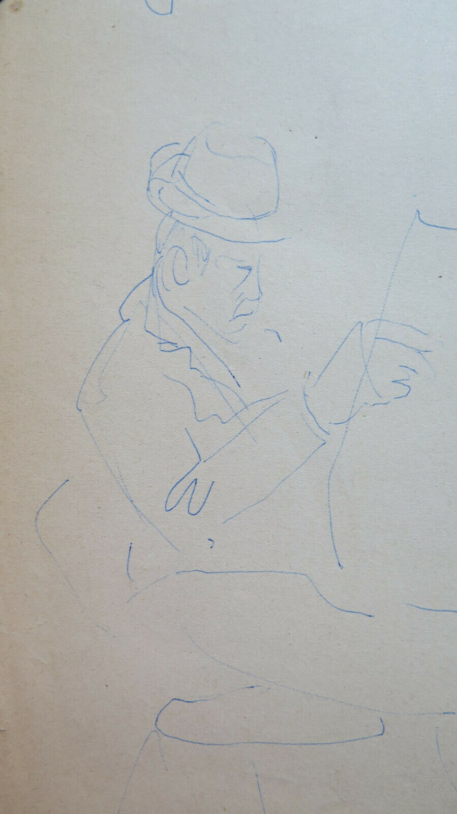VECCHIO DISEGNO BOZZETTO SU CARTA STUDIO PER FUGURA MASCHILE VINTAGE P28.7