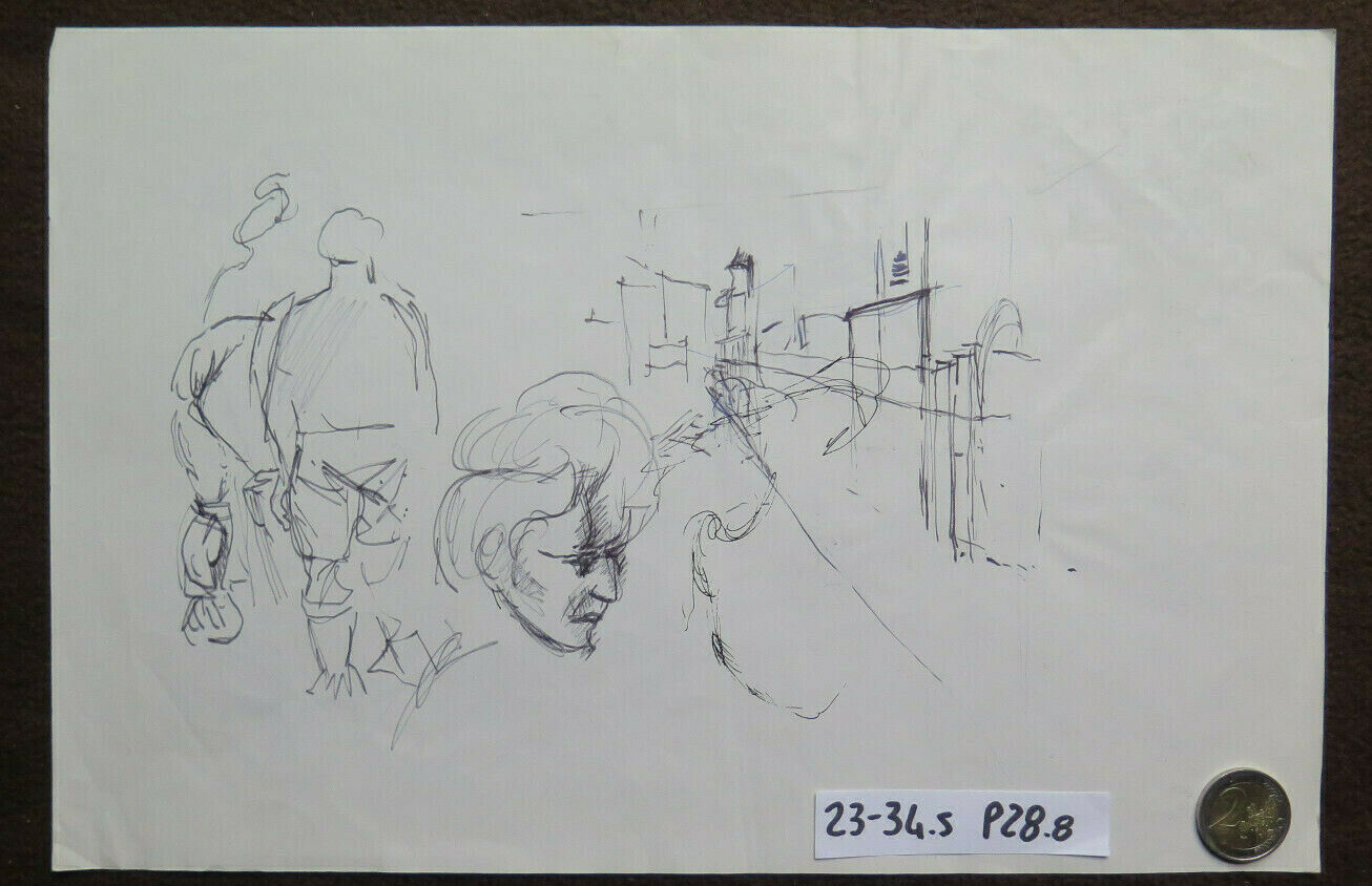 VECCHIO DISEGNO SOGGETTI VARI PENNA CARTA BOZZETTO SCHIZZO VINTAGE ARTE P28.8