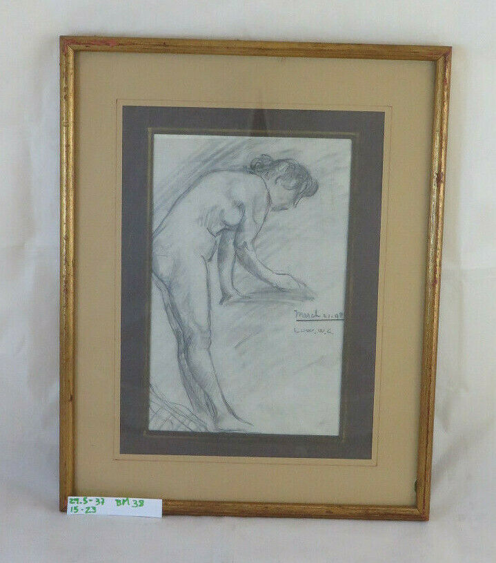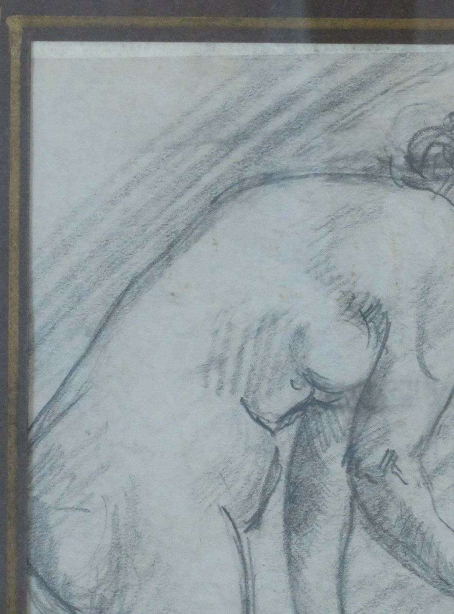 VECCHIO QUADRO BOZZETTO FIRMATO NUDO FEMMINILE MATITA SU CARTA QUADRO BM38