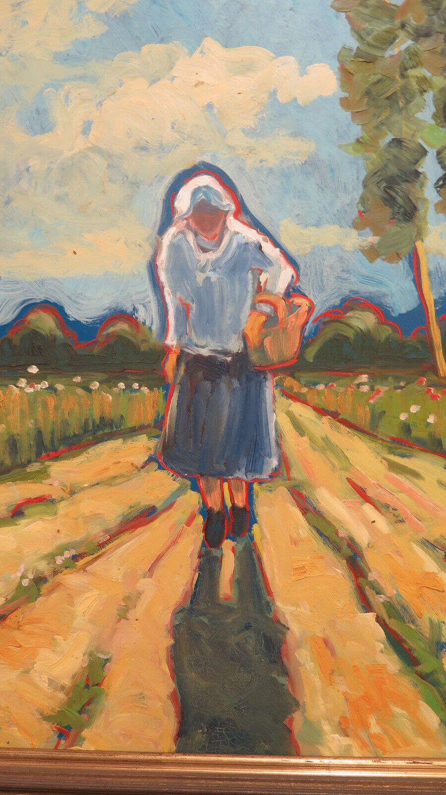 VECCHIO QUADRO CONTADINA NEI CAMPI DIPINTO OLIO SU TAVOLA INIZIO 900 BM51