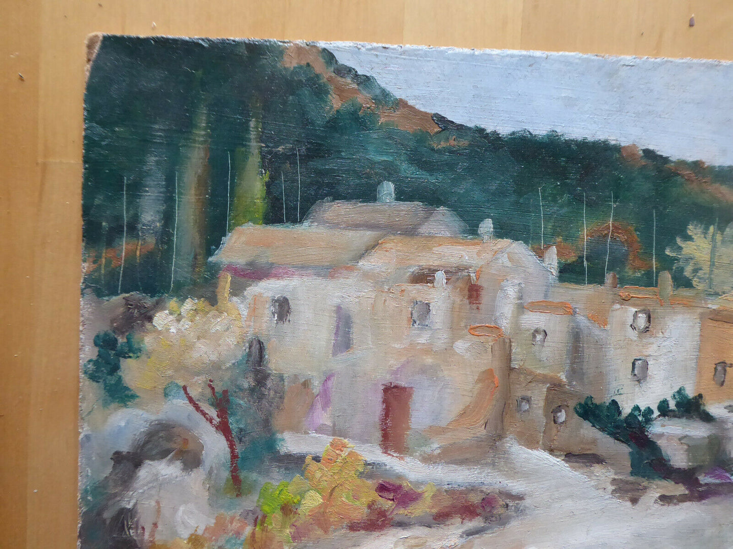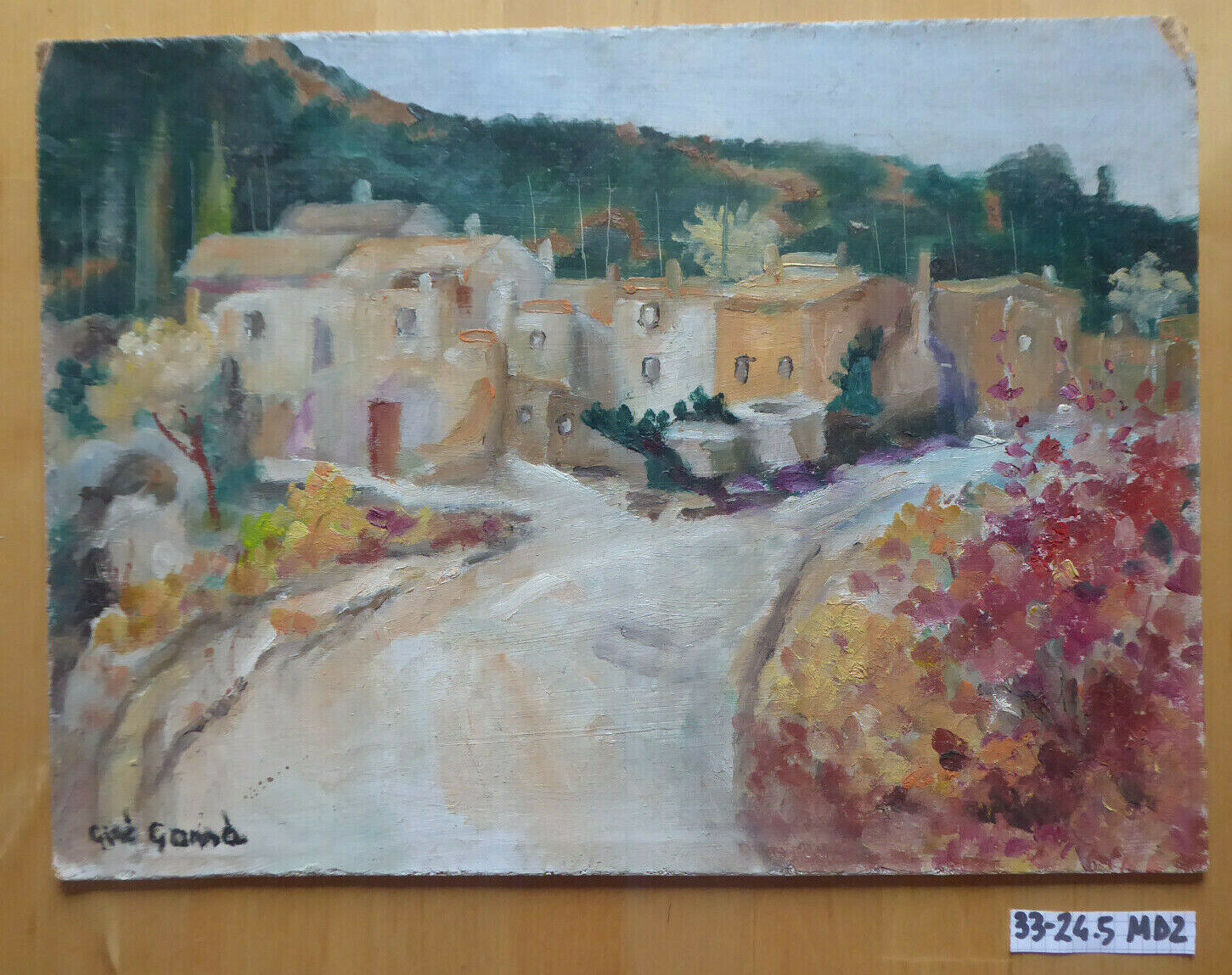VECCHIO QUADRO OLIO VINTAGE PAESAGGIO SPAGNA FIRMATO GINÈ GOMÀ CAMPAGNA MD2
