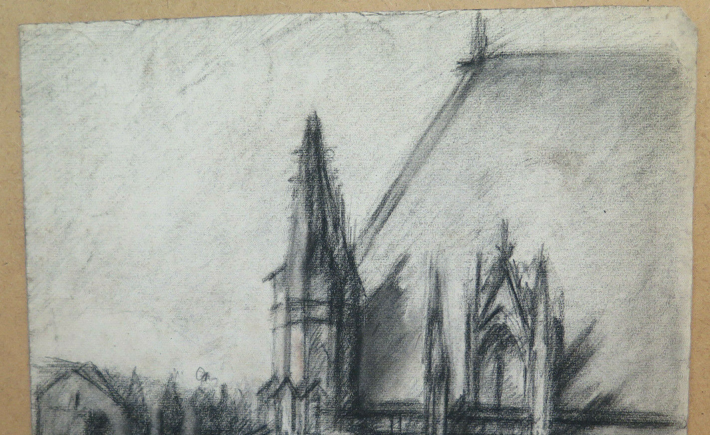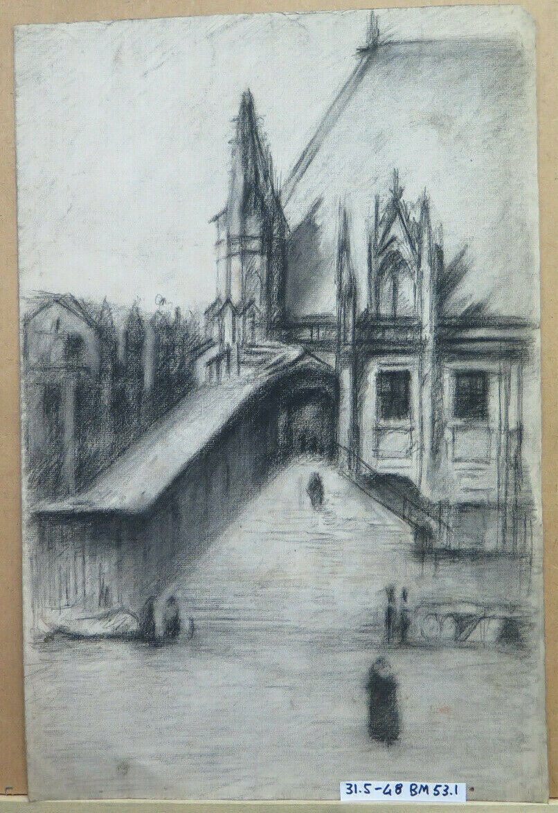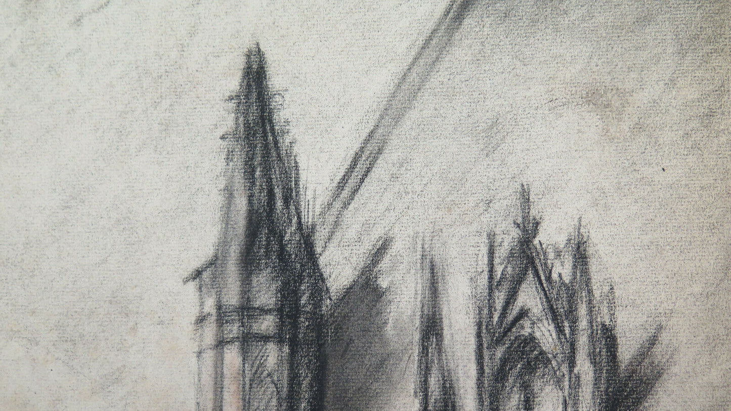VEDUTA CATTEDRALE GOTICA DISEGNO ANTICO OPERA Pierre Eugène Duteurtre DUT BM53.1