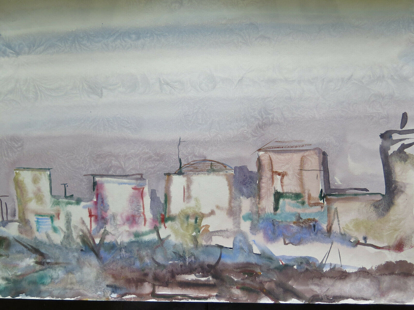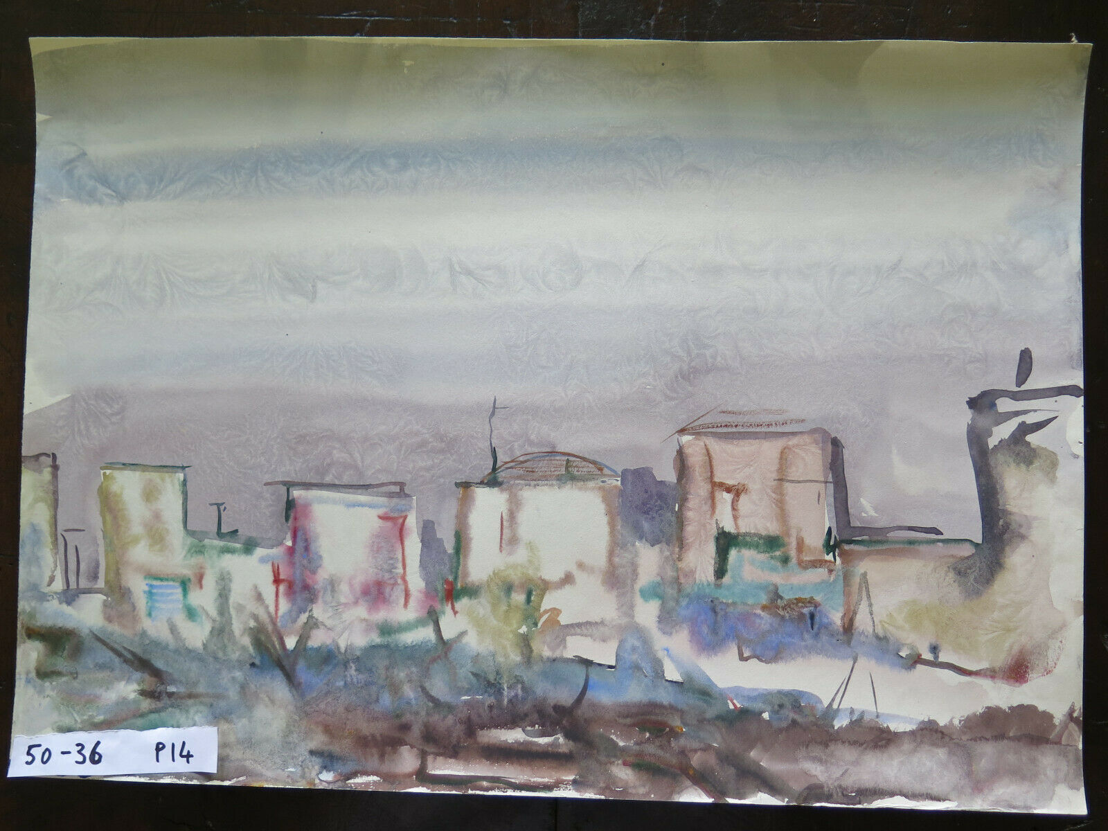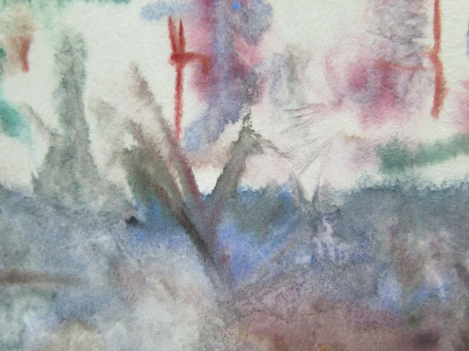 Medium and painting surface: watercolor on paper painted with "Ice technique" that was invented by Pancaldi to obtain the ice effect in some part of the painting surface, this technique consist to literally freeze the fresh wet painting and subsequently work on it again. He used this tecnique starting from the early '60's and kept working on it for all his life until the extraordinary results of the 80's and 90's ice paintings.