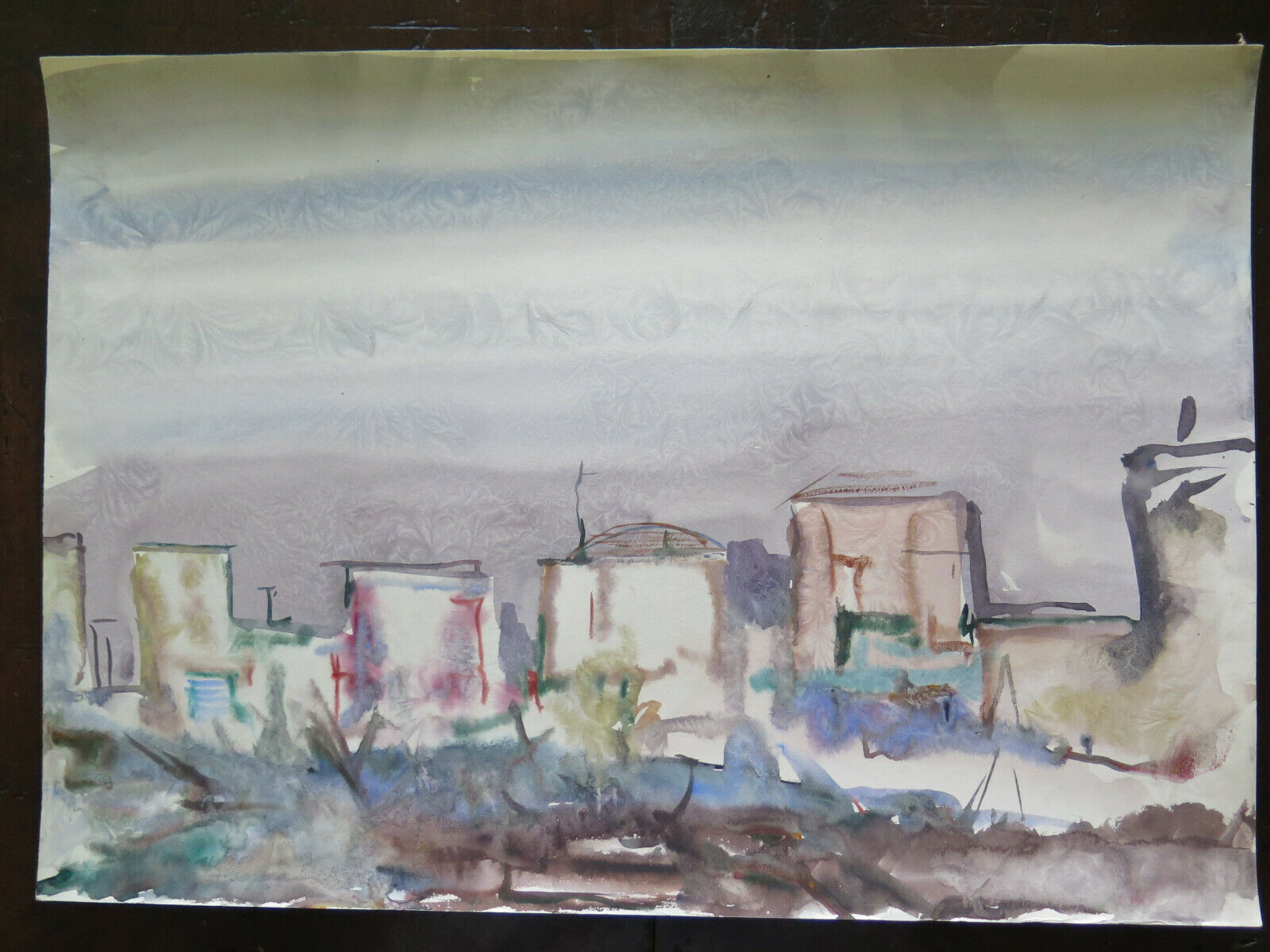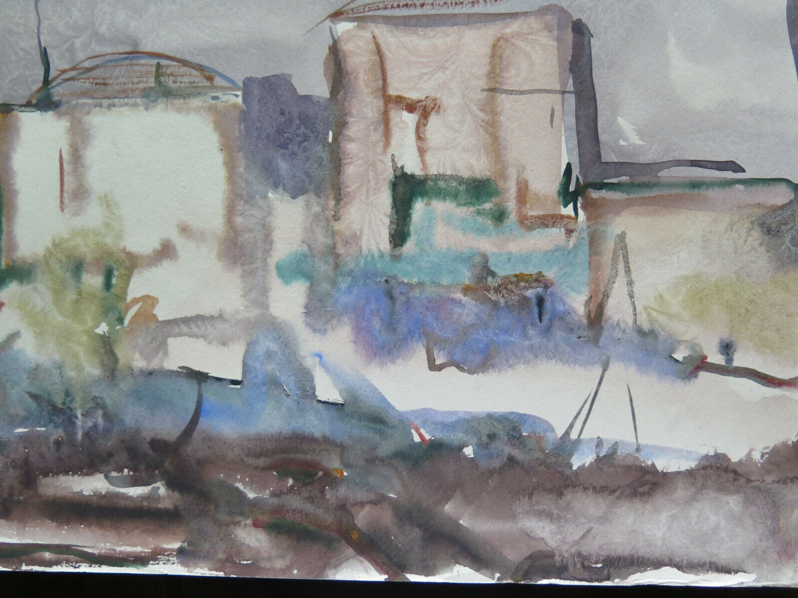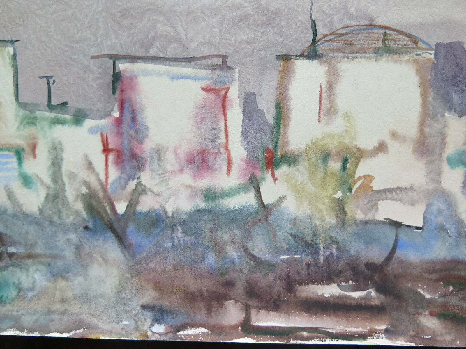Medium and painting surface: watercolor on paper painted with "Ice technique" that was invented by Pancaldi to obtain the ice effect in some part of the painting surface, this technique consist to literally freeze the fresh wet painting and subsequently work on it again. He used this tecnique starting from the early '60's and kept working on it for all his life until the extraordinary results of the 80's and 90's ice paintings.