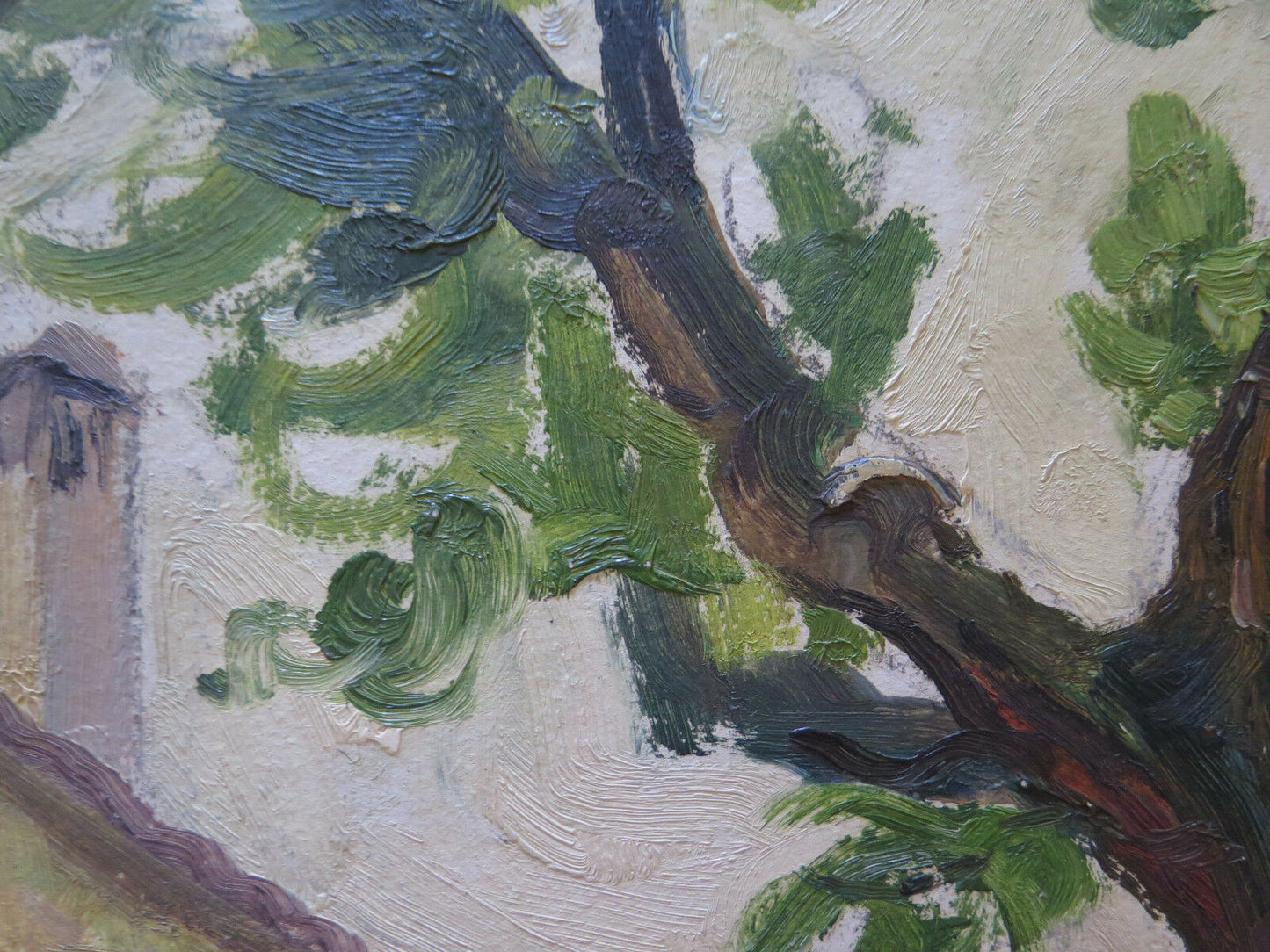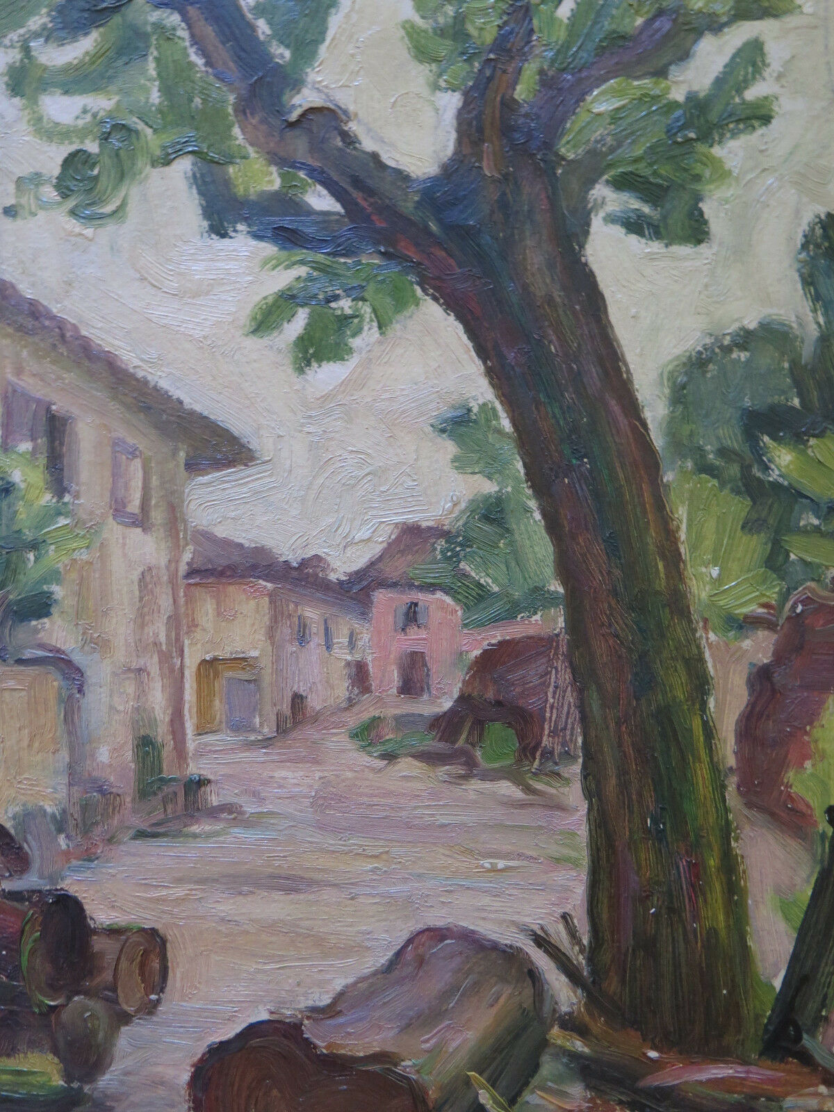 VEDUTA DEL CORTILE QUADRO ANTICO DIPINTO AD OLIO SU TAVOLA PAESAGGIO CAMPAGNA p8