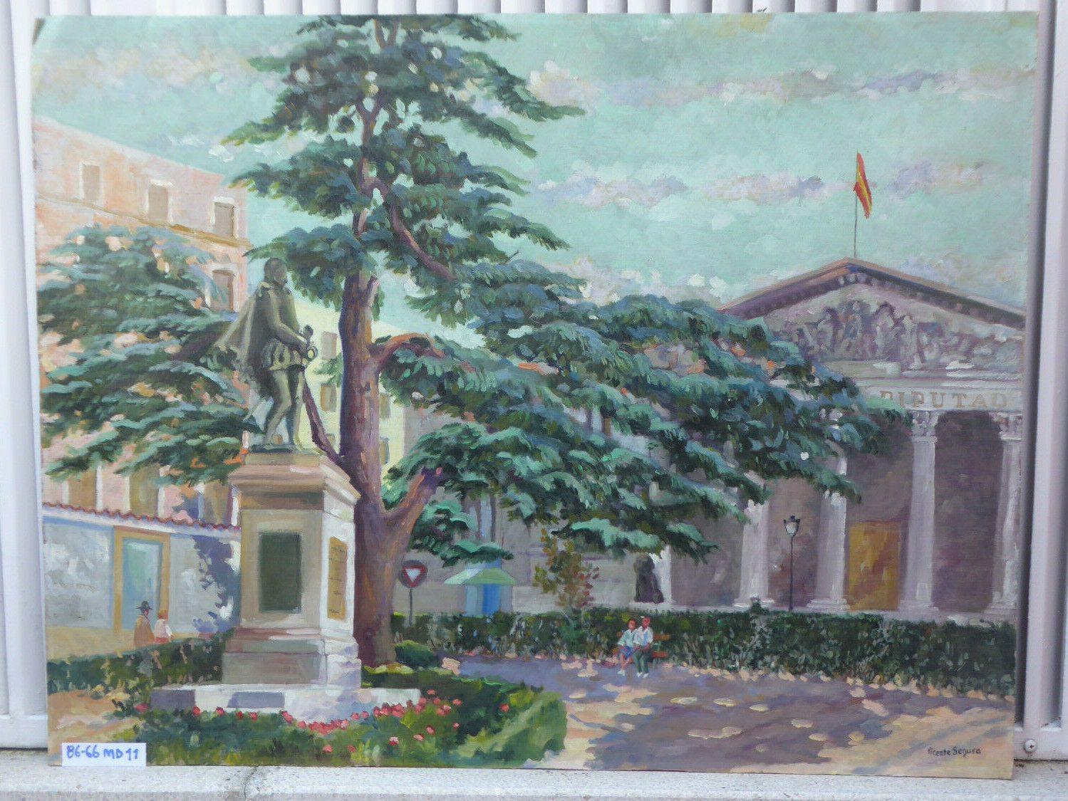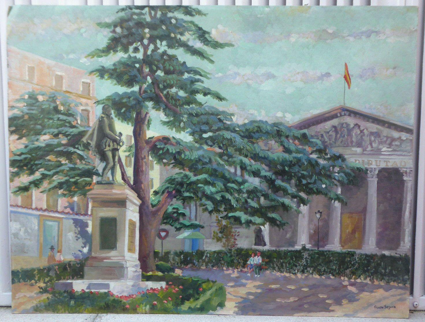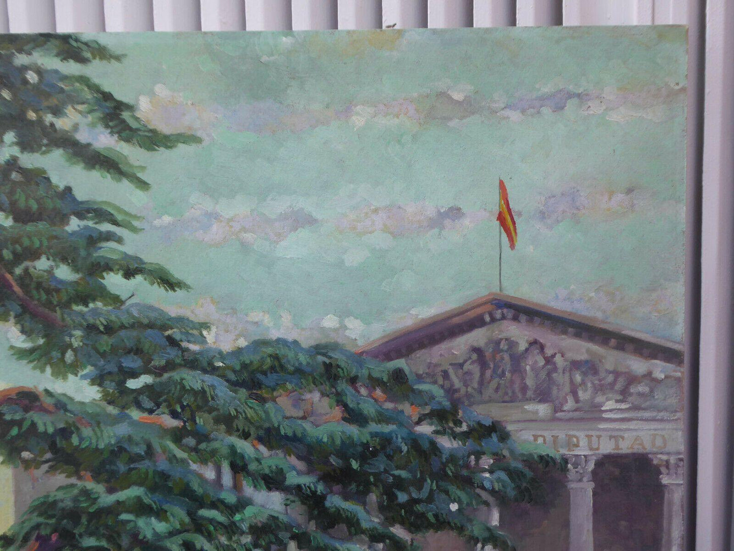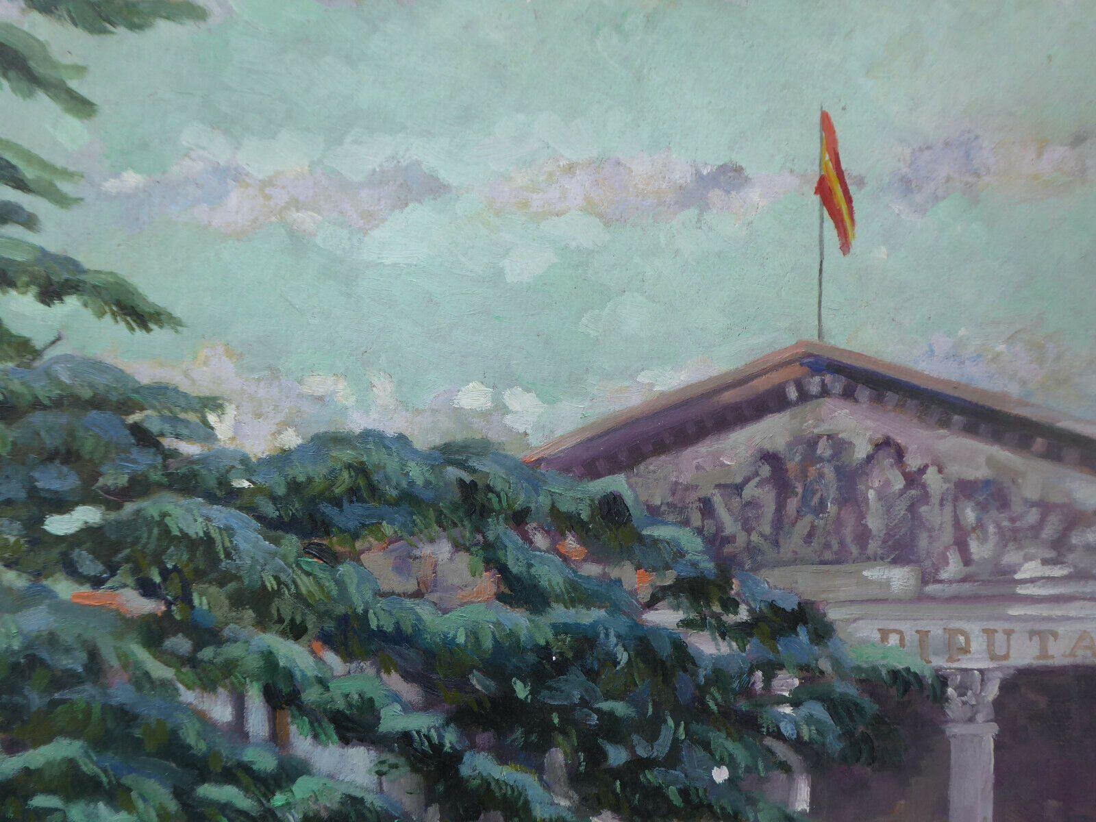 VEDUTA DI MADRID PLAZA DE LAS CORTES VECCHIO QUADRO FIRMATO VICENTE SEGURA MD11