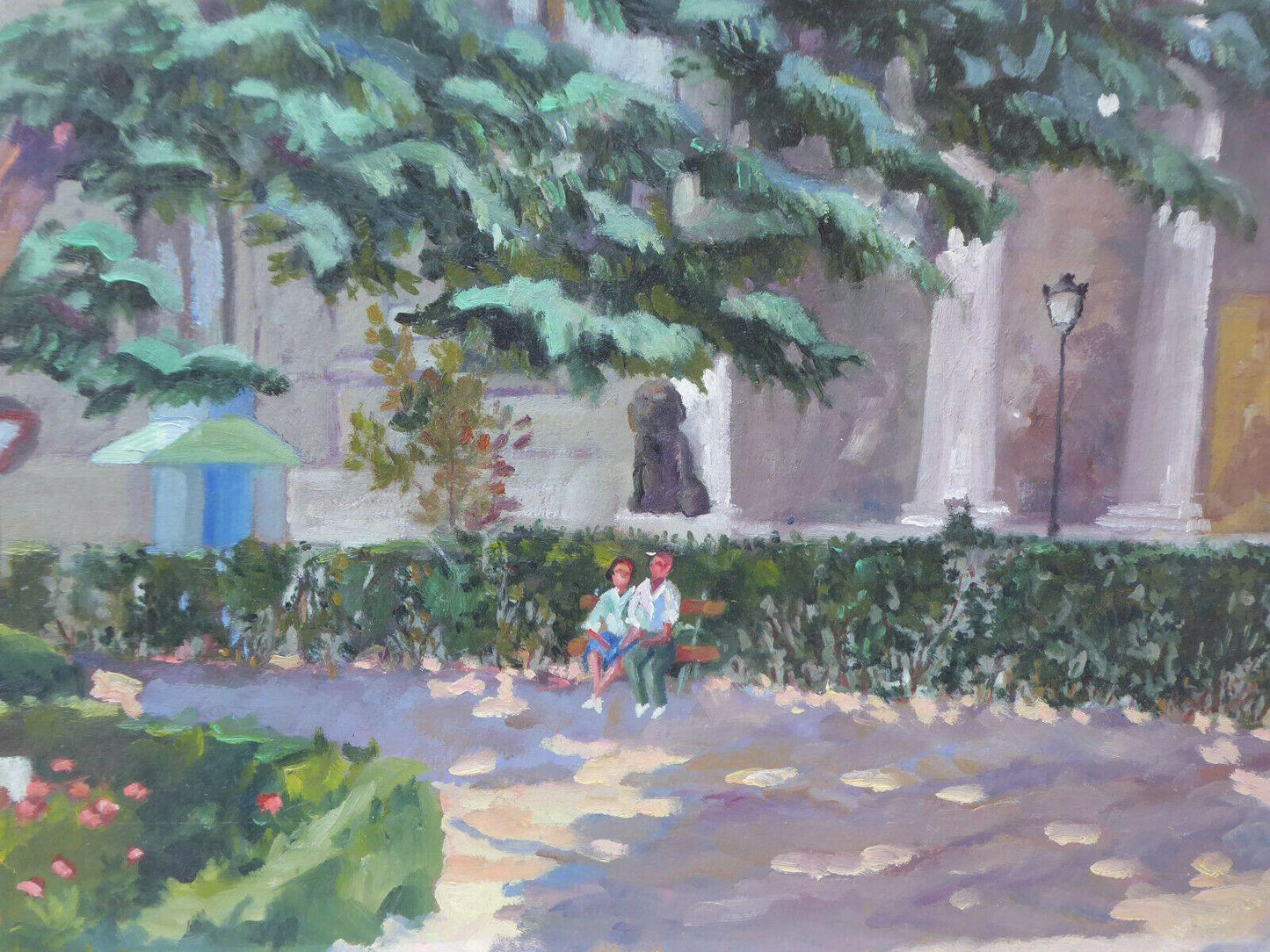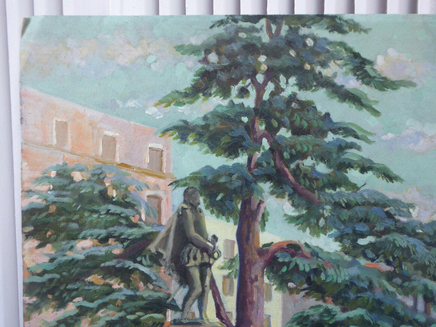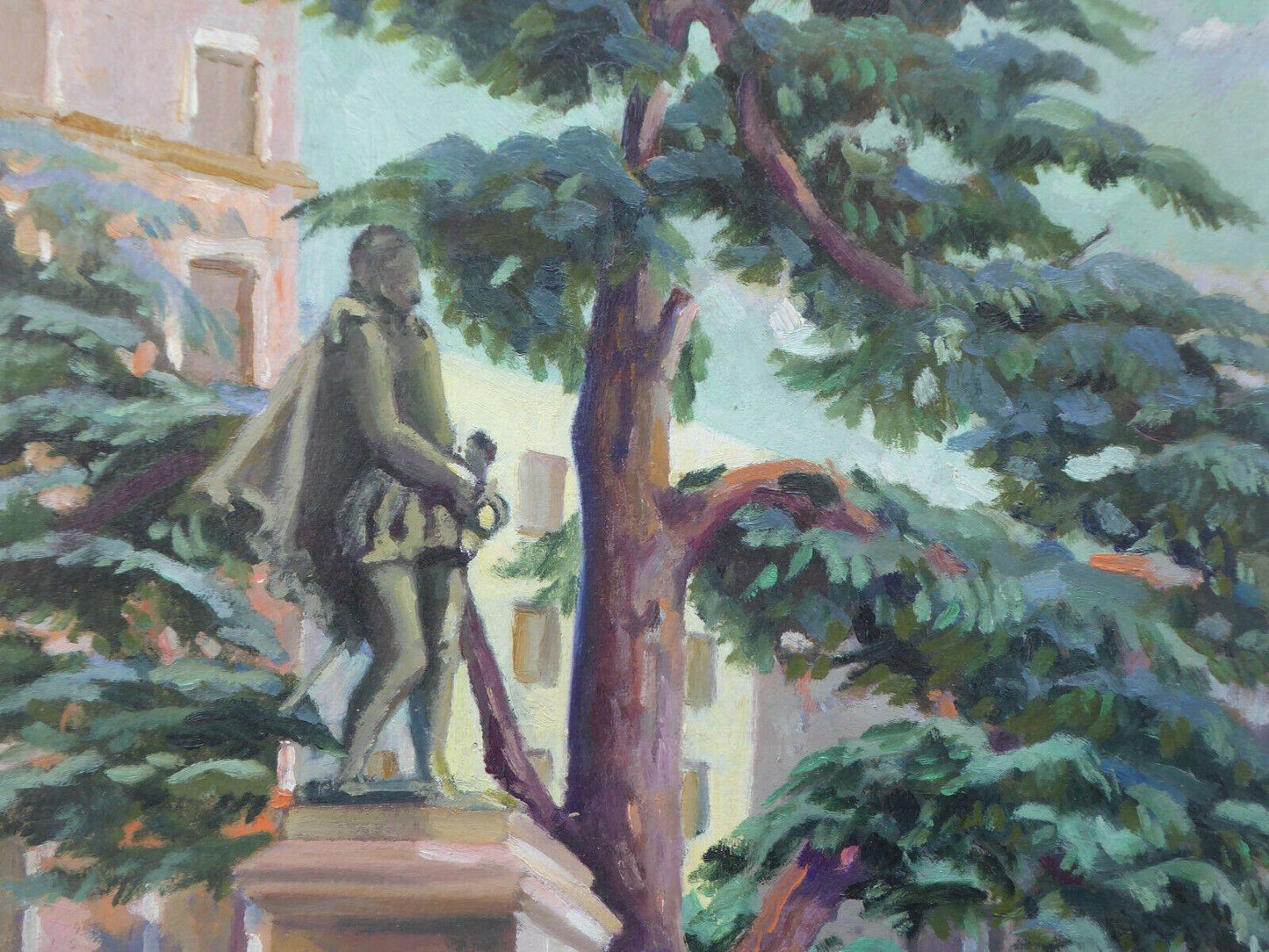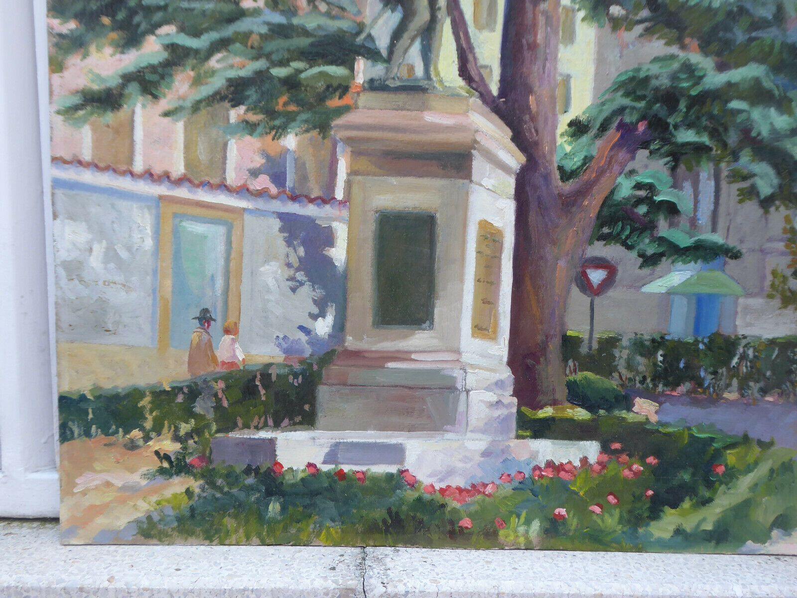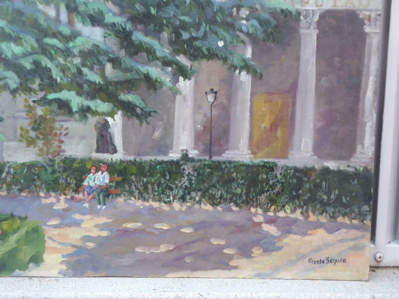 VEDUTA DI MADRID PLAZA DE LAS CORTES VECCHIO QUADRO FIRMATO VICENTE SEGURA MD11